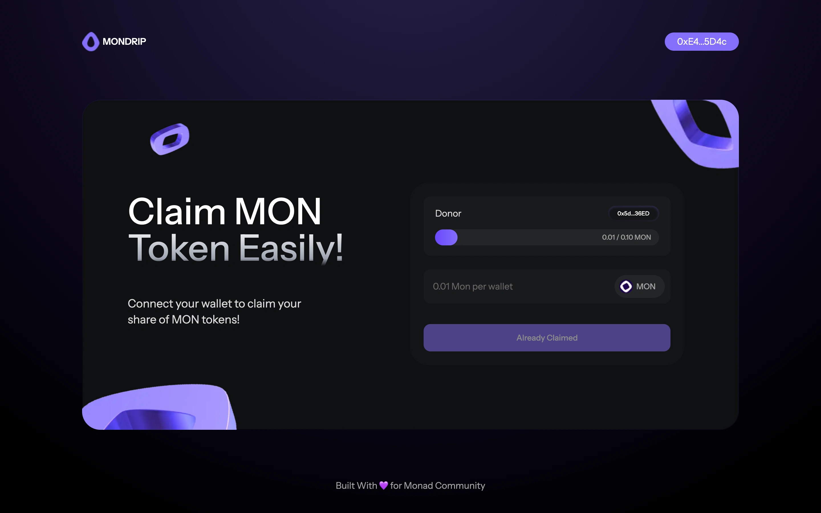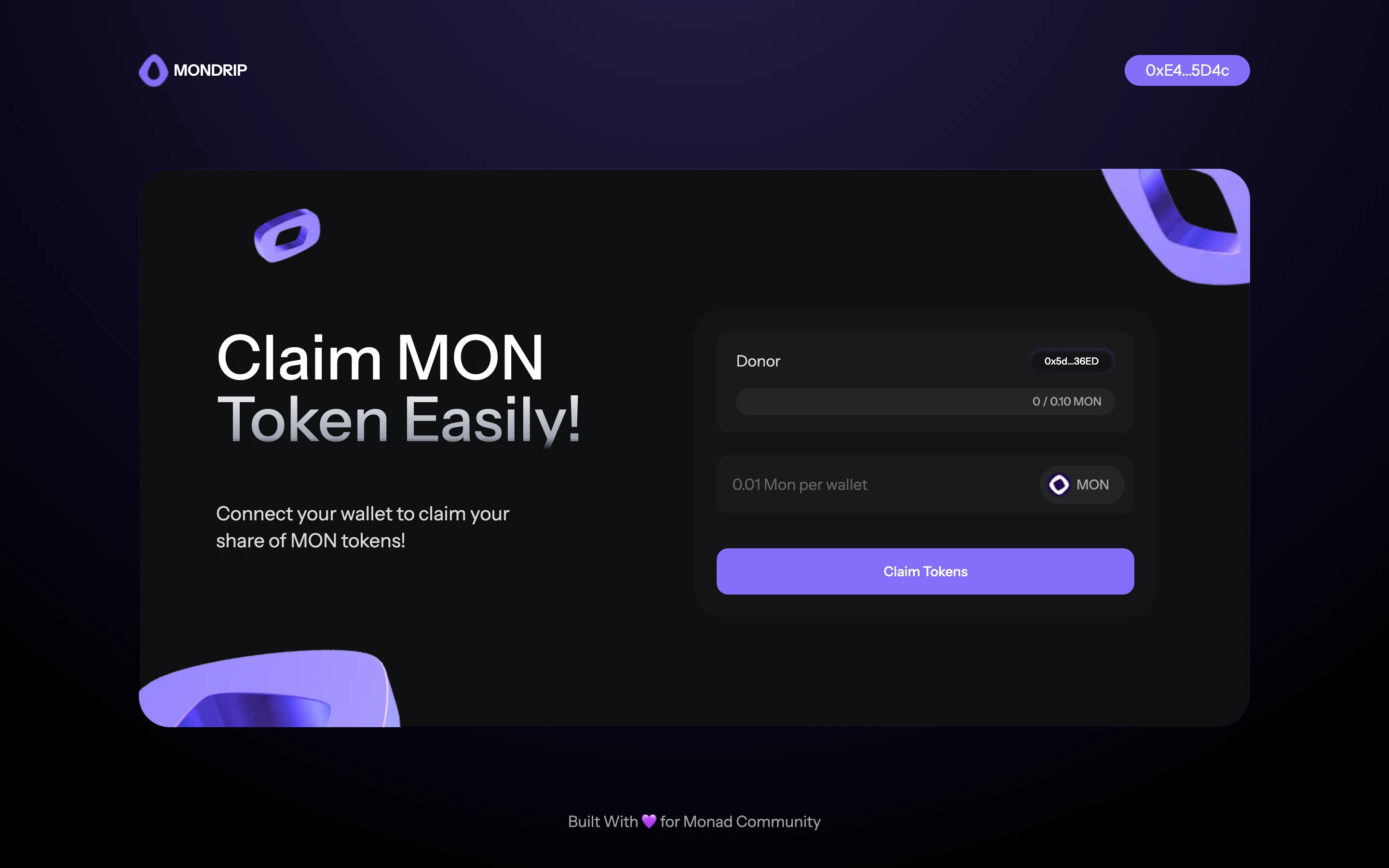 An essential utility for the Monad ecosystem designed to automate and simplify $MON testnet token distribution. This tool eliminates the friction of manually sharing tokens to wallets, allowing developers and community members to fund multiple wallets in a single click. By bridging the gap between faucet limitations and developer needs, the tool has become a key community asset for onboarding and smart-contract testing on Monad.