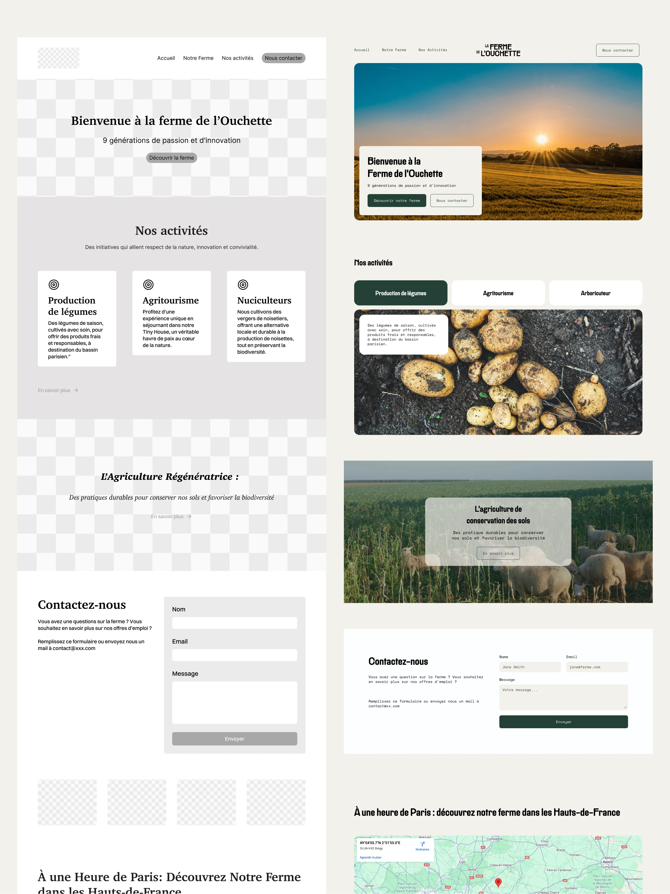 J’ai conçu le site de La Ferme de l’Ouchette pour refléter son identité authentique et engagée. L’objectif était d'offrir une expérience immersive mettant en valeur le savoir faire de cette ferme familiale. De la structure du site à son design, chaque élément a été pensé pour retranscrire l’univers chaleureux et naturel de la ferme.