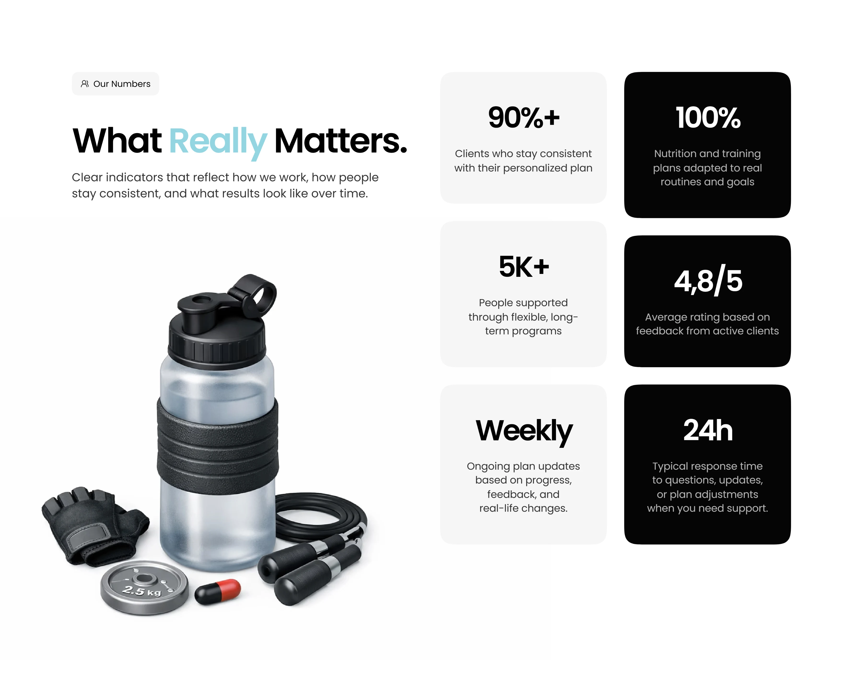 The platform brings together nutritionists and personal trainers under a single brand, offering personalized plans adapted to different goals, lifestyles, and levels of experience. This created an important communication challenge, as the website needed to explain multiple services clearly without overwhelming or confusing users.