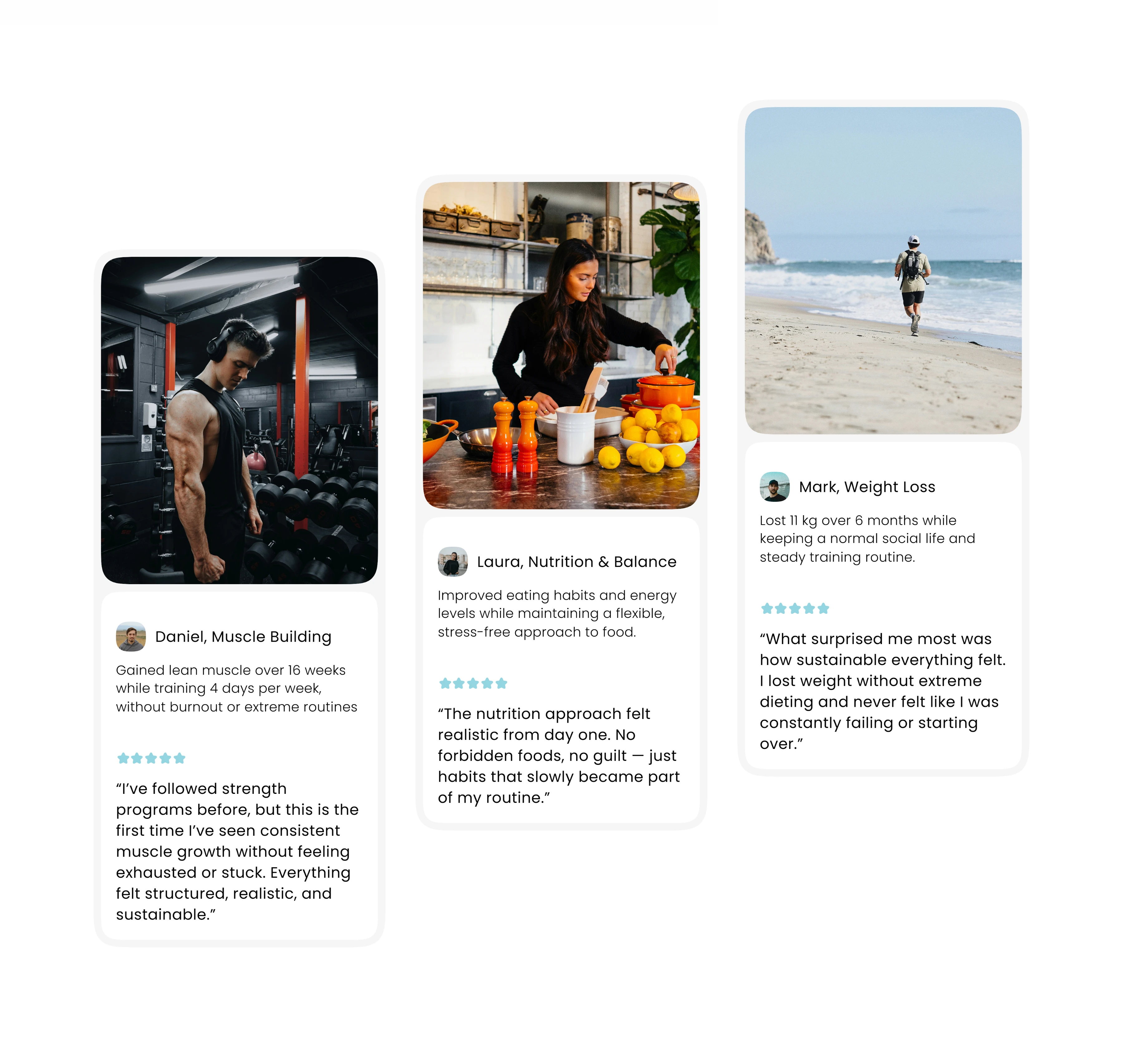 The website also needed to work for a broad audience, including beginners who may feel unsure about nutrition or training, as well as more experienced users who are already familiar with structured fitness programs.