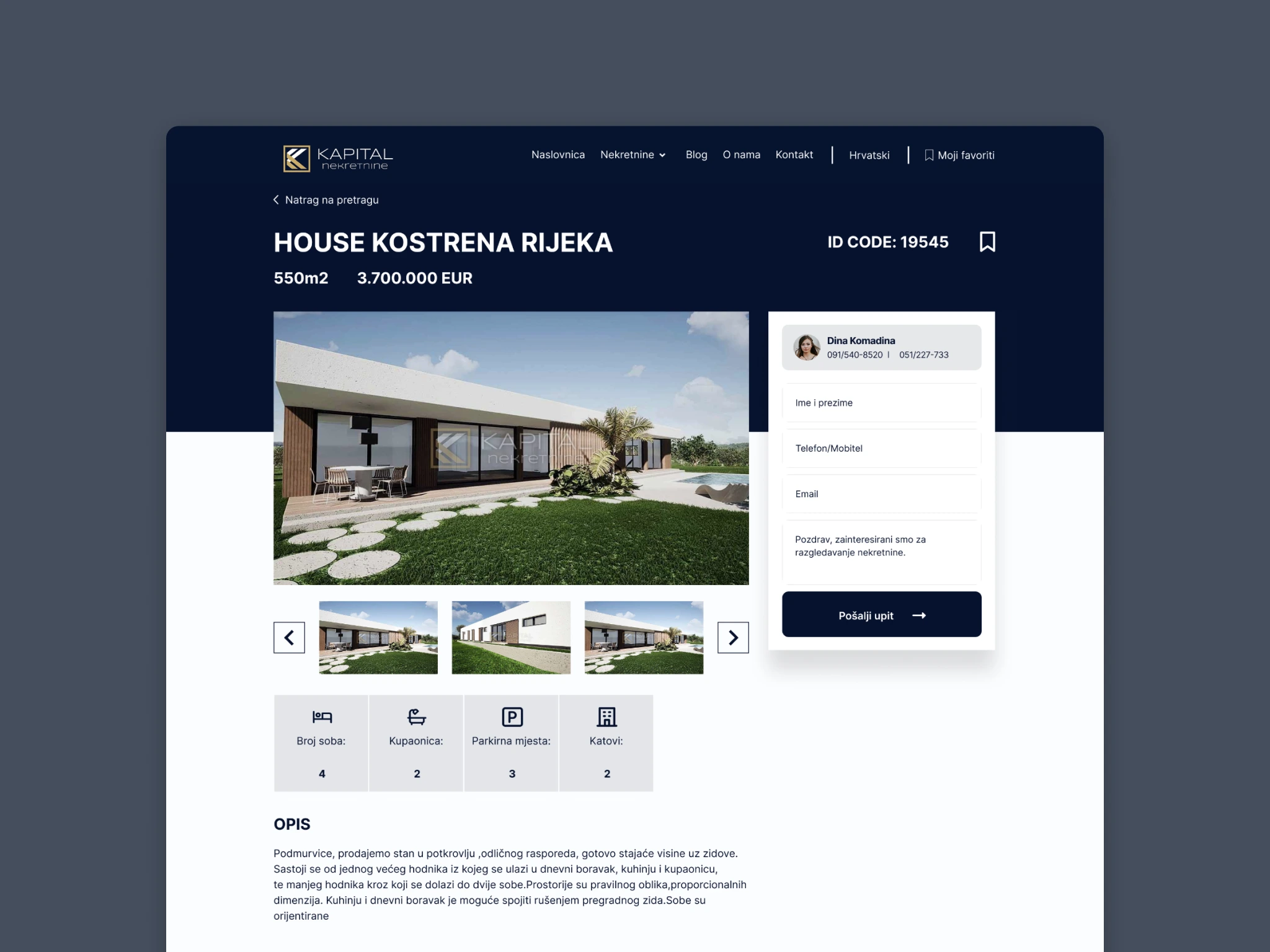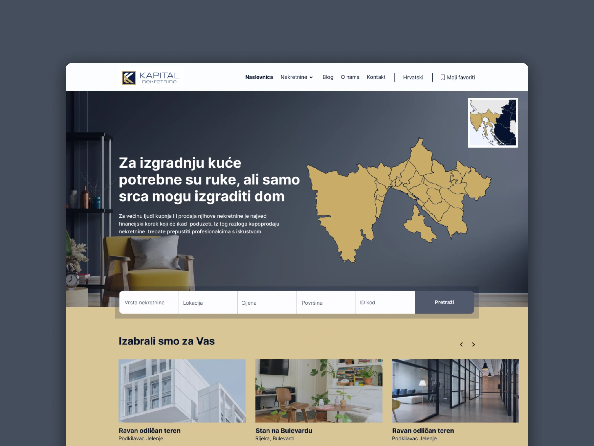 Kapital Nekretnine is a real estate company that approached me to design a new website aligned with their refreshed brand identity. Their goal was to stand out in a crowded real estate market by offering a more intuitive, visual, and location-driven property search experience, while still supporting traditional search behaviors.