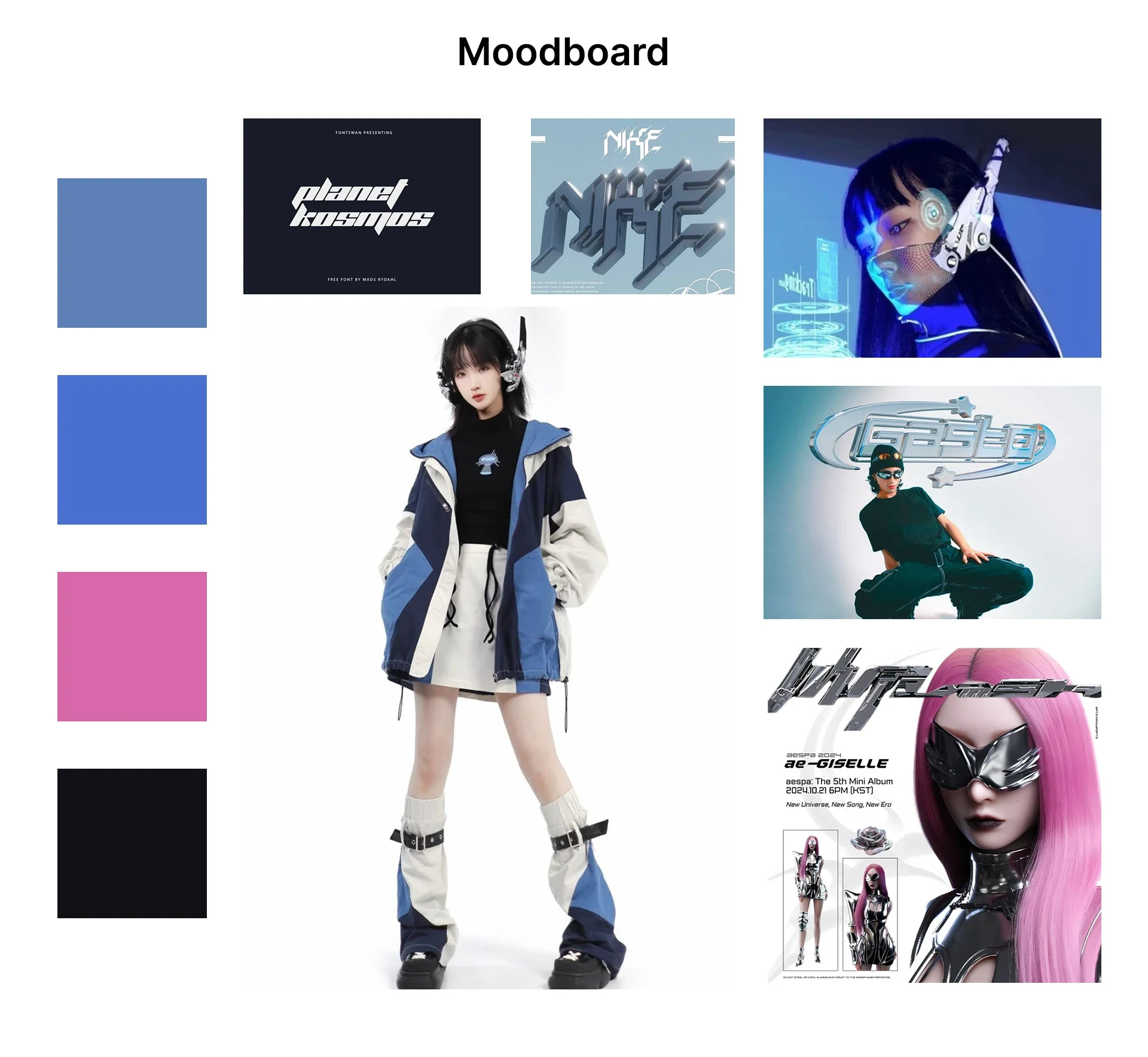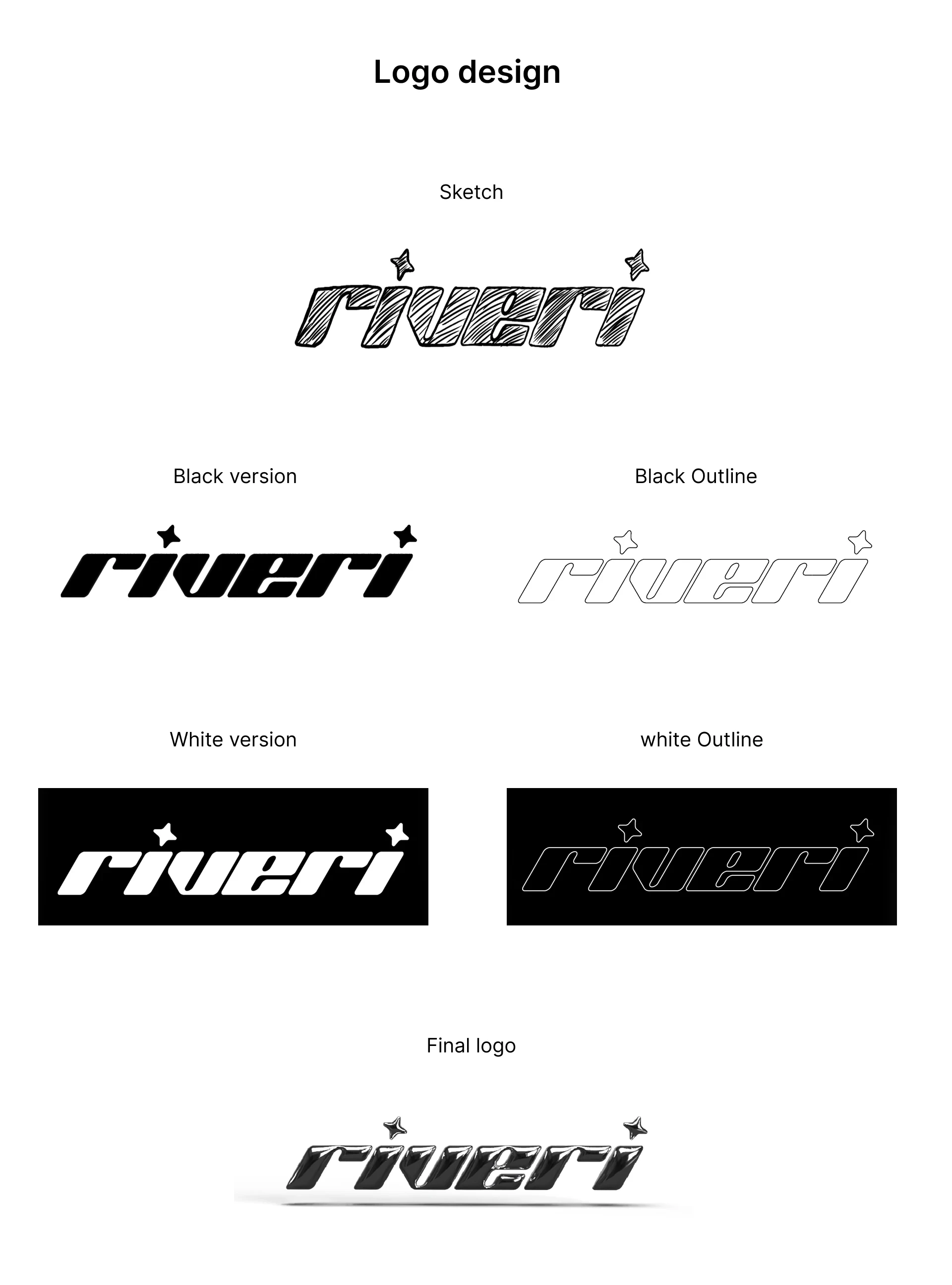Riveri is a futuristic fashion brand inspired by cyberpunk aesthetics, featuring bold logo design, typography, and colors, as well as sleek brand mockups.
