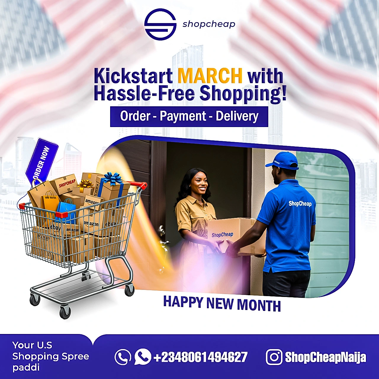 This flyer was designed for ShopCheap, an e-commerce and logistics brand specializing in hassle-free shopping, payments, and delivery from U.S. stores to Nigeri
