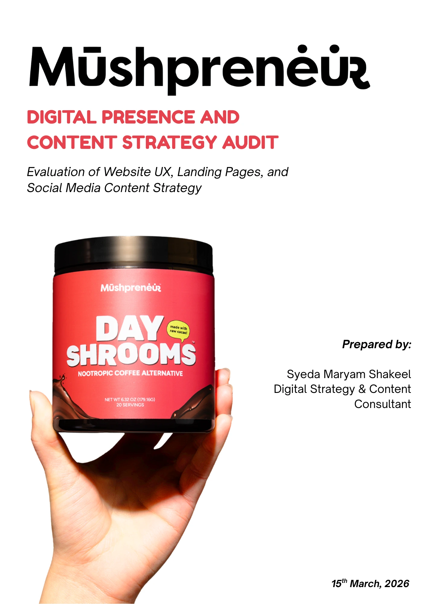 This project involved conducting a comprehensive digital presence and content strategy audit for Mushpreneur, a productivity-focused beverage brand operating in a highly competitive, content-driven category.