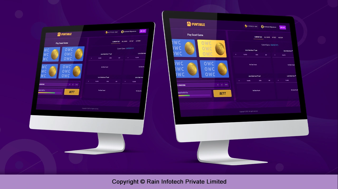 SCARD GAME: Scratch card game is easy for insight, the game is time-limited about to 30 Second, In first 25-second user must have to select one of the cards from the 4 card which shows on the platform, after select that one card you have to click on BETT button for take part on the game, you must have balance for that to take part, after 25 seconds completed the winner will be declared after next 5 second, the result will be generated depend on some % of your bet ex.