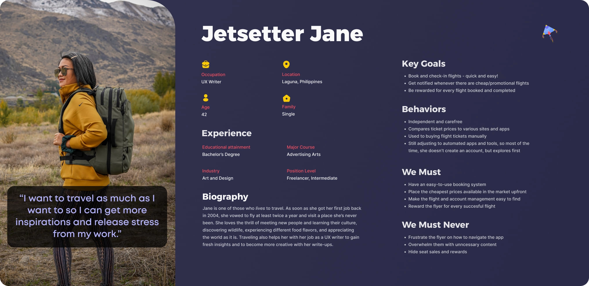 There are so many travel apps out there already; what makes mine unique? Well, first, if you're wondering why my chosen logo is a kite, kites can be built by anyone with just sticks, papers, and a string - nothing fancy and expensive, but can really give a sense of fun and freedom. That's the kind of message that I would like my app to bring - offering cheap flights for everyone and anyone to enjoy.
