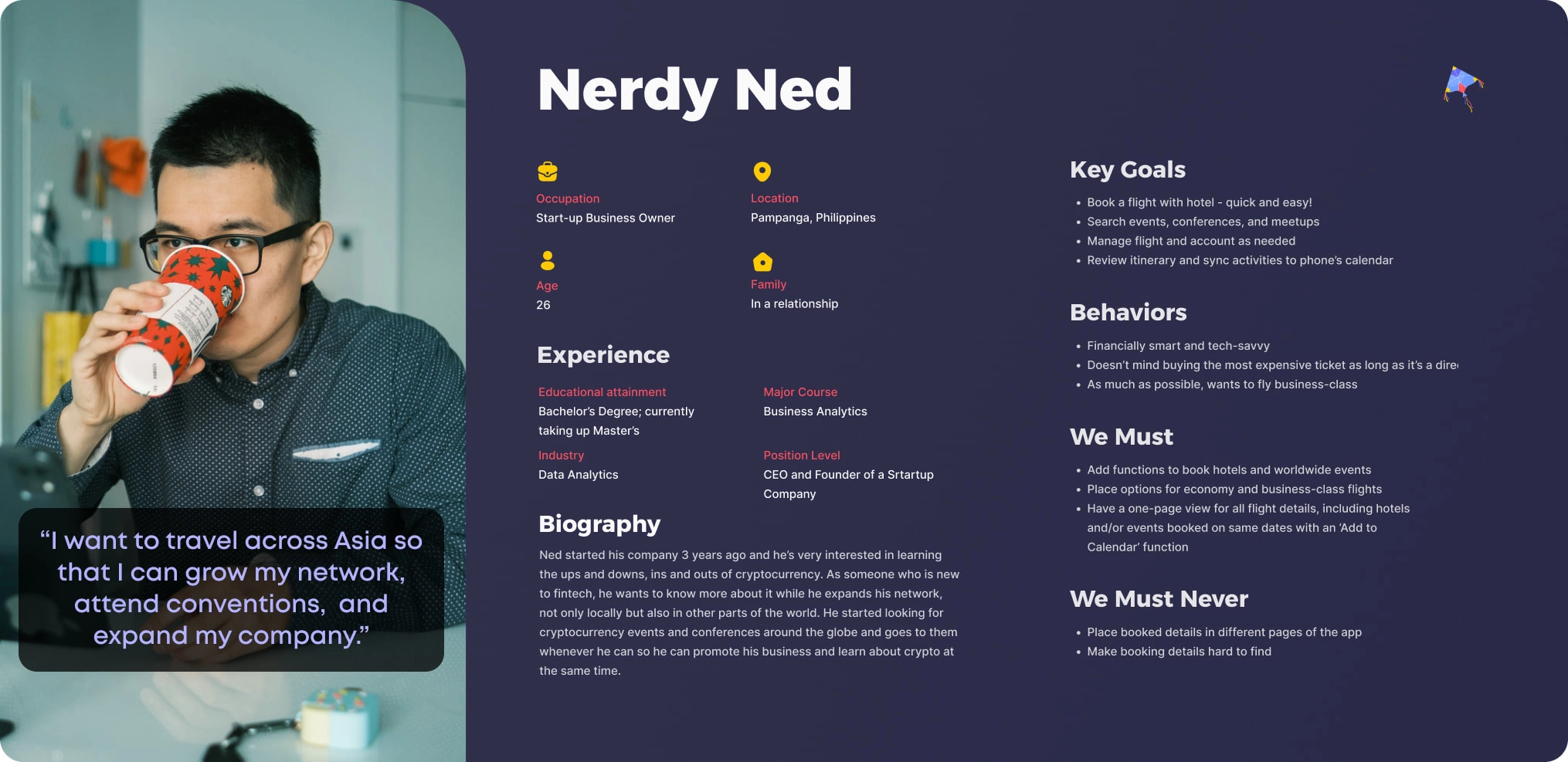 Conceptualized a travel app that offers cheap flights for everyone and anyone to enjoy.