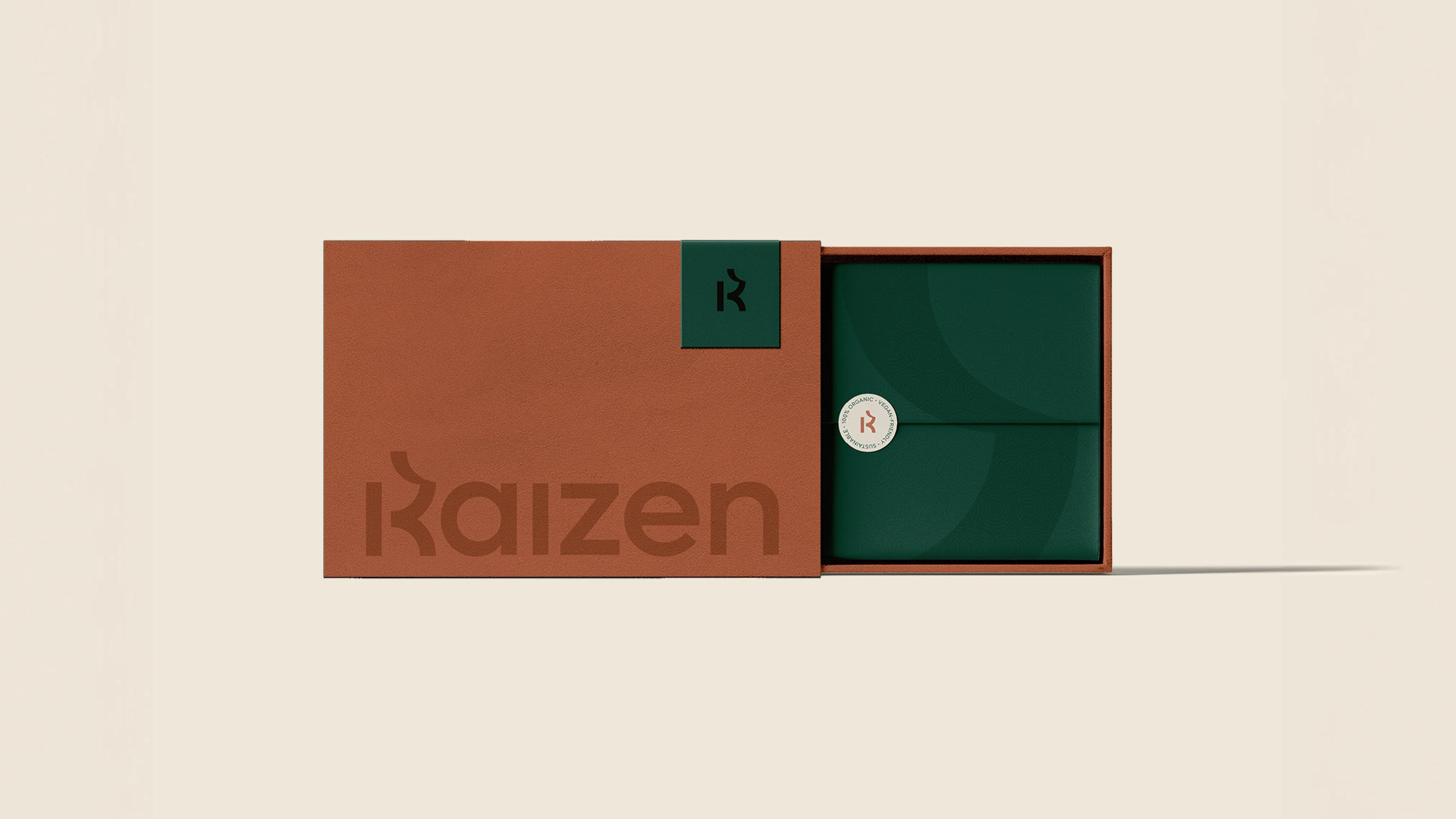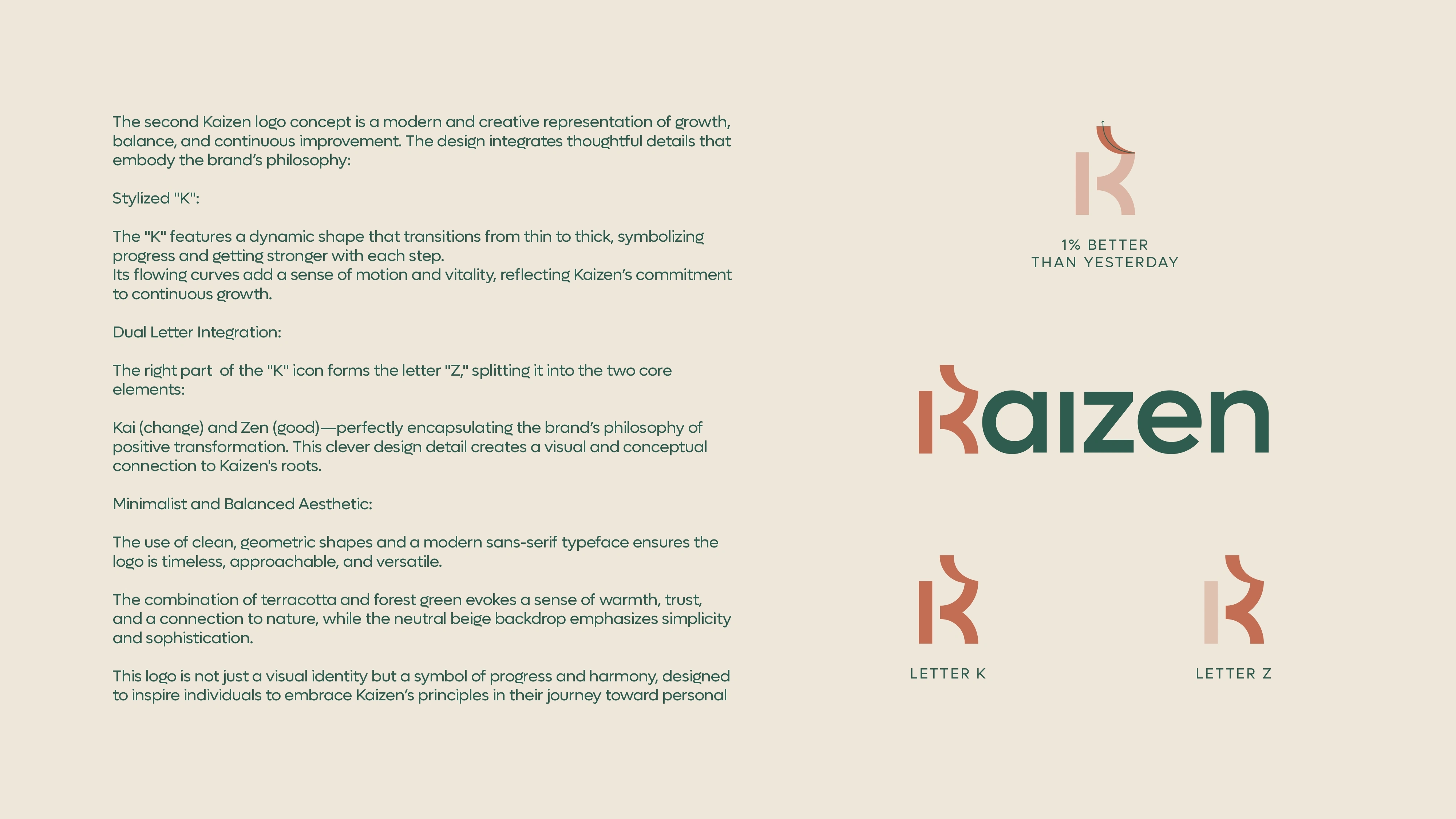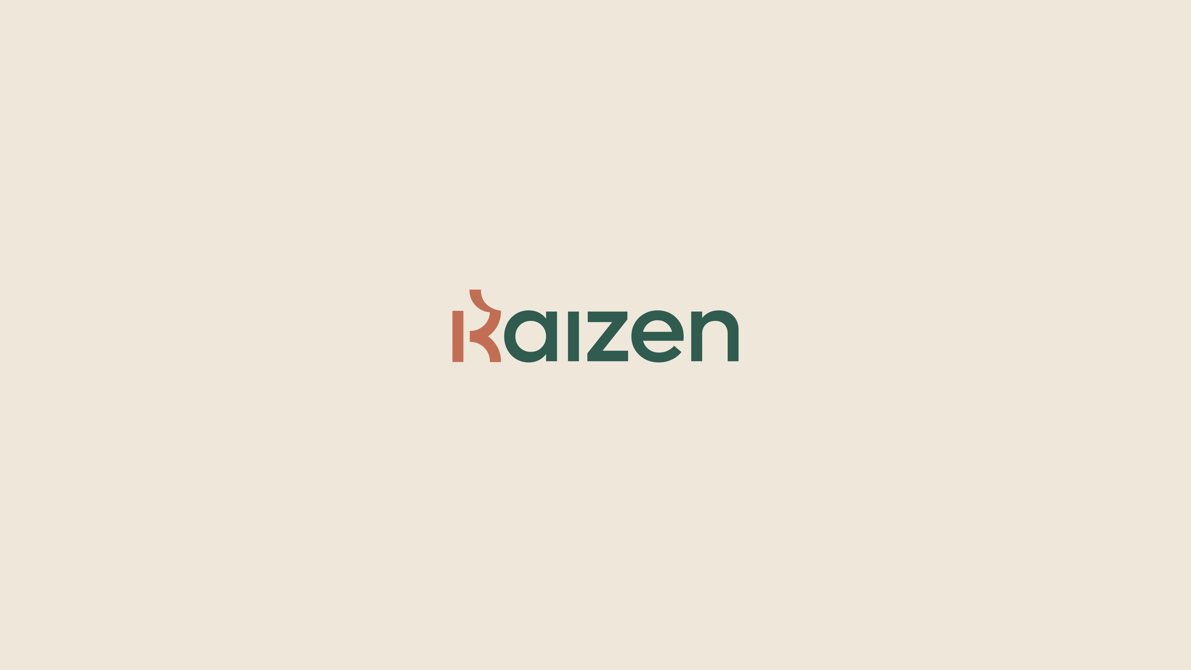 Designed Kaizen’s brand identity around continuous improvement, using a refined K mark and calm, natural palette to express growth, balance, and progress.