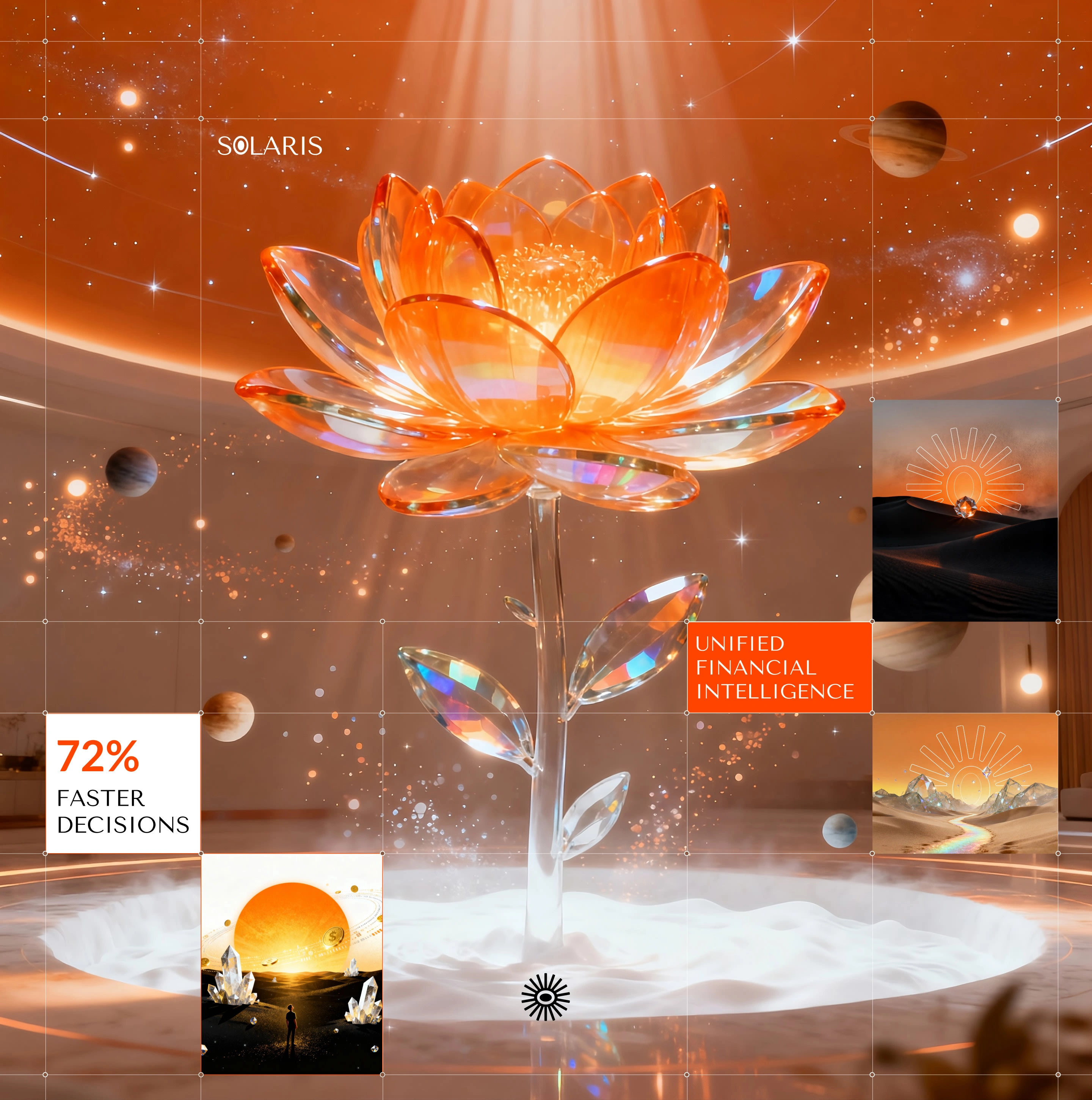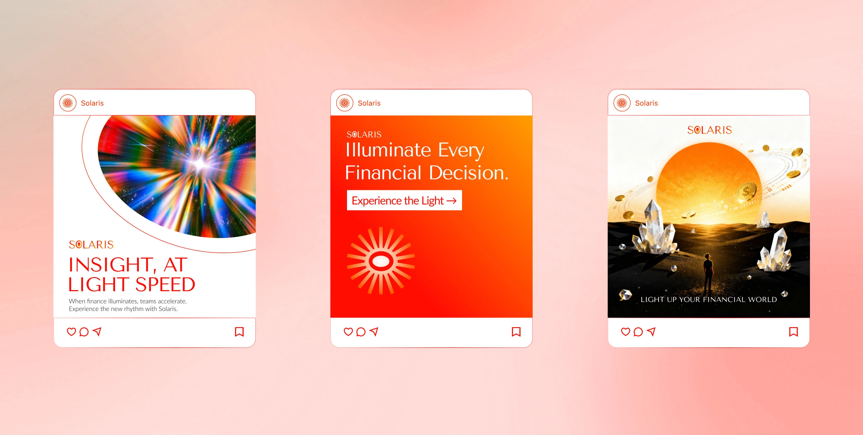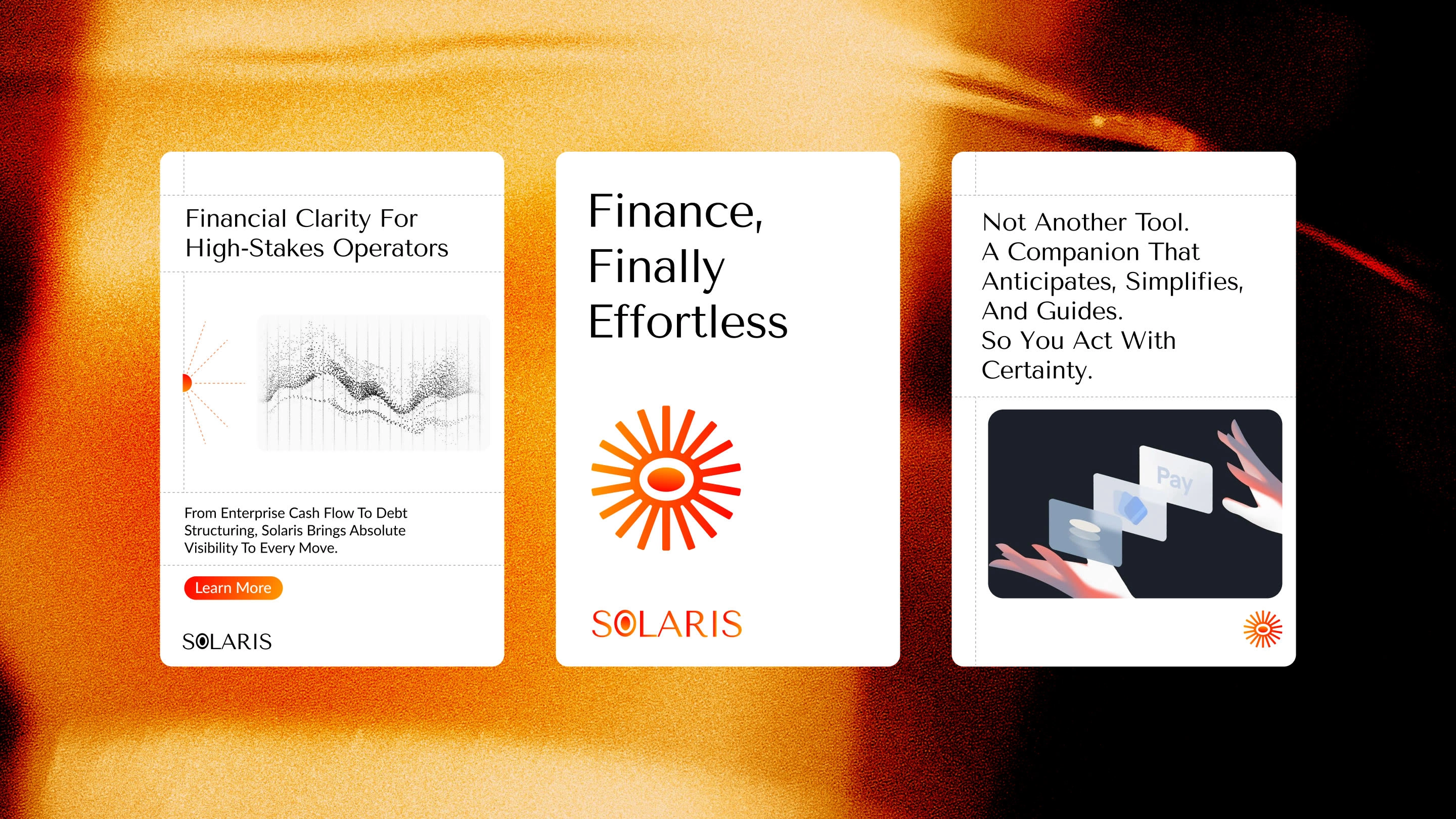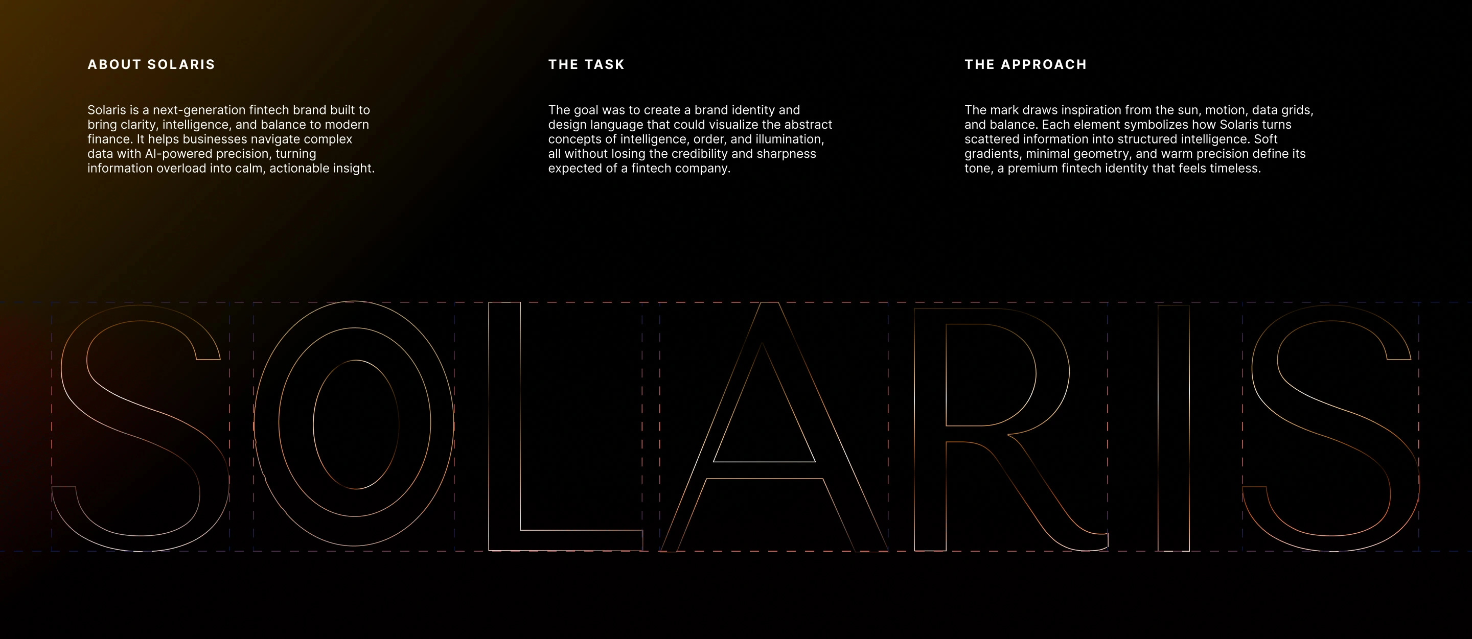 Solaris is a fintech branding project designed with premium minimalism and intelligent light, building a brand that translates complexity into clarity.