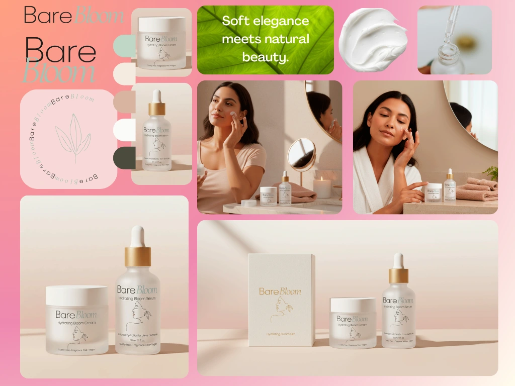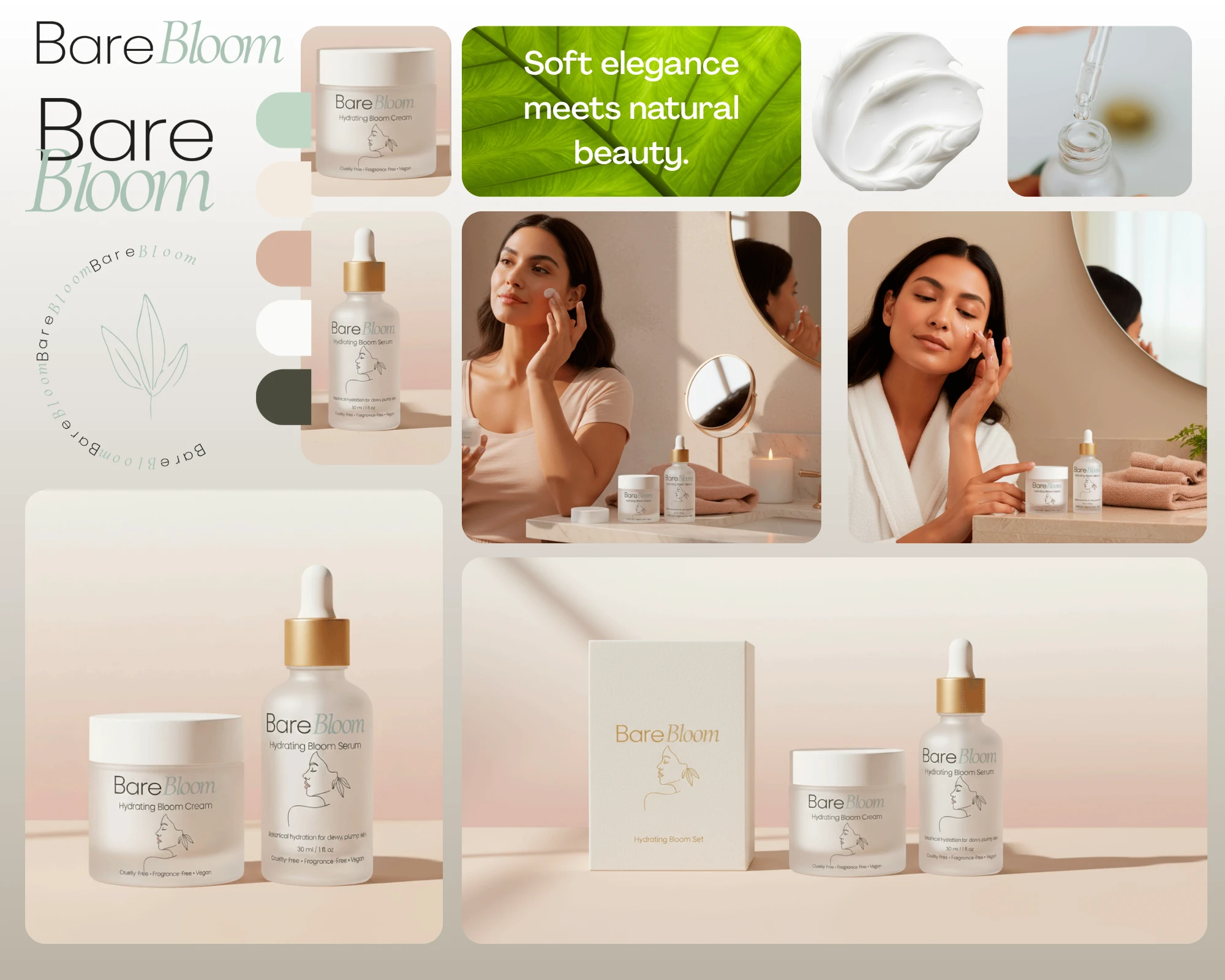 Developed a serene brand identity for Bare Bloom, a conceptual skincare brand.