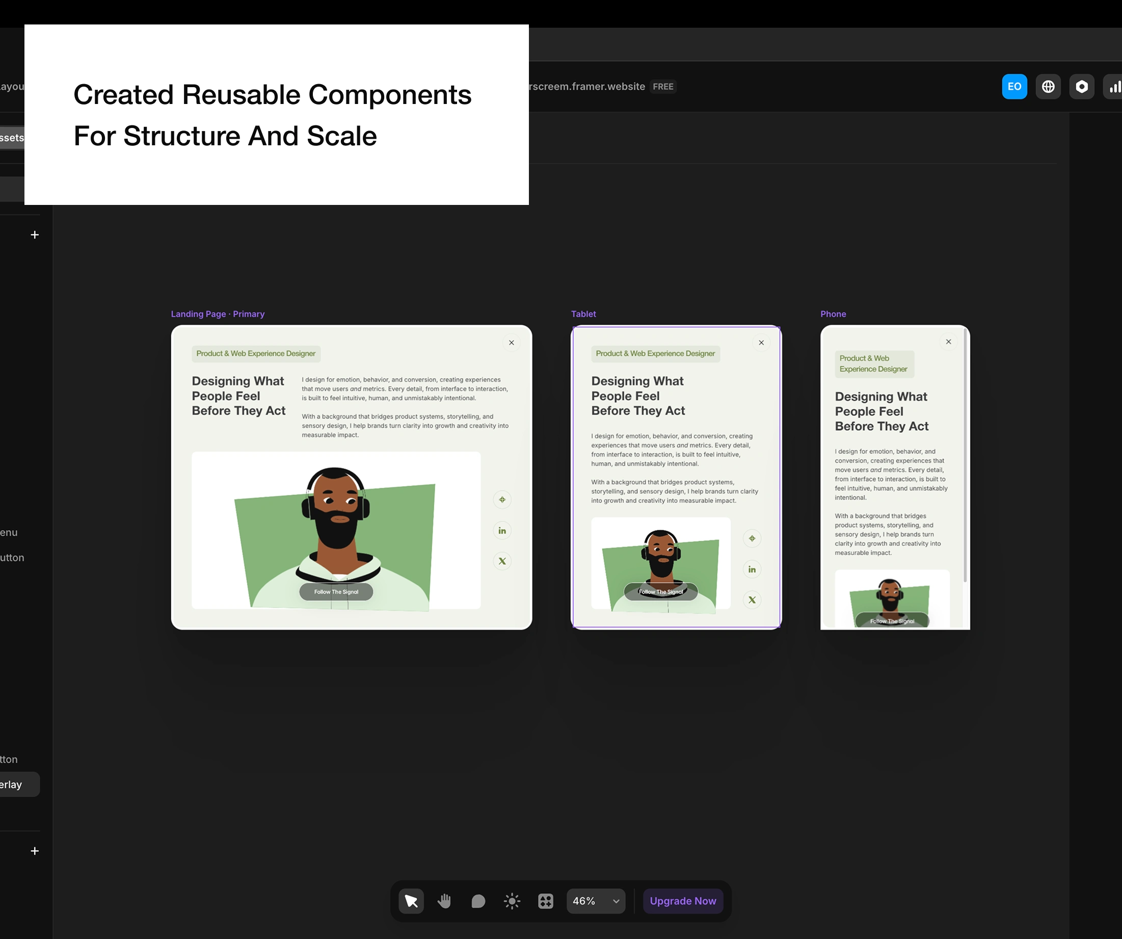 When it felt right visually, I moved to Framer.