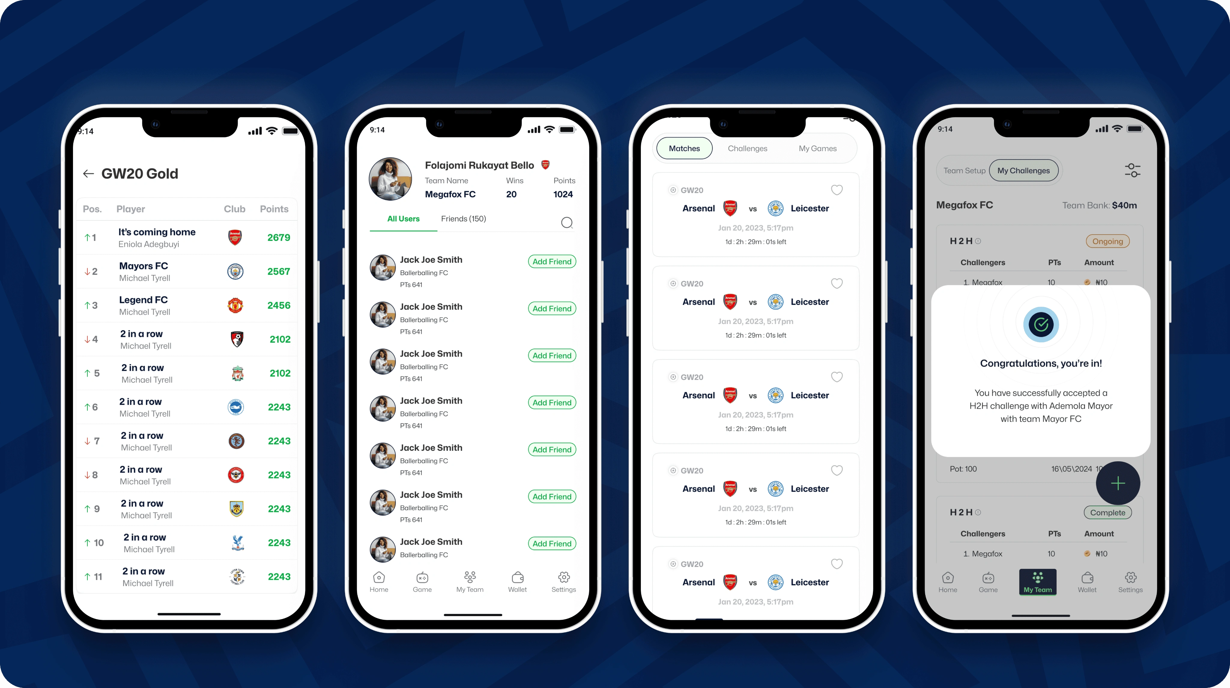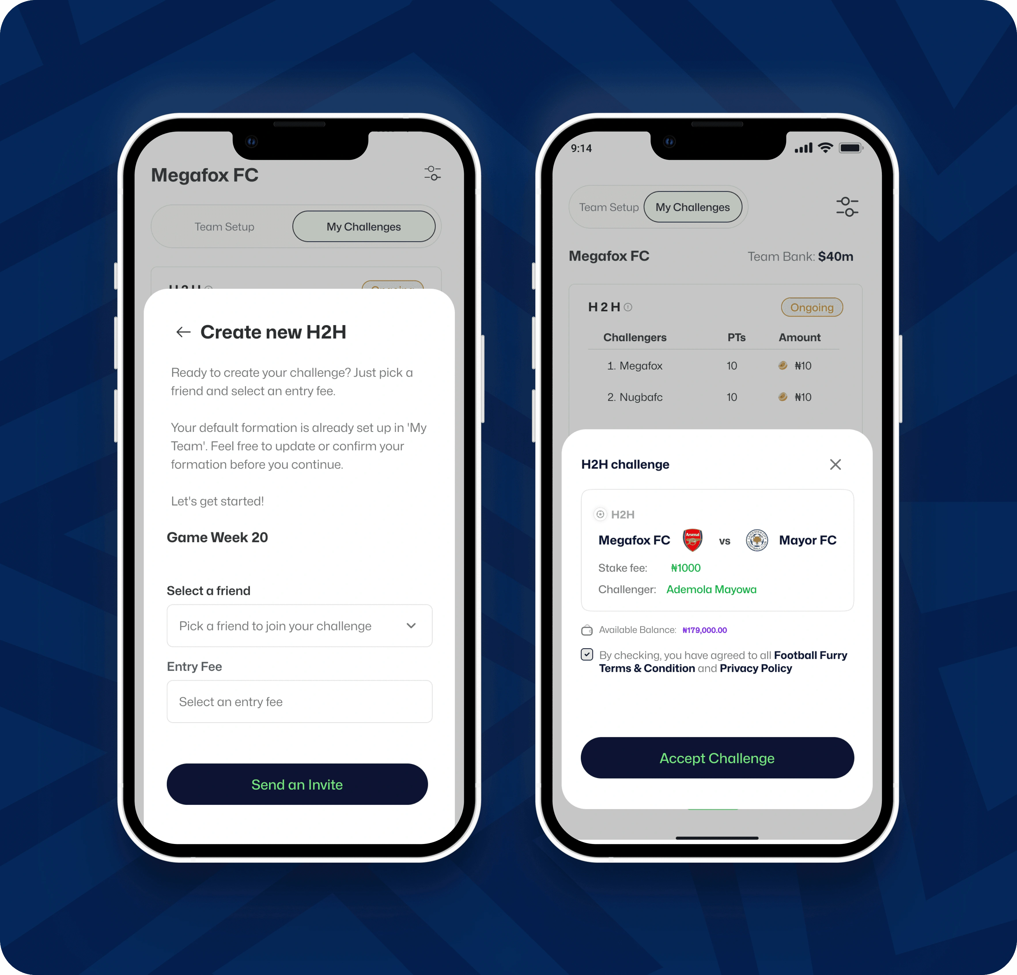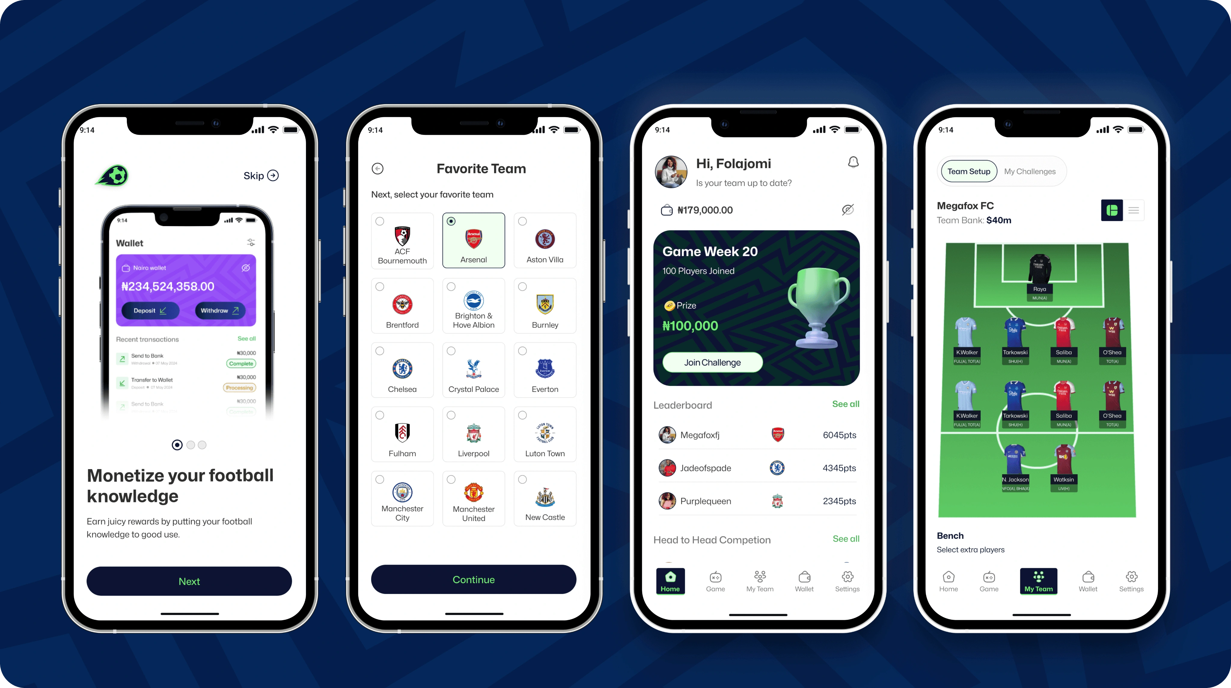 User-first visuals: Clean interface, football-driven branding, and a tone that balances excitement with trust.