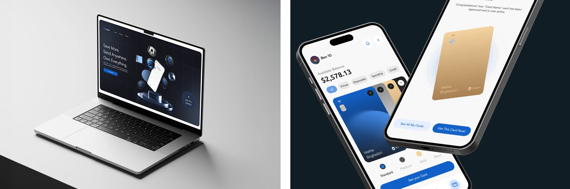 With a modern card-issuing product, Portal-Fi hired us to revamp their branding, pitch and brand assets, website, product, site and visual identity. Along with motion and 3d resources for marketing and other uses.
