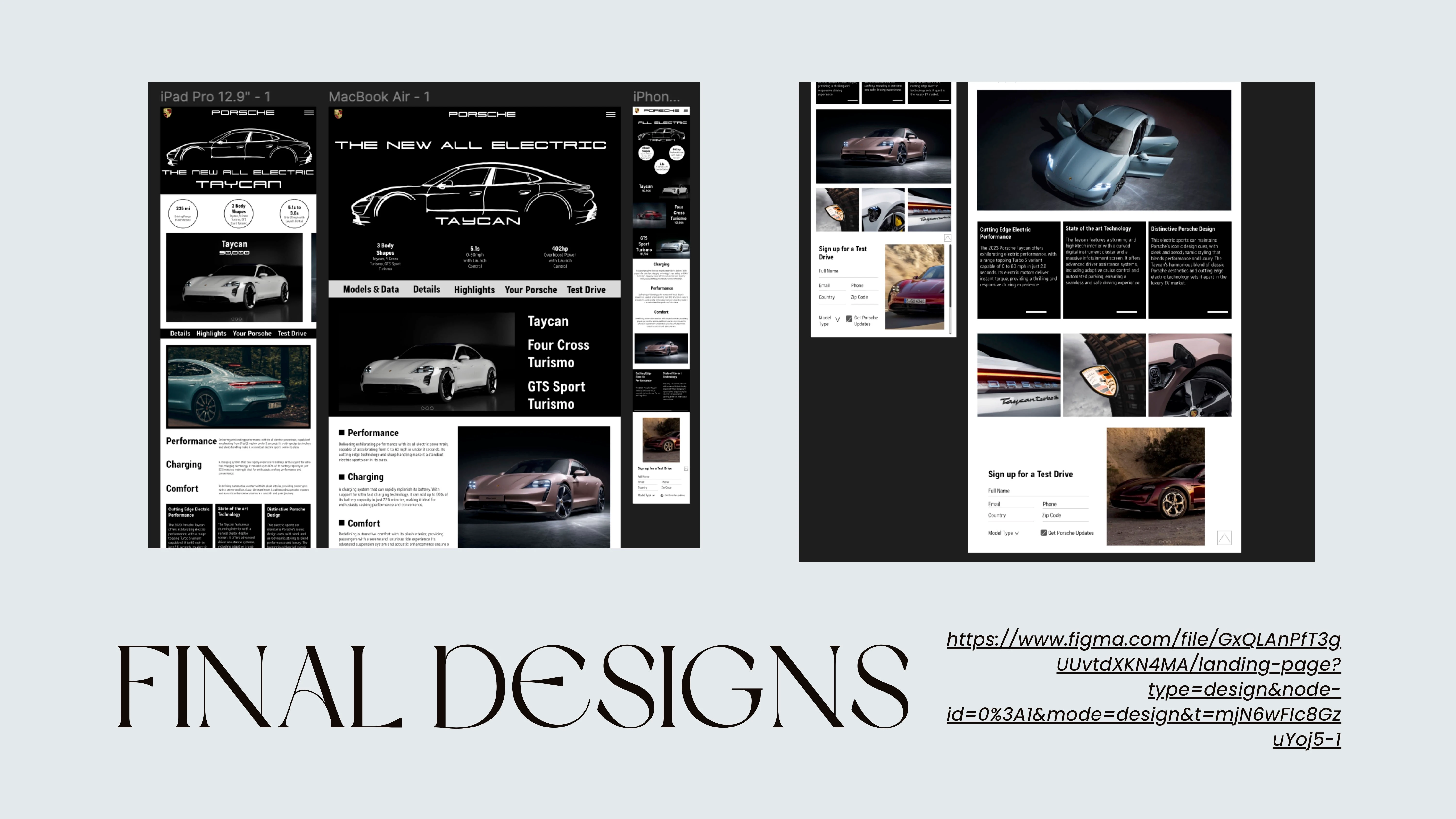 A landing page for Porsche's new model, all created on Figma from the wireframes to prototyping.