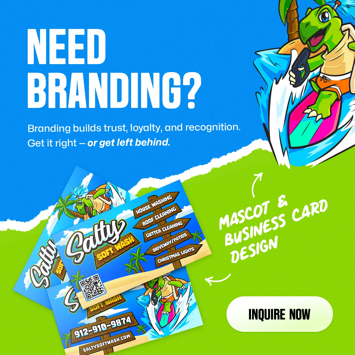 Created a brand identity for Salty Soft Wash, leading to 275% revenue growth.