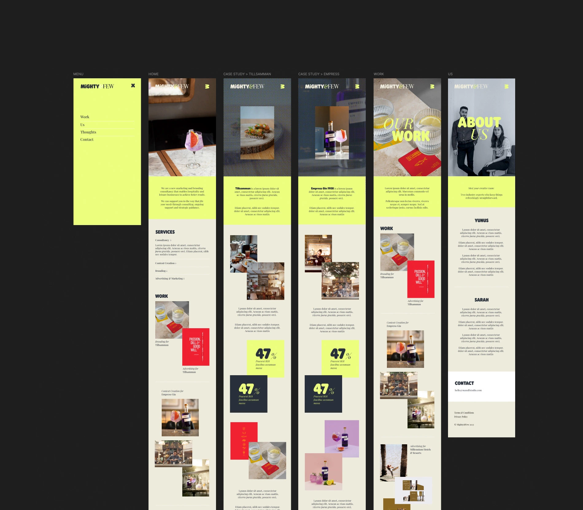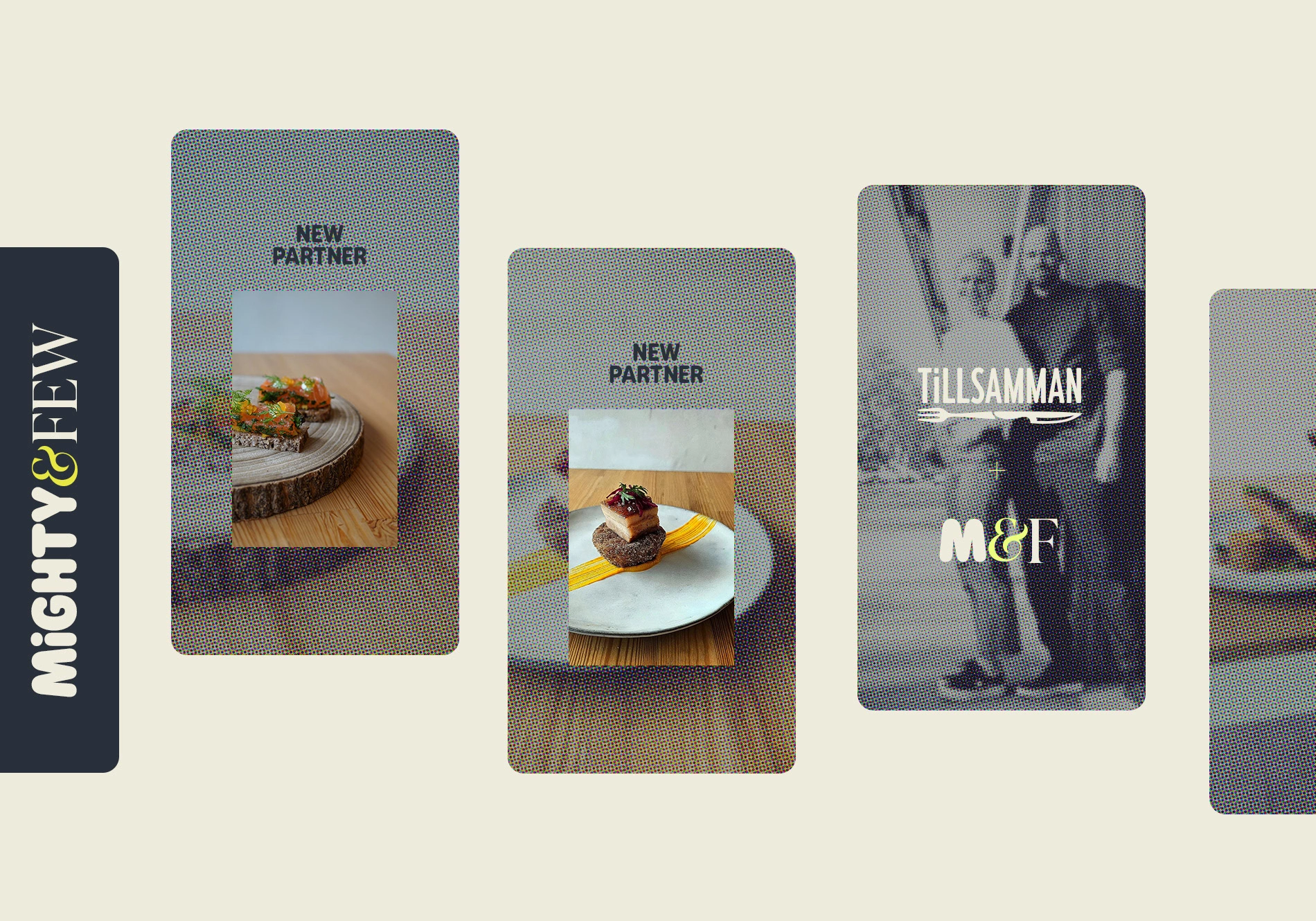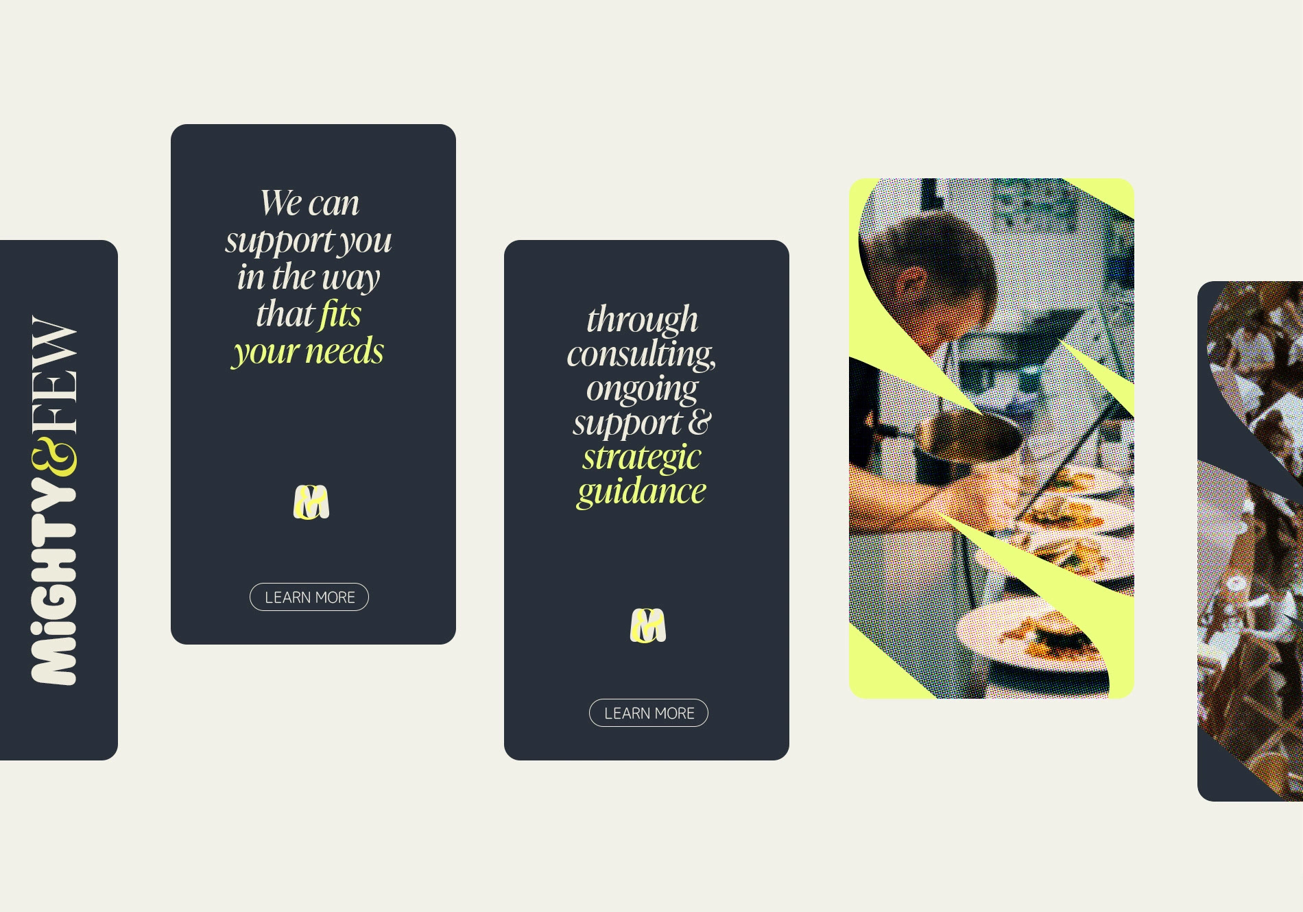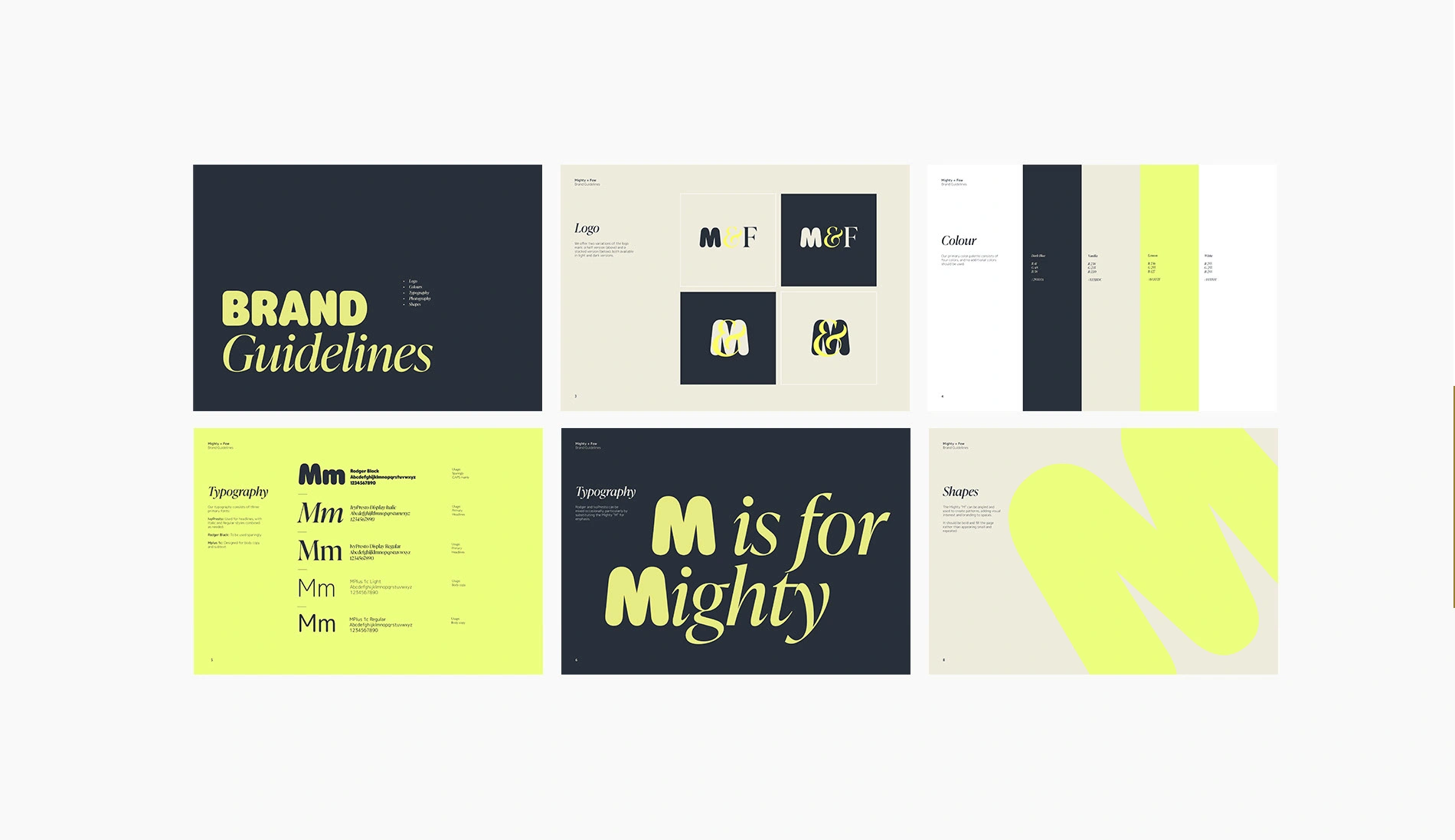 Branding for the newly launched studio Mighty & Few, including logo design, brand guidelines, creative assets, and website design.