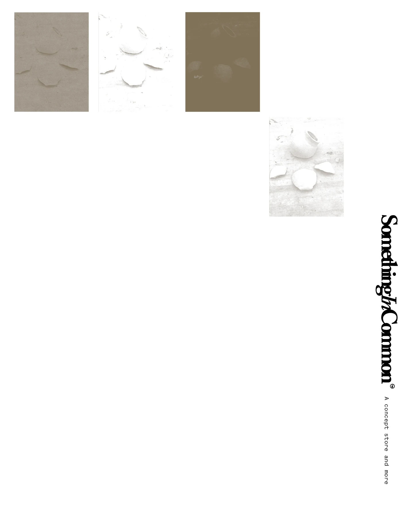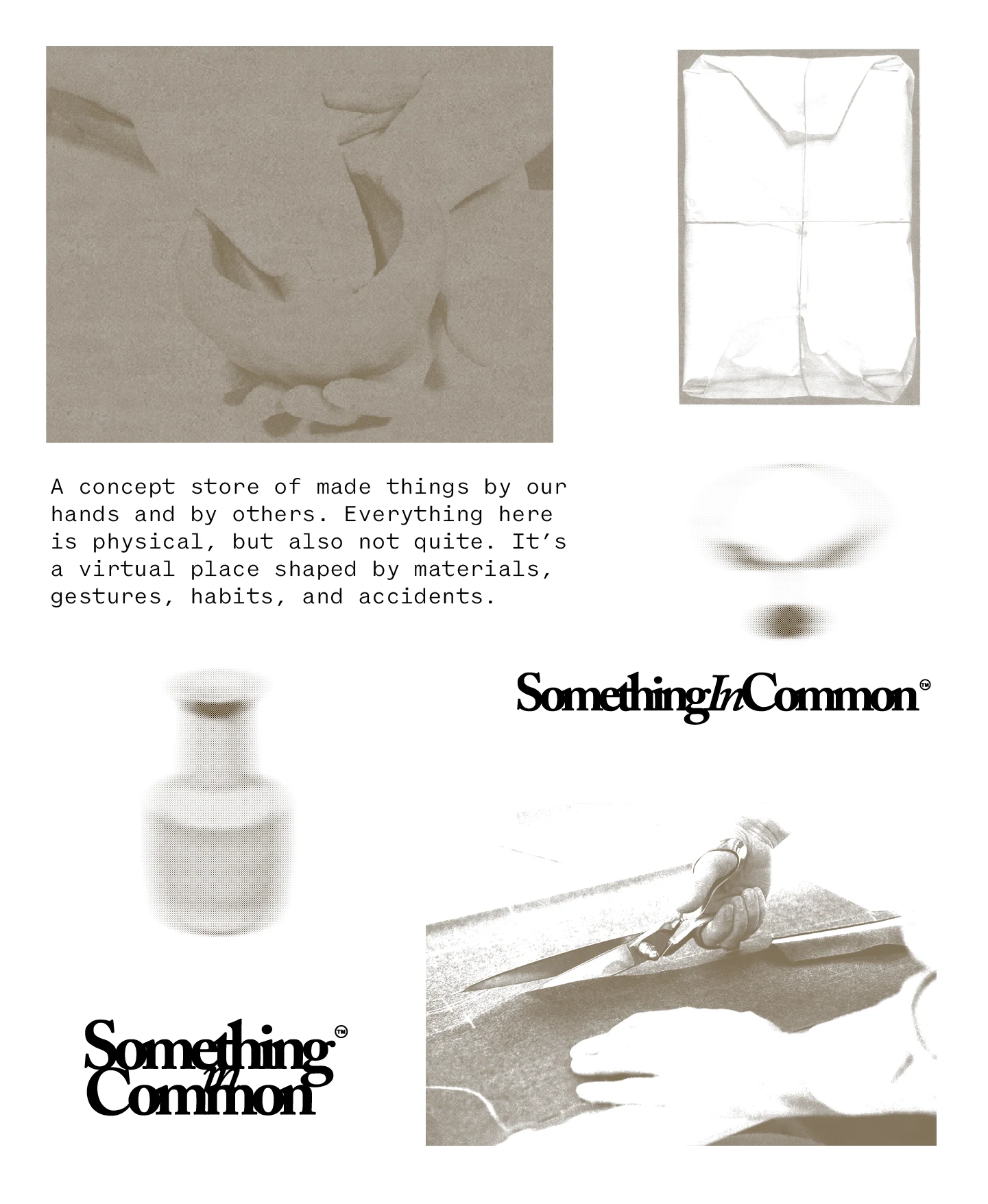 The visual identity for SomethinginCommonTM, a concept store that brings together a diverse range of handcrafted and curated objects, is rooted in the idea of materials. To reflect this, I explored a variety of textures and surfaces throughout the design.