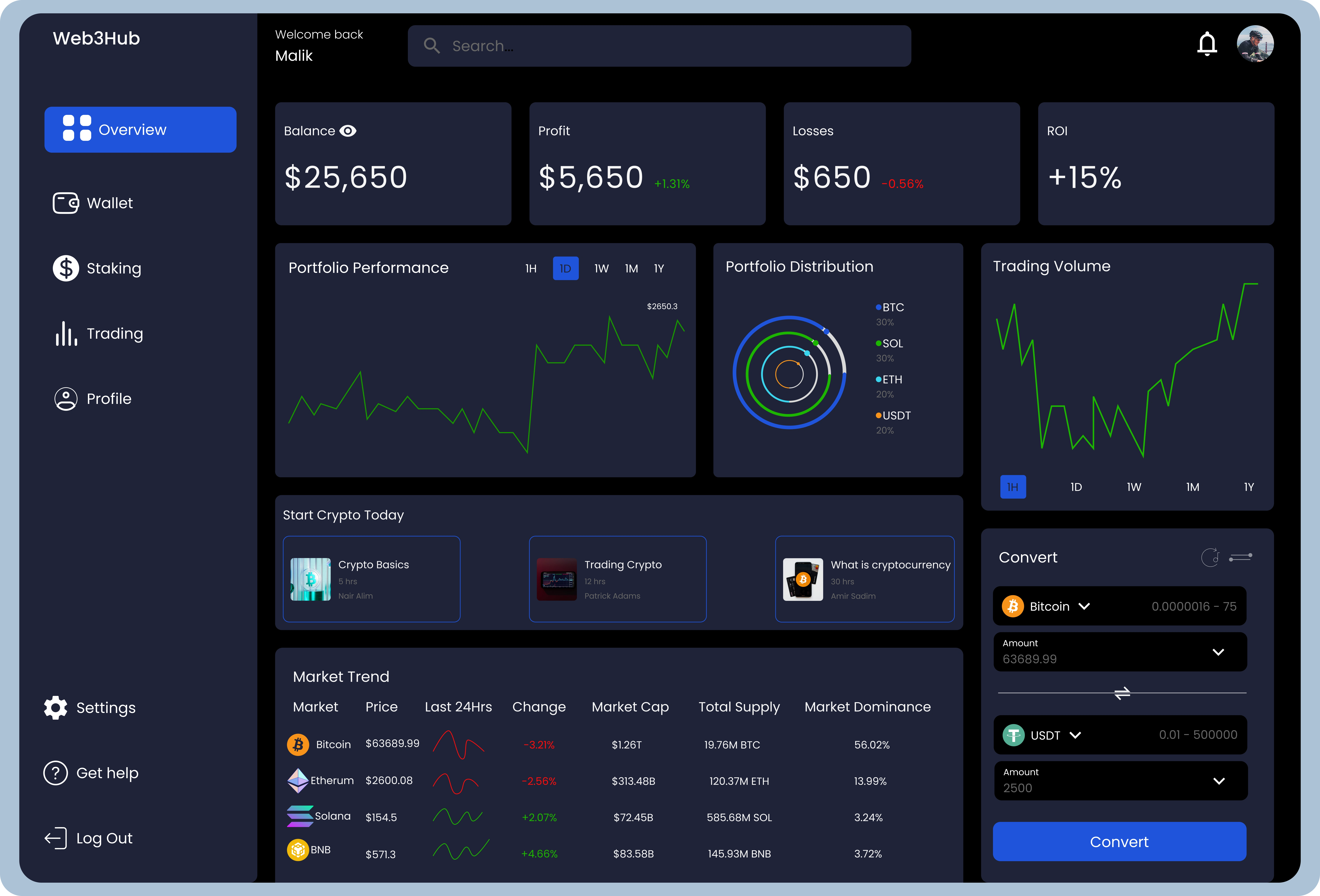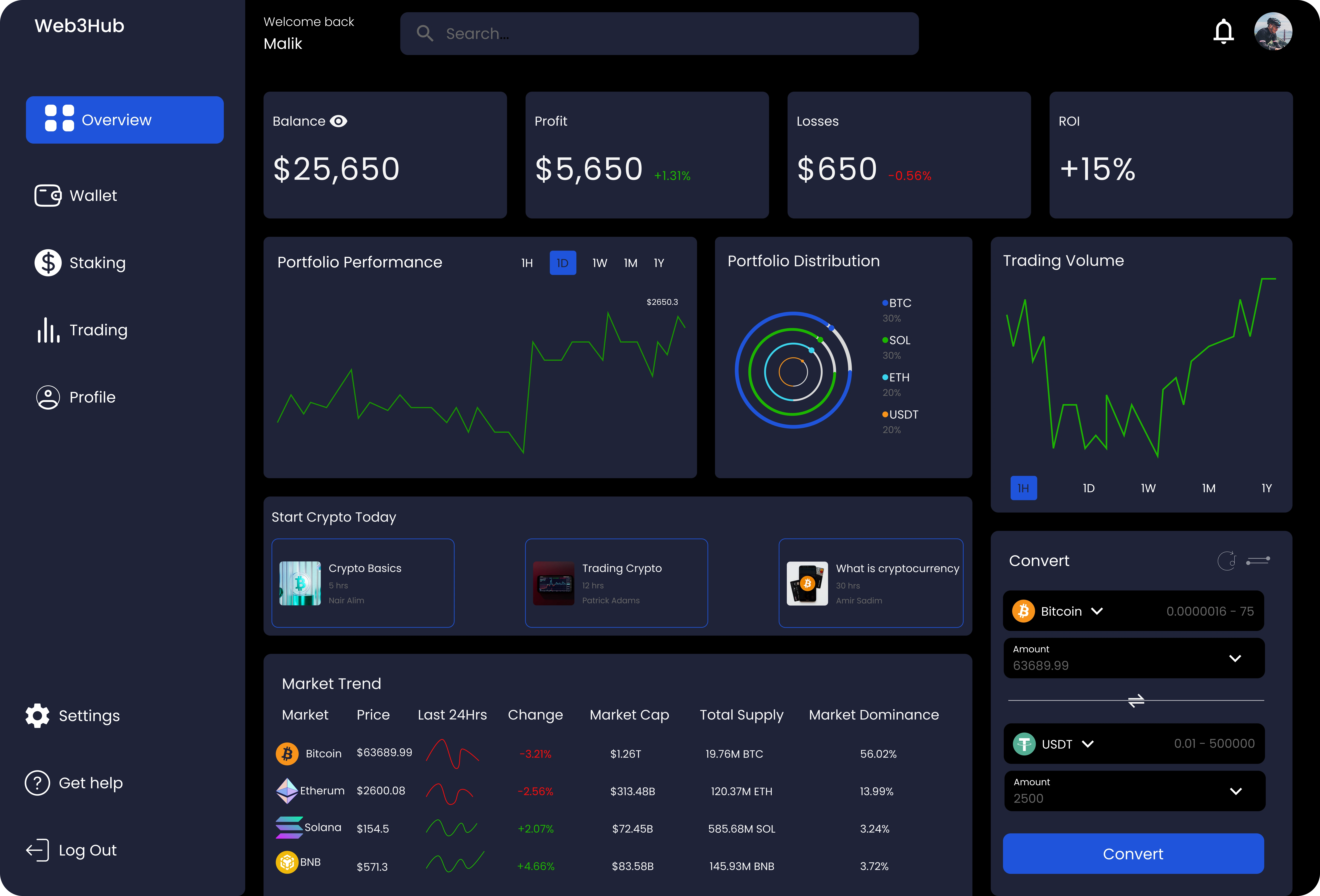 This interactive crypto dashboard is designed to simplify complex portfolio tracking and valuation, enabling high-speed market analysis and decisive action.
