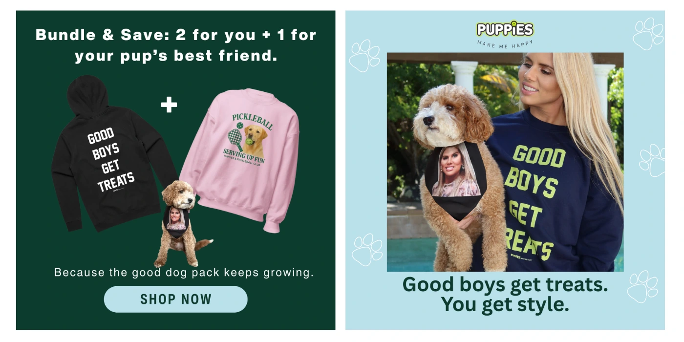 Concentrated spend on proven best sellers, specifically “Good Boy Gets Treats” tank tops