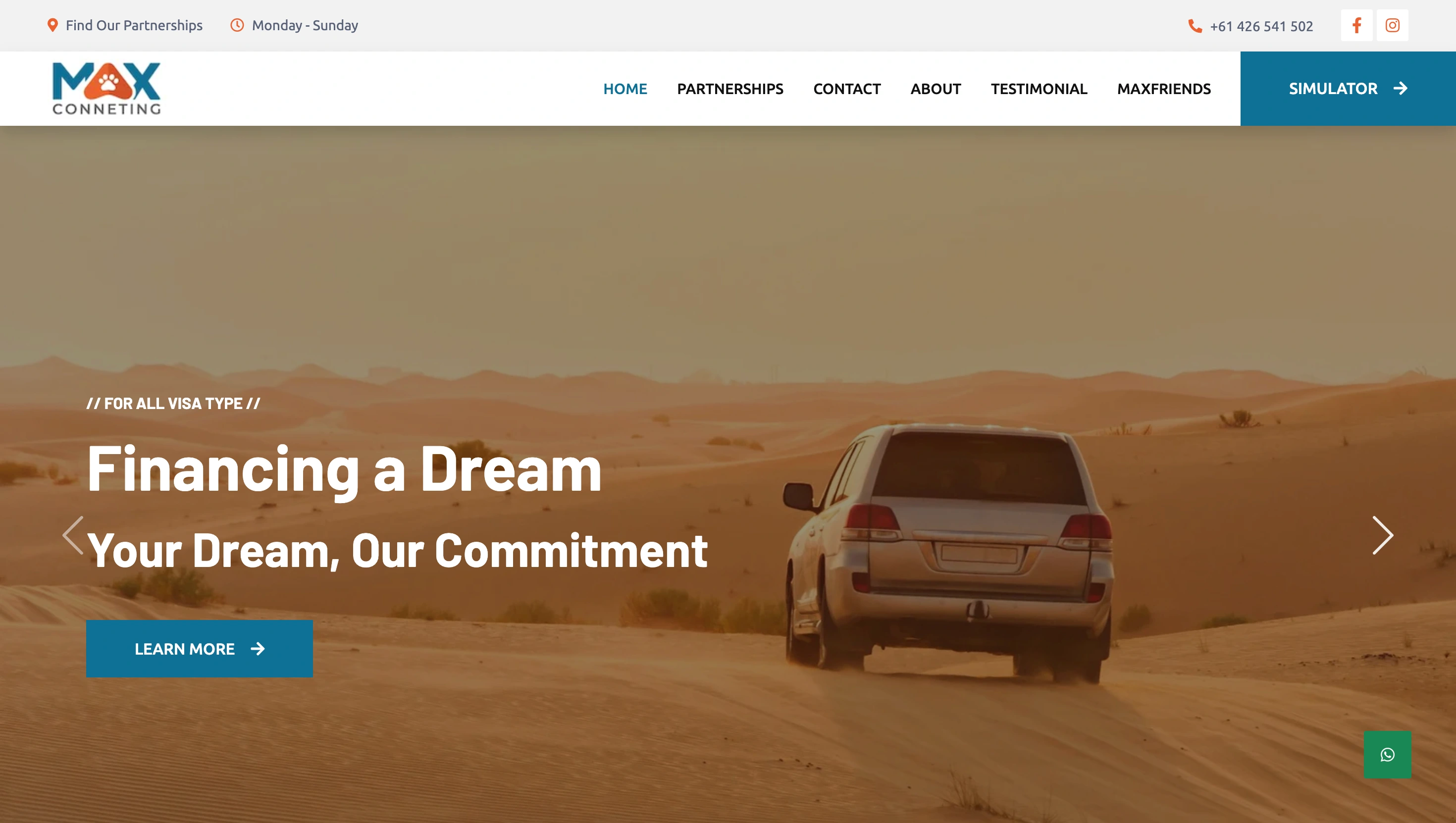I designed and developed a complete financing website for MaxConnecting, an Australian vehicle loan company. The project was built using modern web technologies with a mobile-first approach and included backend logic, contact integrations, and deployment on a production server.