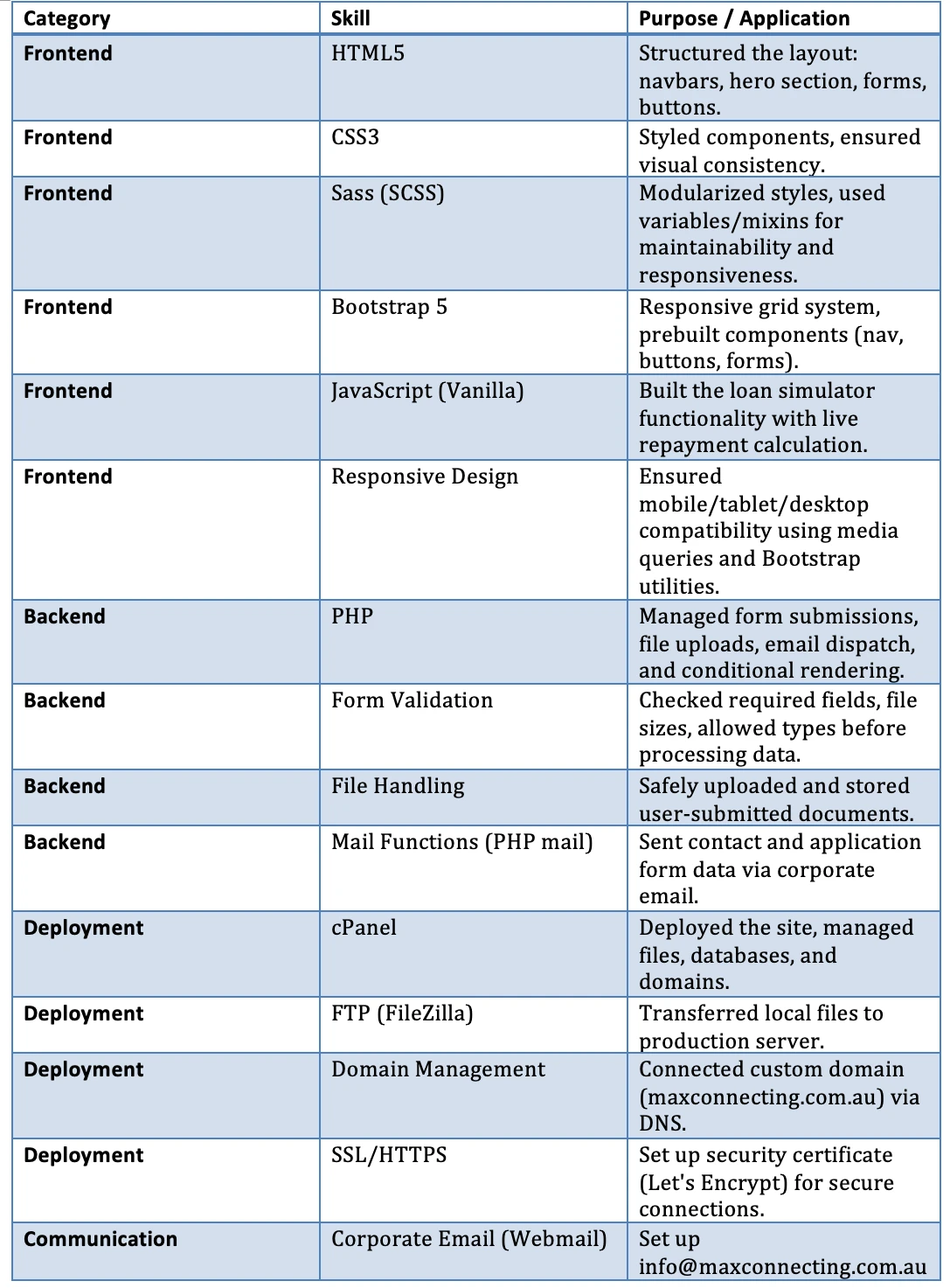 🔹 Created and linked a corporate email address (info@maxconnecting.com.au) for lead management and support.