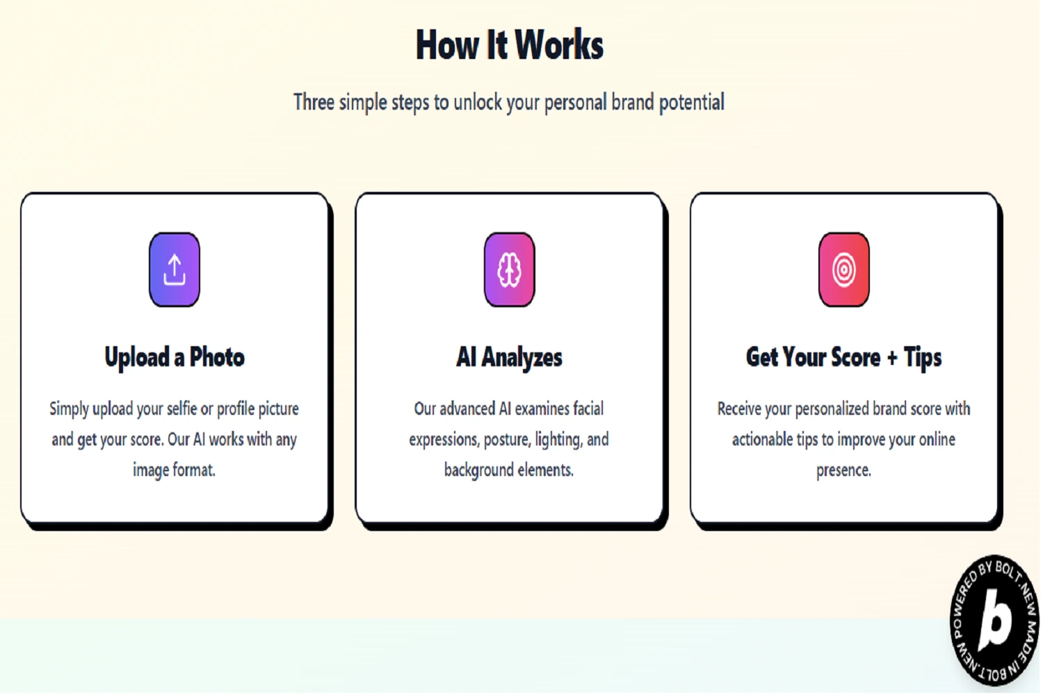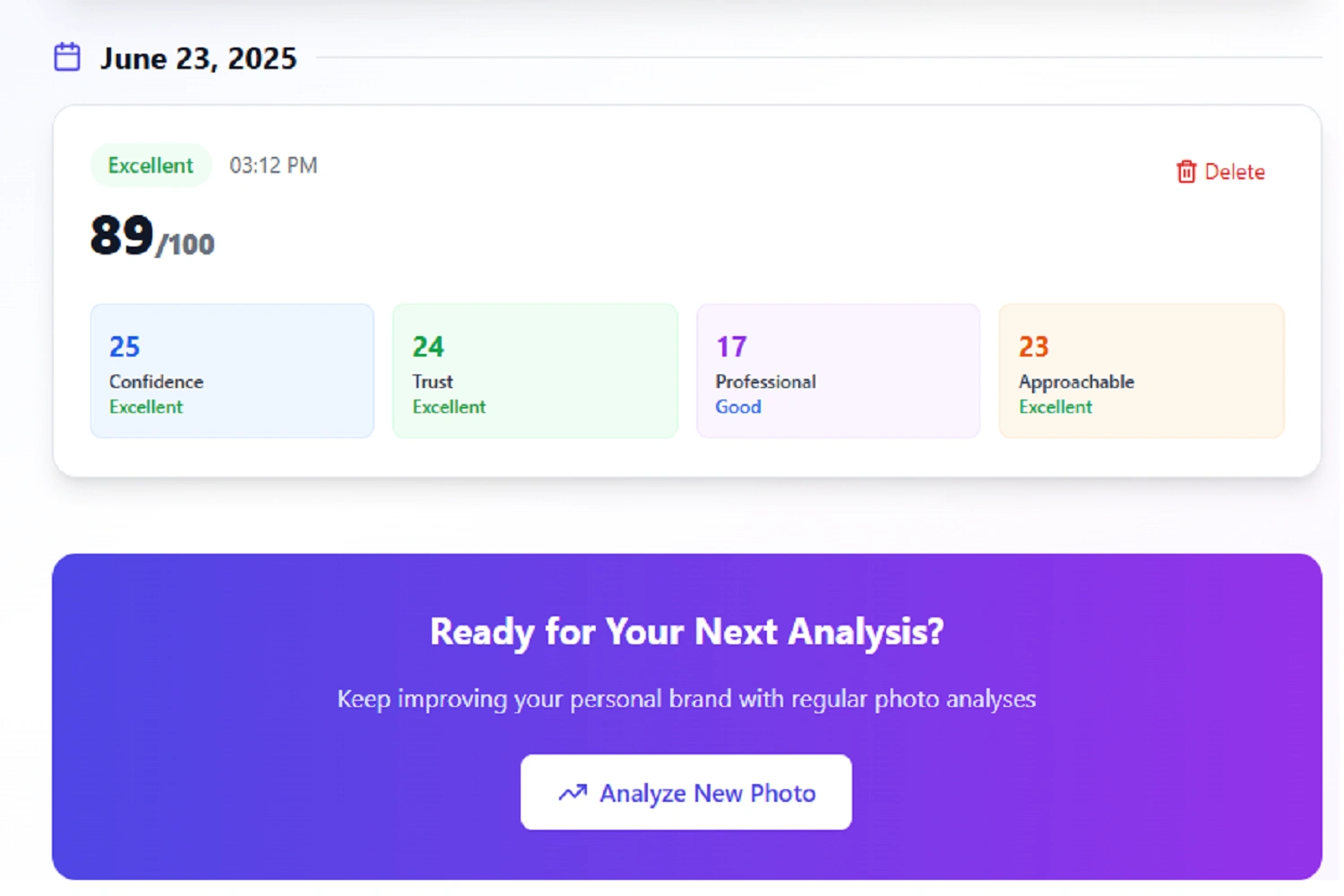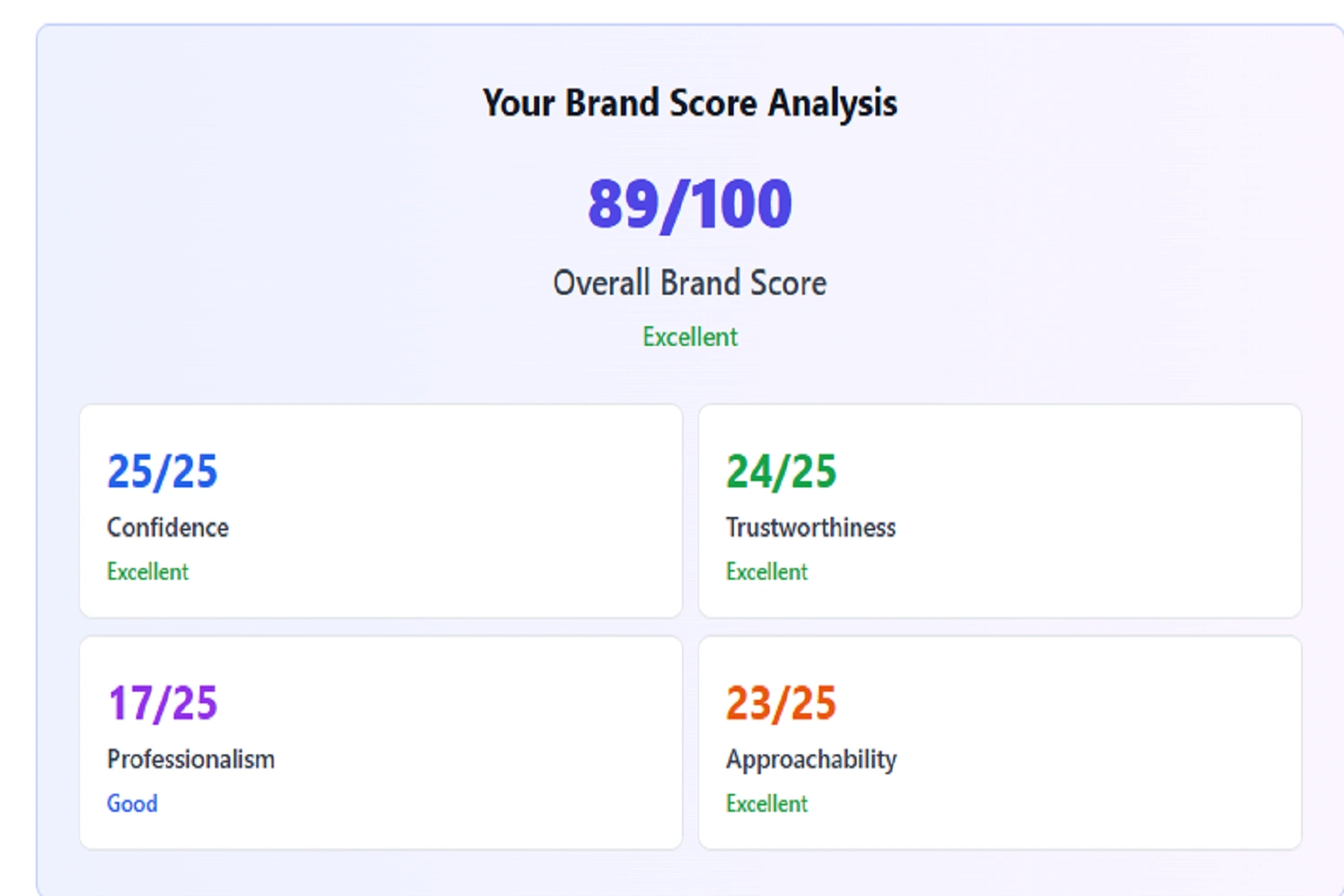 Developed AI-powered web app for personal brand scoring and management. It analyses + provides a personalized brand score (confidence, trust, professionalism).