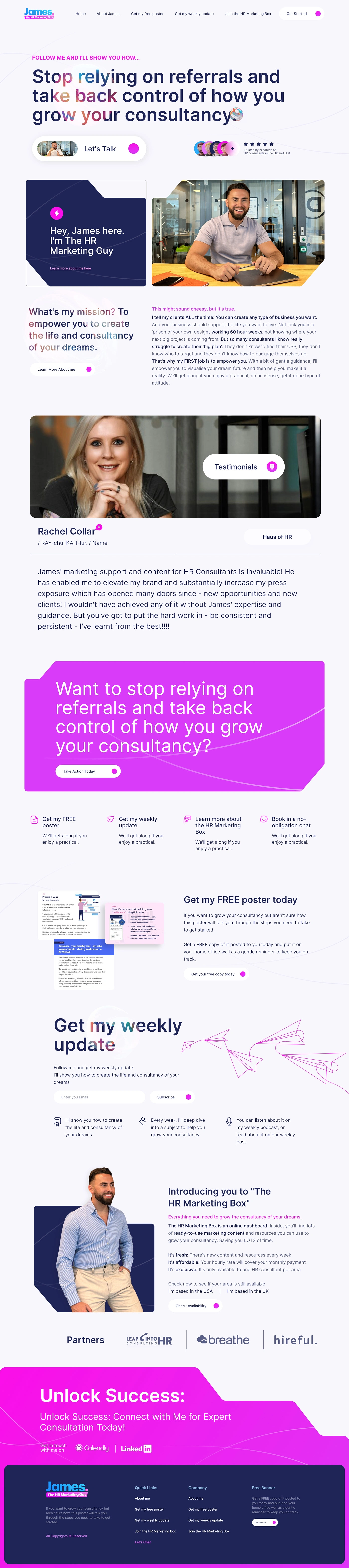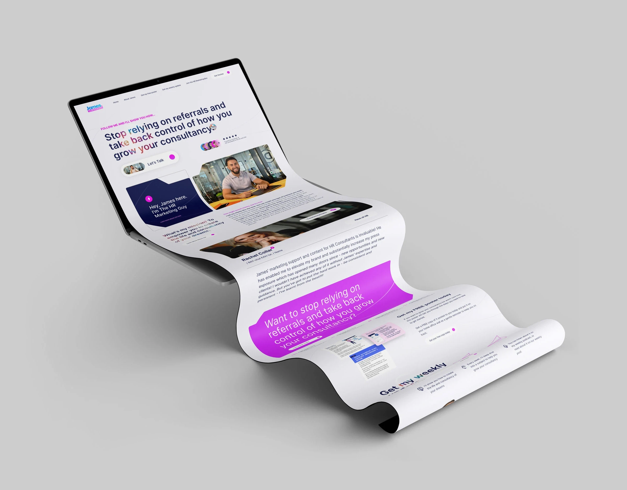 Meet ‘James – The HR Marketing Guy’: a sleek, Figma-crafted landing page by Pacrose LTD, blending modern web design with strategic branding finesse.
