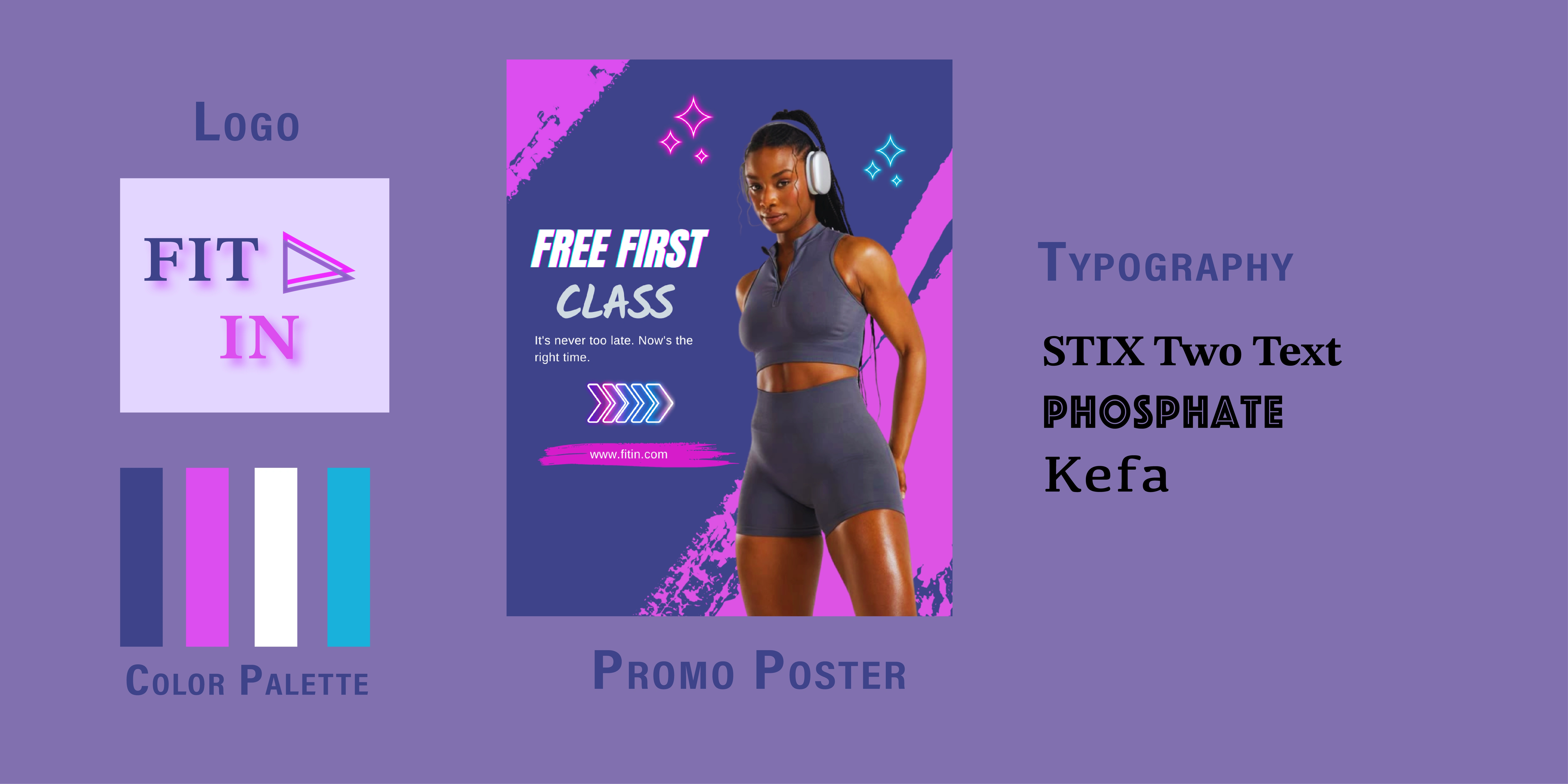 Branded Fit In, a women-owned gym, with bold visuals and empowering messaging to reflect strength, community, and confidence.