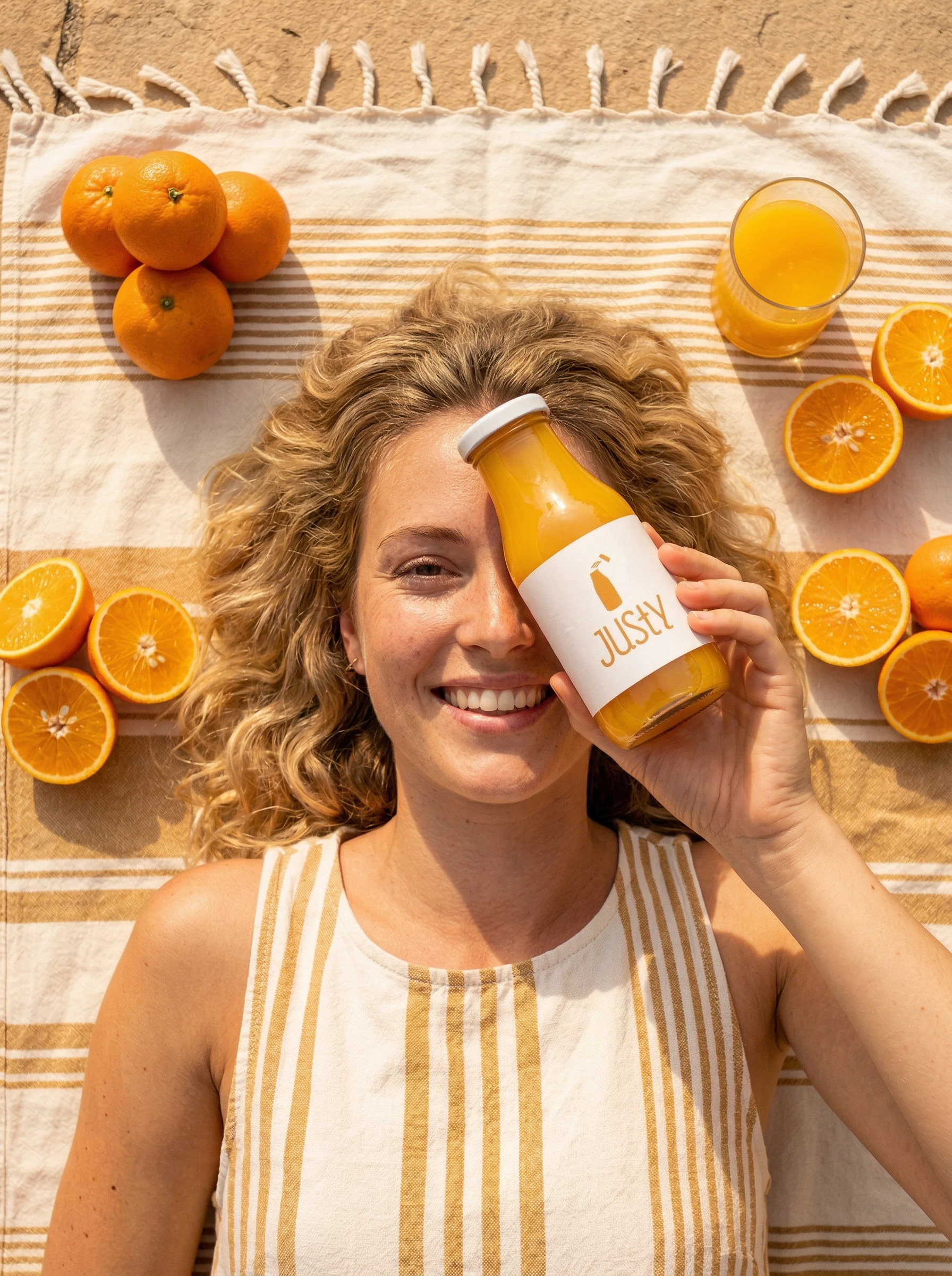 I dug into how bigger beverage brands present their products and used that as a starting point. From there I built out the prompts myself, testing different angles and settings, oranges on trees, sunny flat lays, lifestyle moments, always making sure the bottle looked exactly as it does in real life. A lot of back and forth until it felt right.