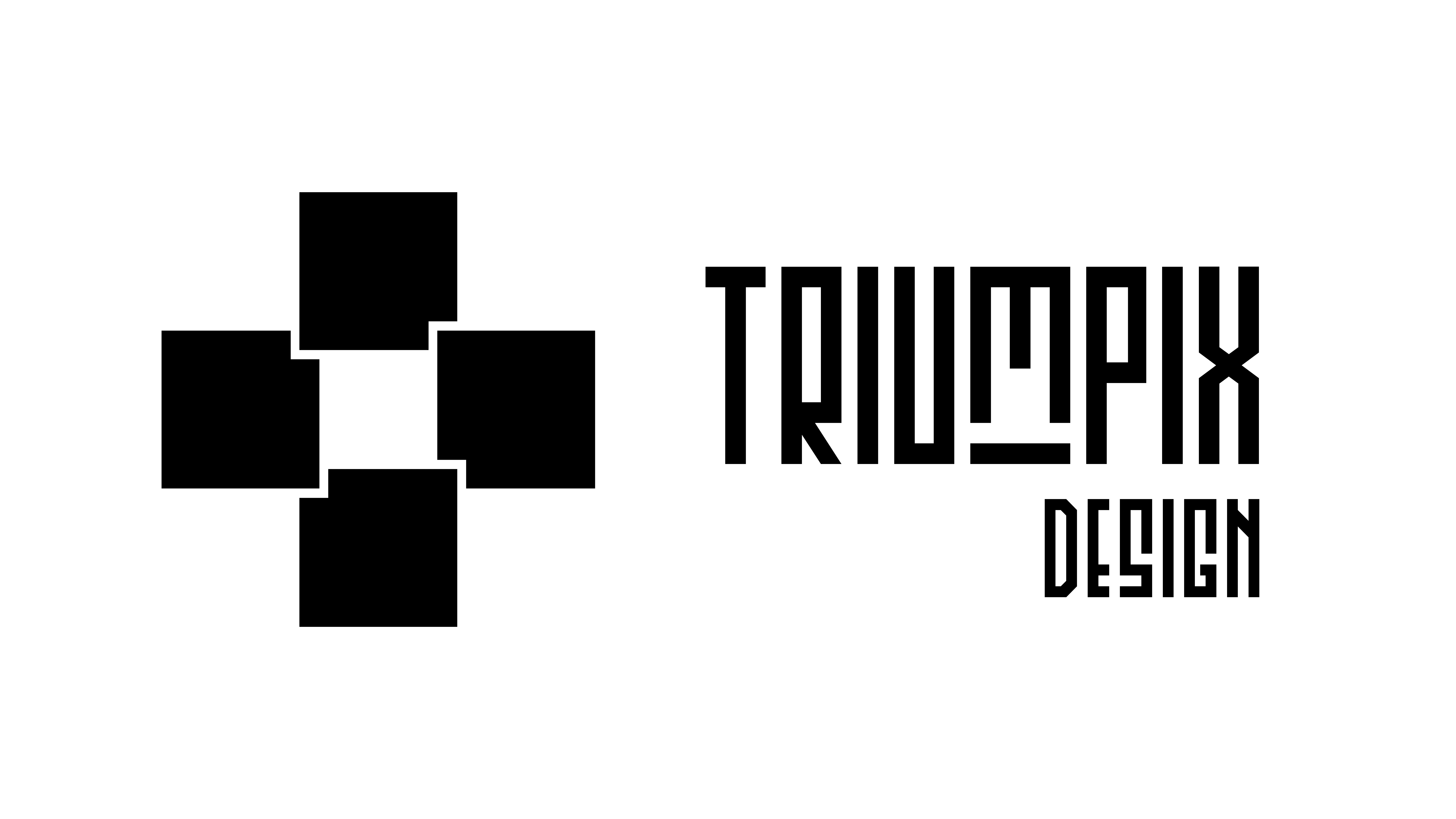 The TRIUMPIX logo is built from 4 bold squares, symbolizing structure, balance, and the brand’s four design pillars: clarity, creativity, quality, and impact.
