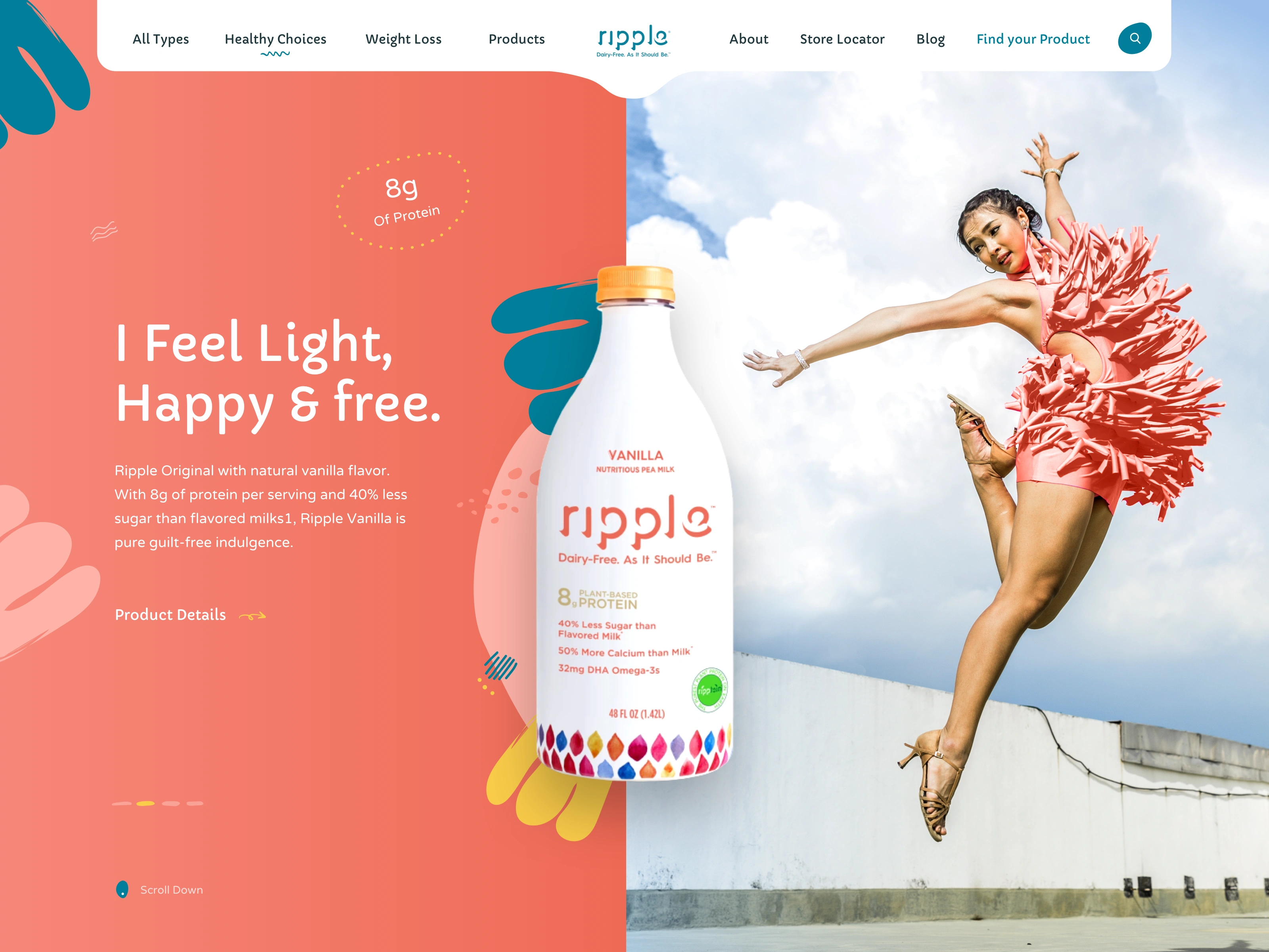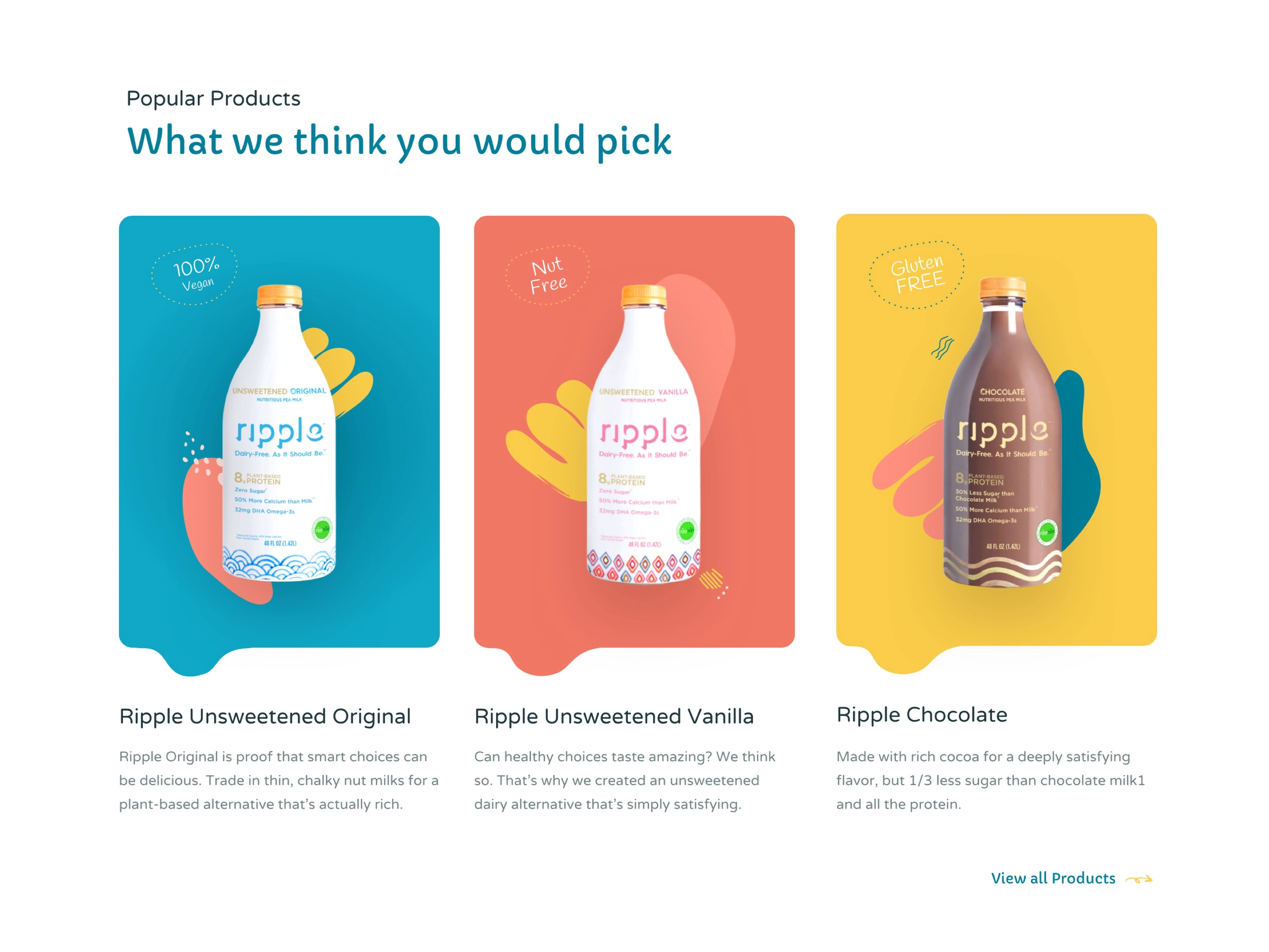 Clean, modern, and fresh. This minimalist design puts Ripple's health benefits front and center. Looks as pure and premium as the product.