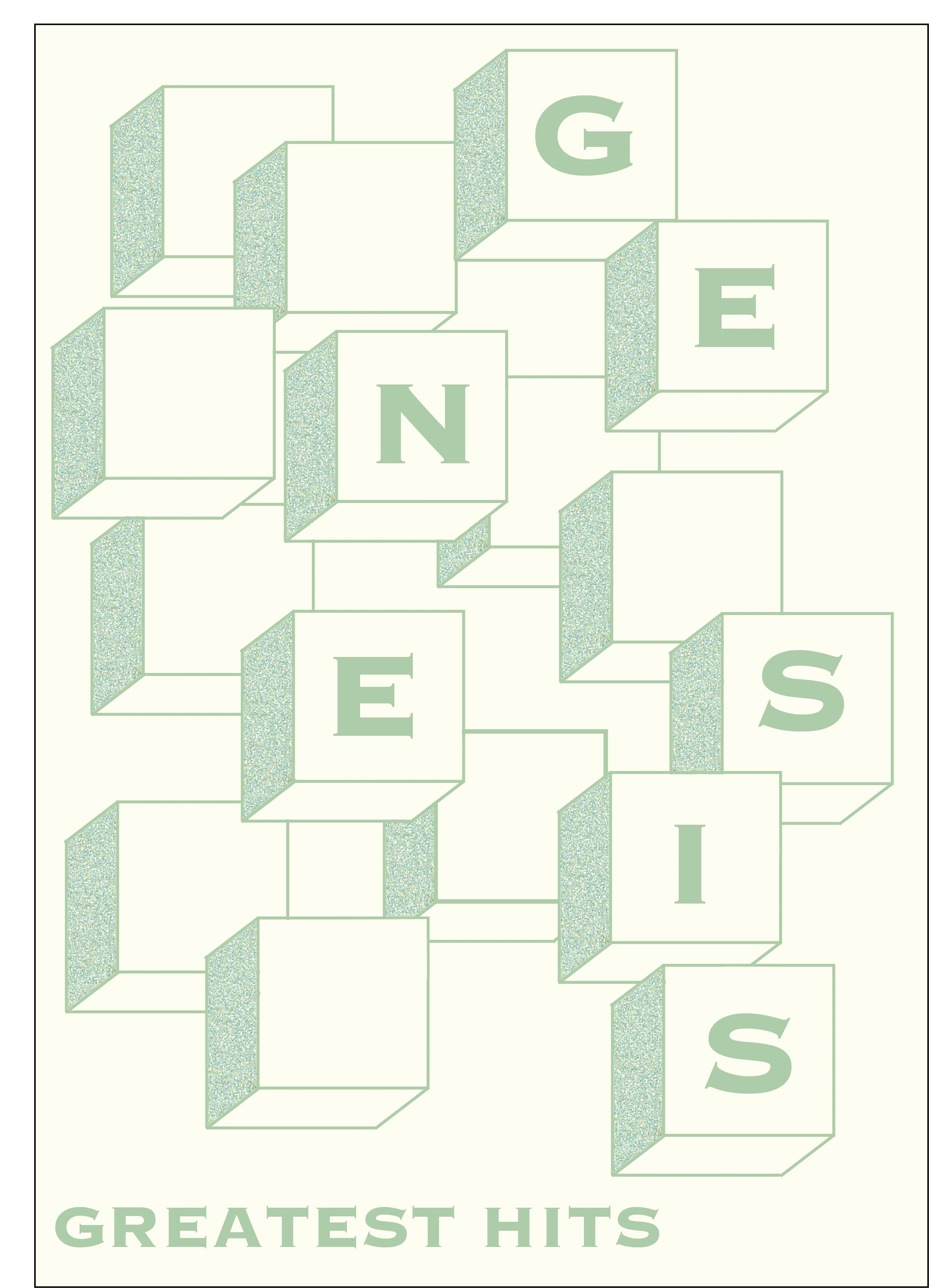 Poster to advertise the release of the "greatest hits" compilation of the band Genesis. The poster is fictional.