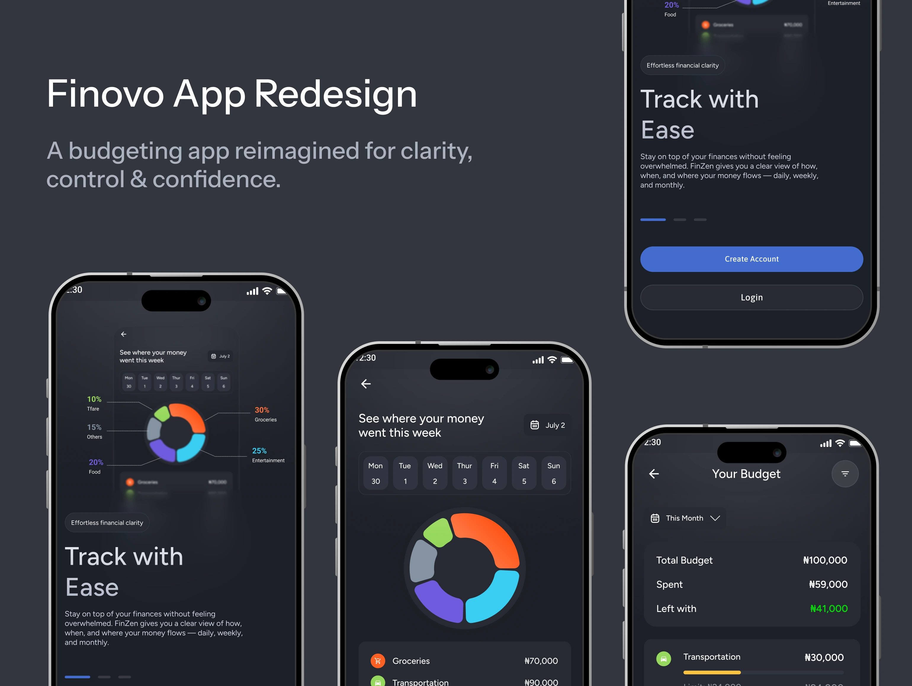 Finovo is a conceptual fintech app designed to help users manage their finances with clarity and confidence. This project focused on building a seamless onboarding experience, intuitive navigation, and a clean visual language that reflects trust and simplicity.