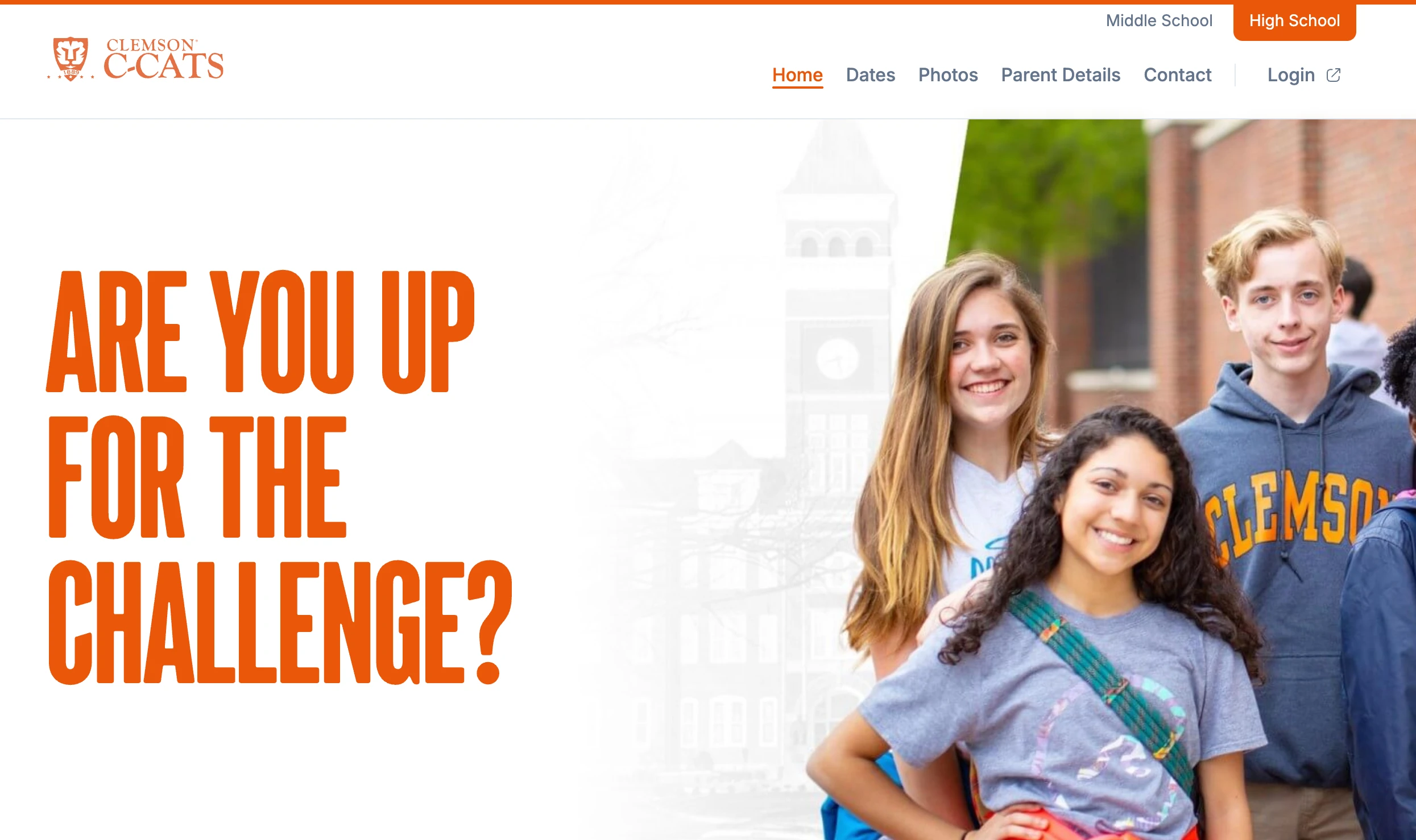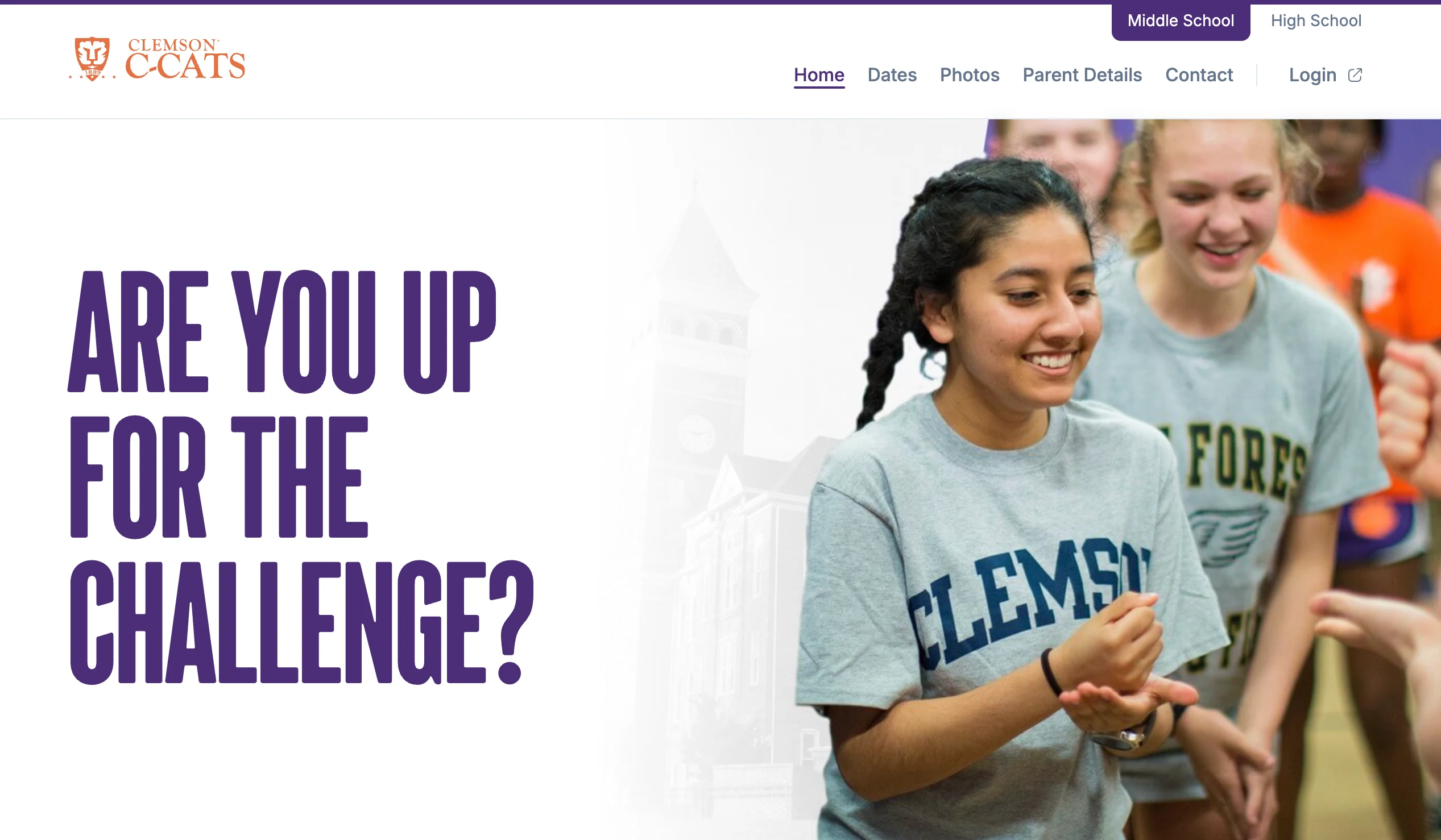 The Clemson C-Cats website was a static website re-build. I was responsible for designing and developing the website. There are two micro-sites that were built, one for the Middle School: