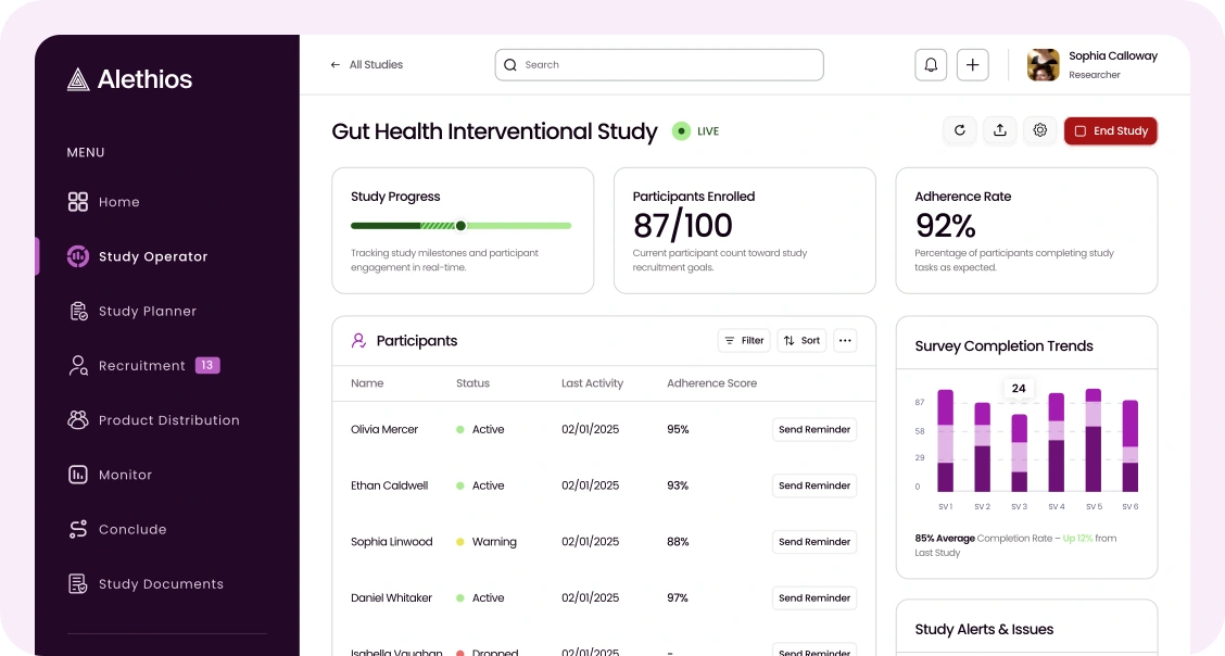 Alethios is an AI-driven research platform enabling streamlined participant recruitment and real-time study insights.