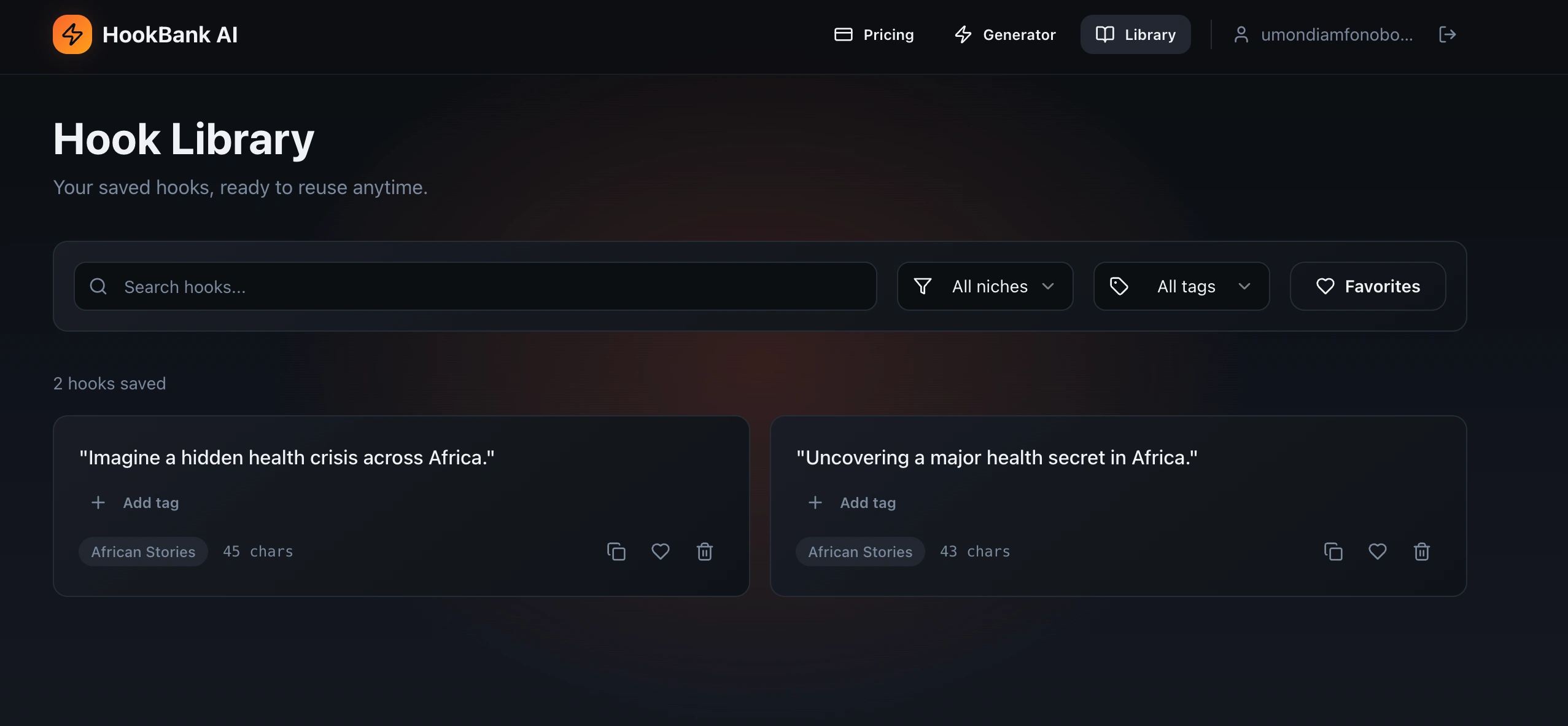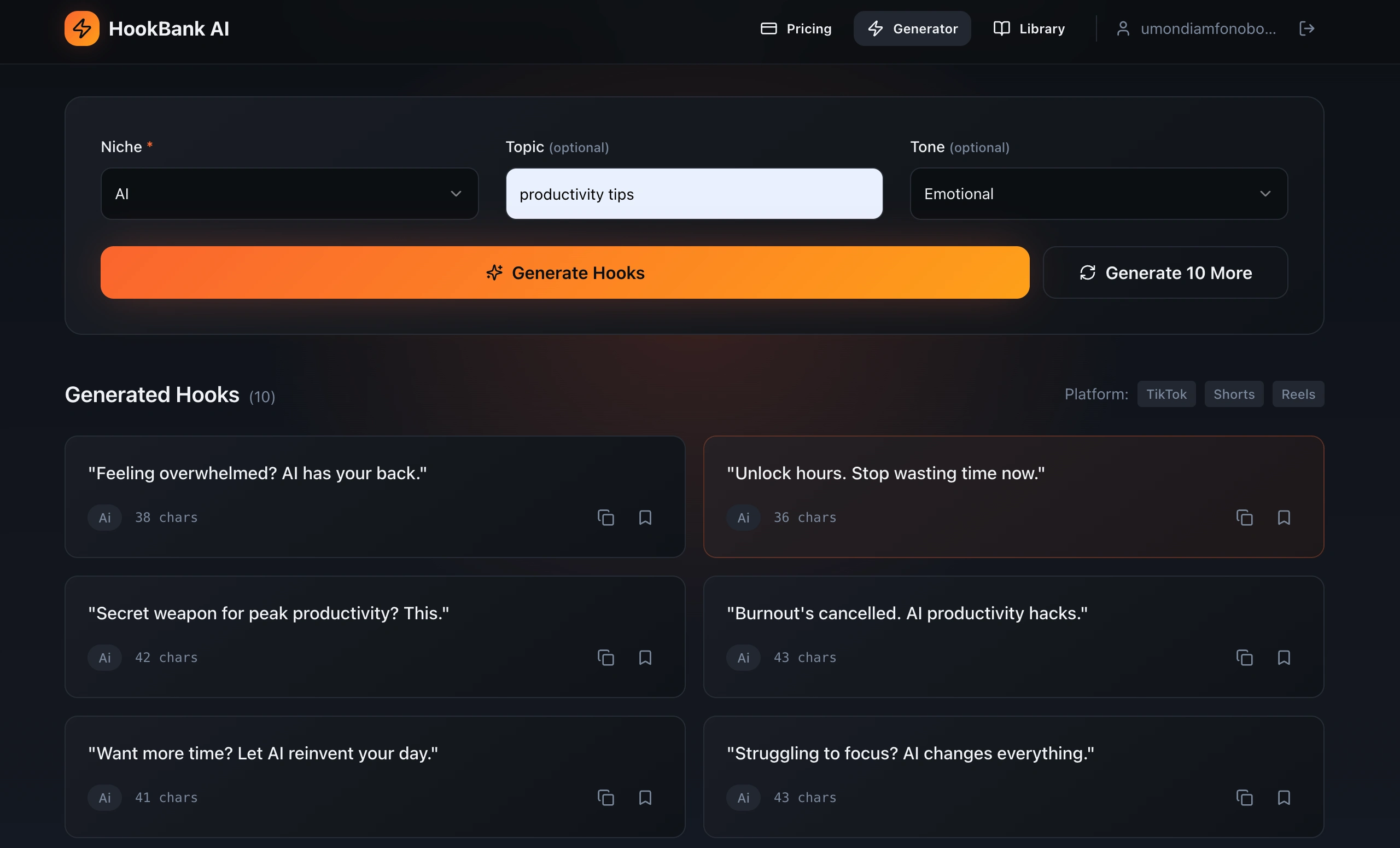 I designed HookBank AI to help creators instantly generate content hooks by niche and save top-performing hooks for reuse. Using Lovable’s AI capabilities, I rapidly prototyped, iterated, and deployed a user-friendly experience that met creators’ needs.