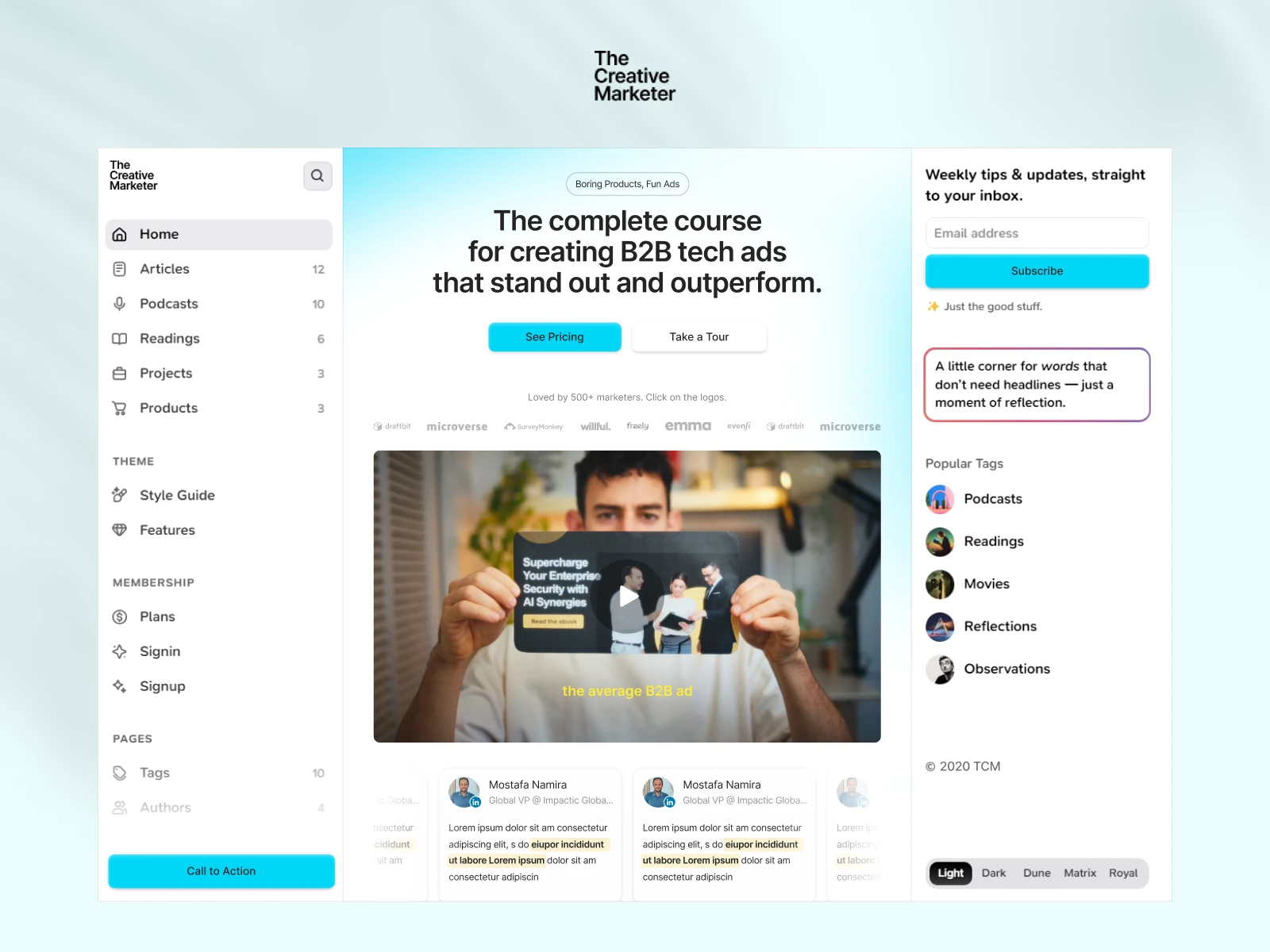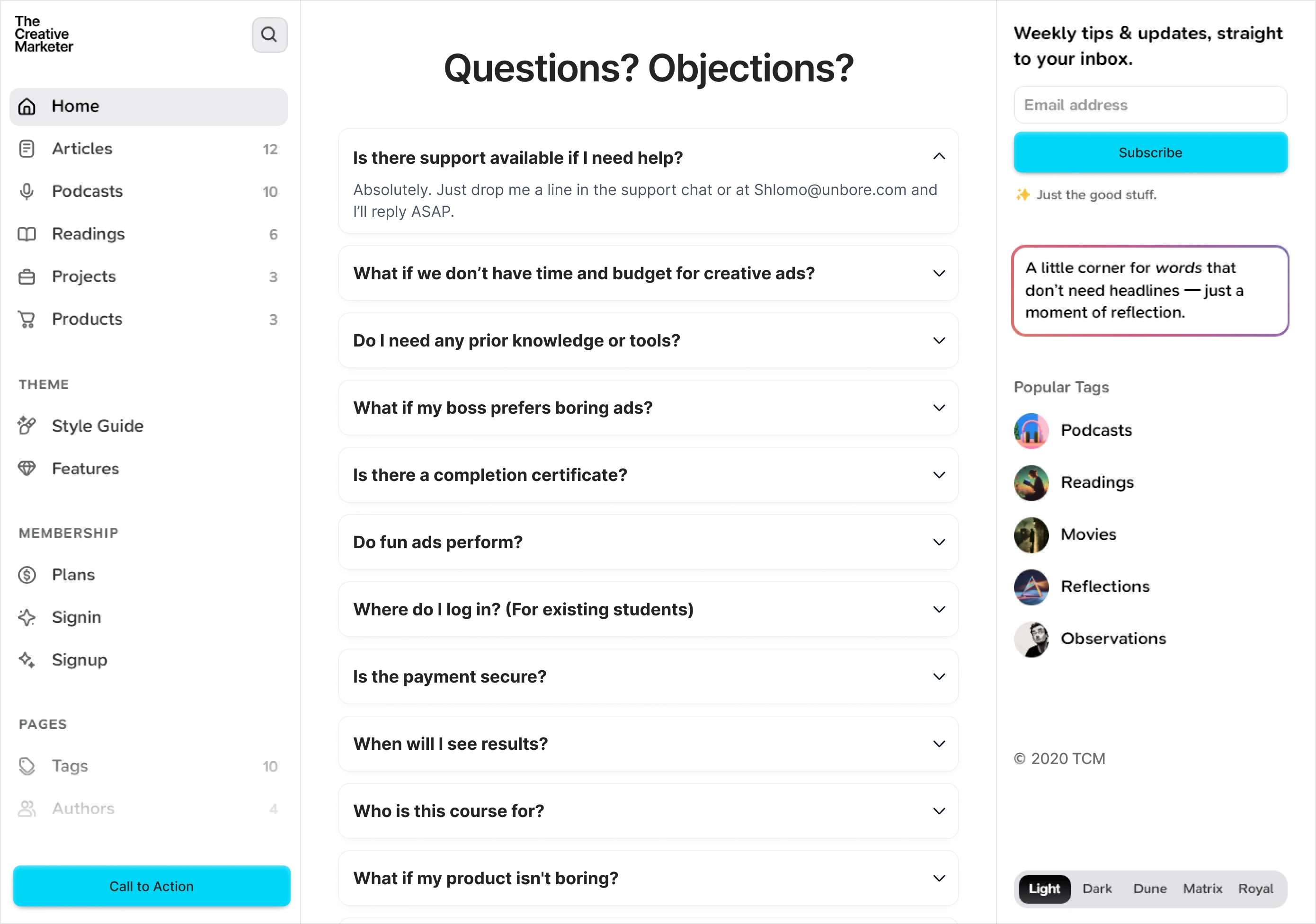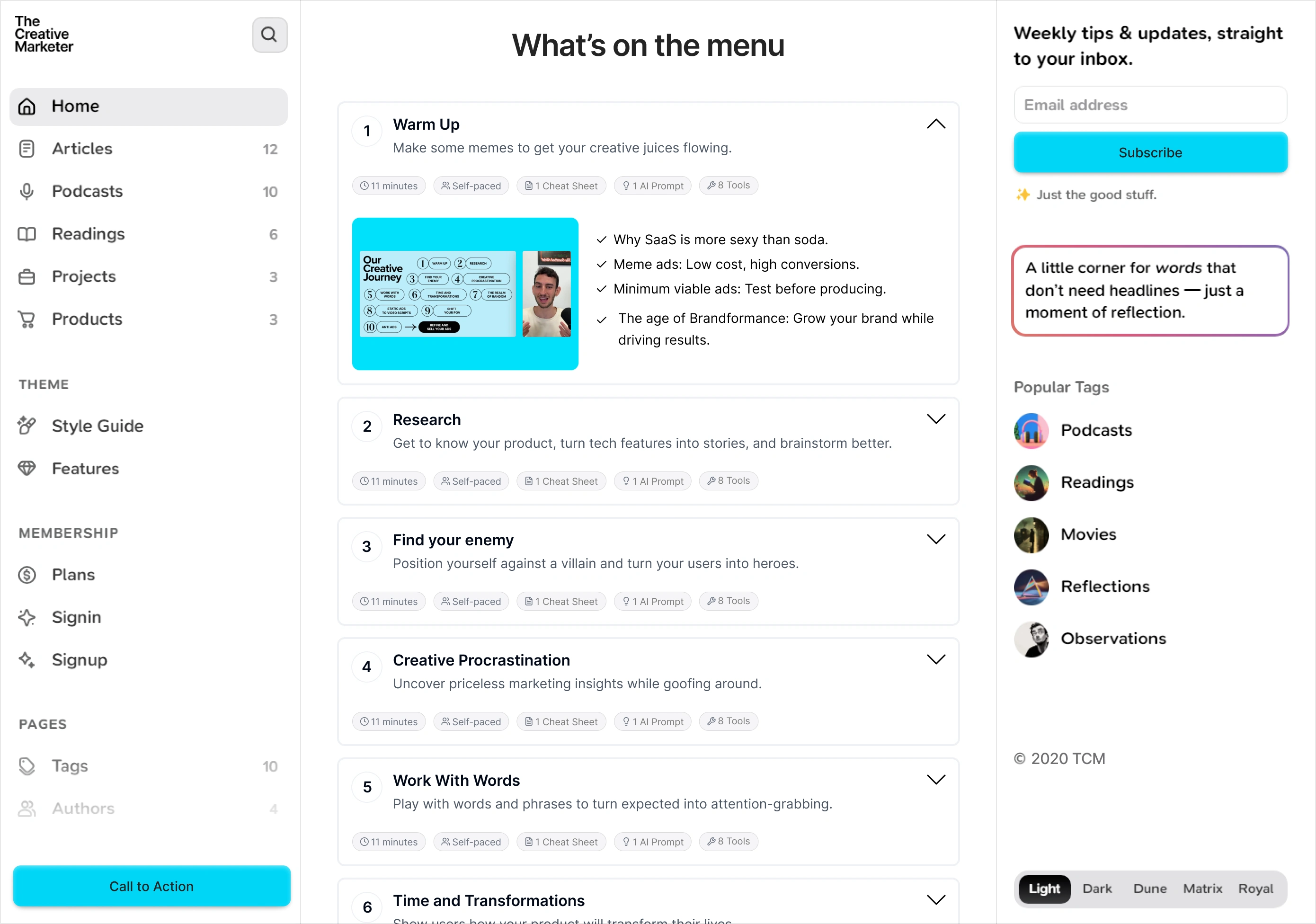 Redesigned the central content of The Creative Marketer’s course page to fit a new sidebar-based template.