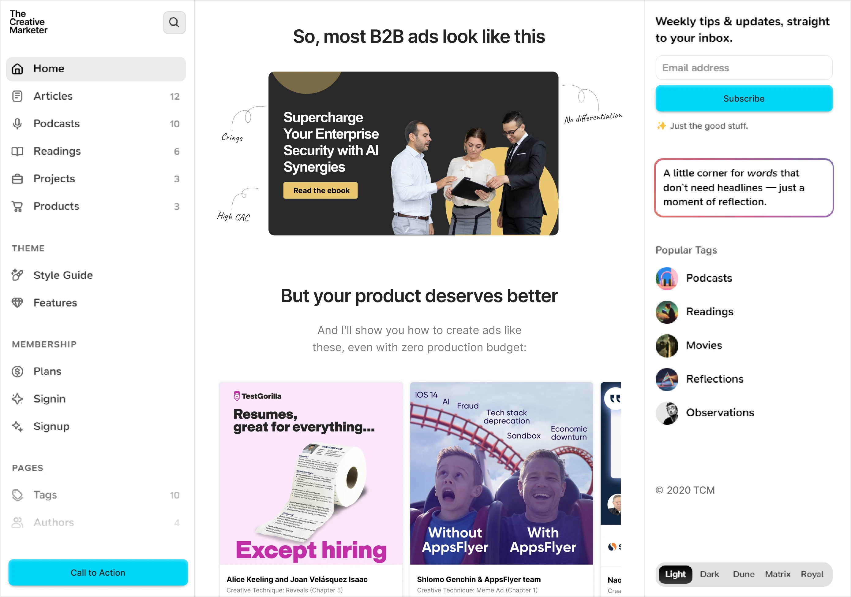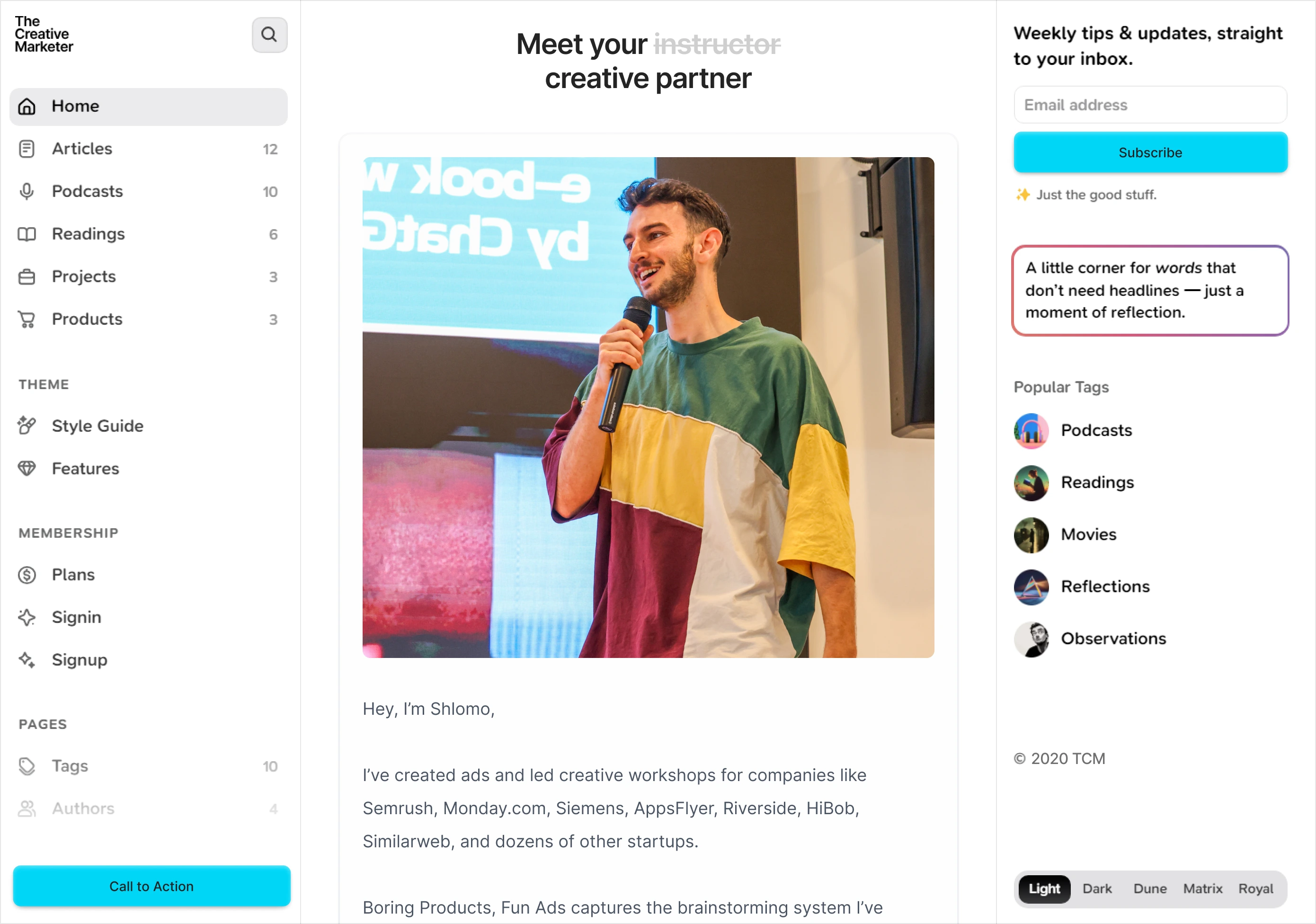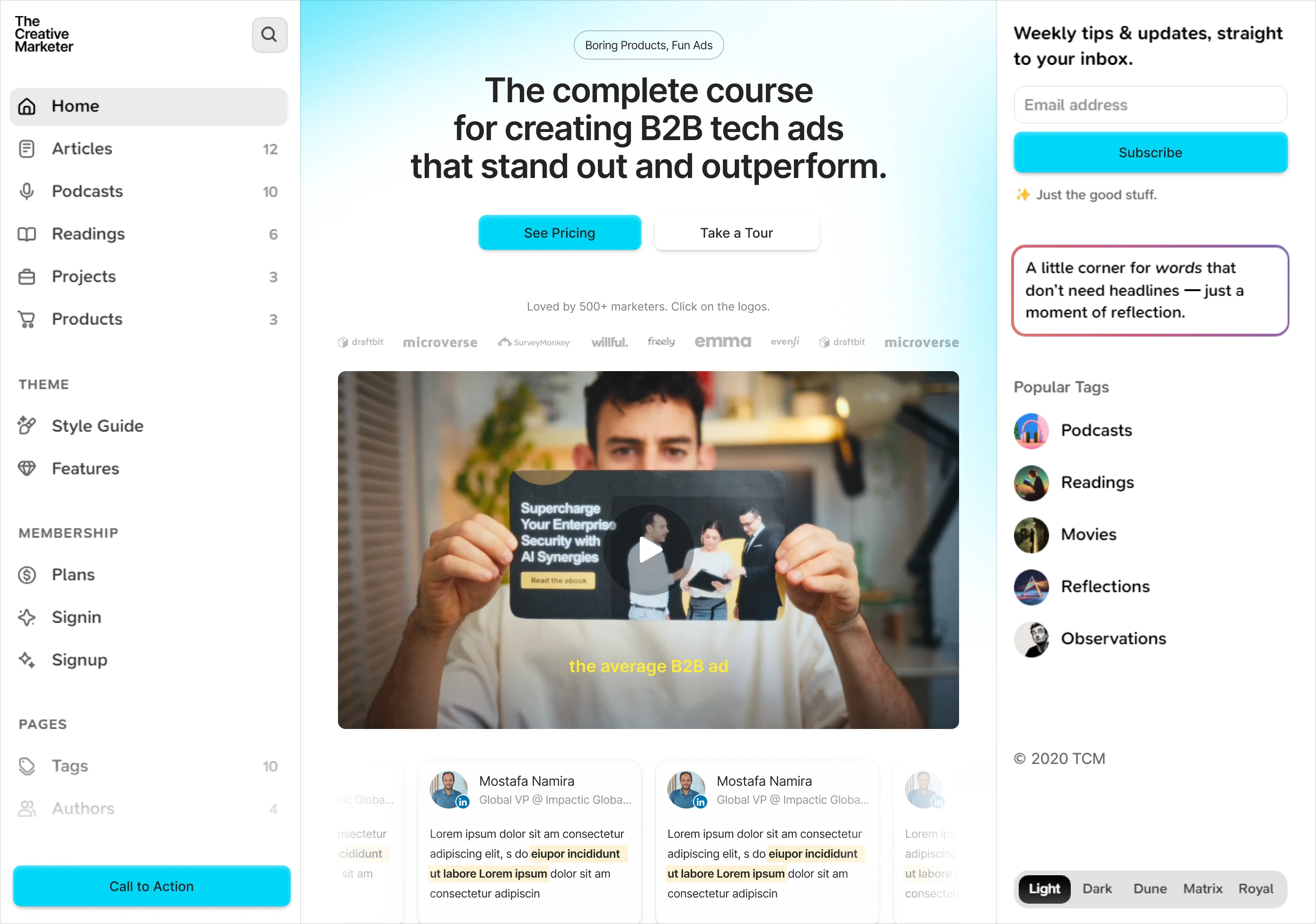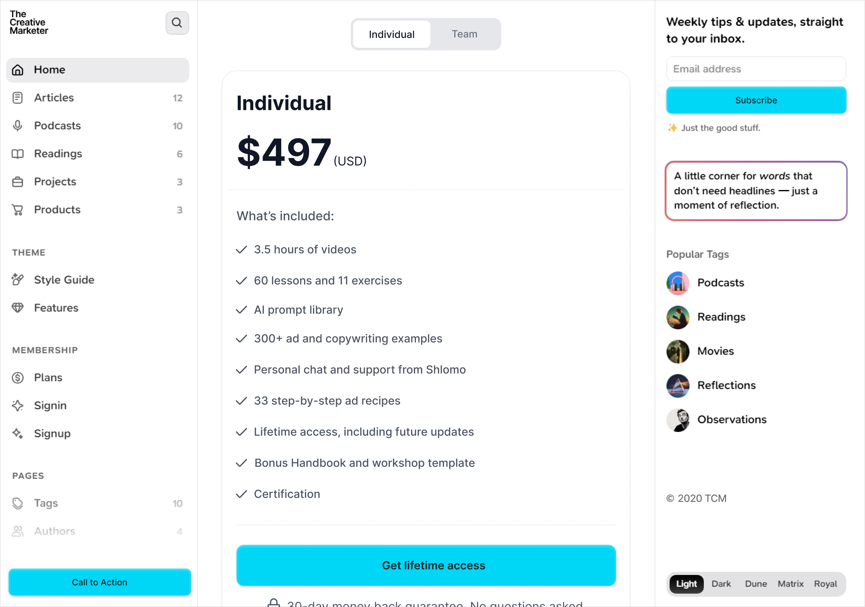 Redesigned the central content of The Creative Marketer’s course page to fit a new sidebar-based template.