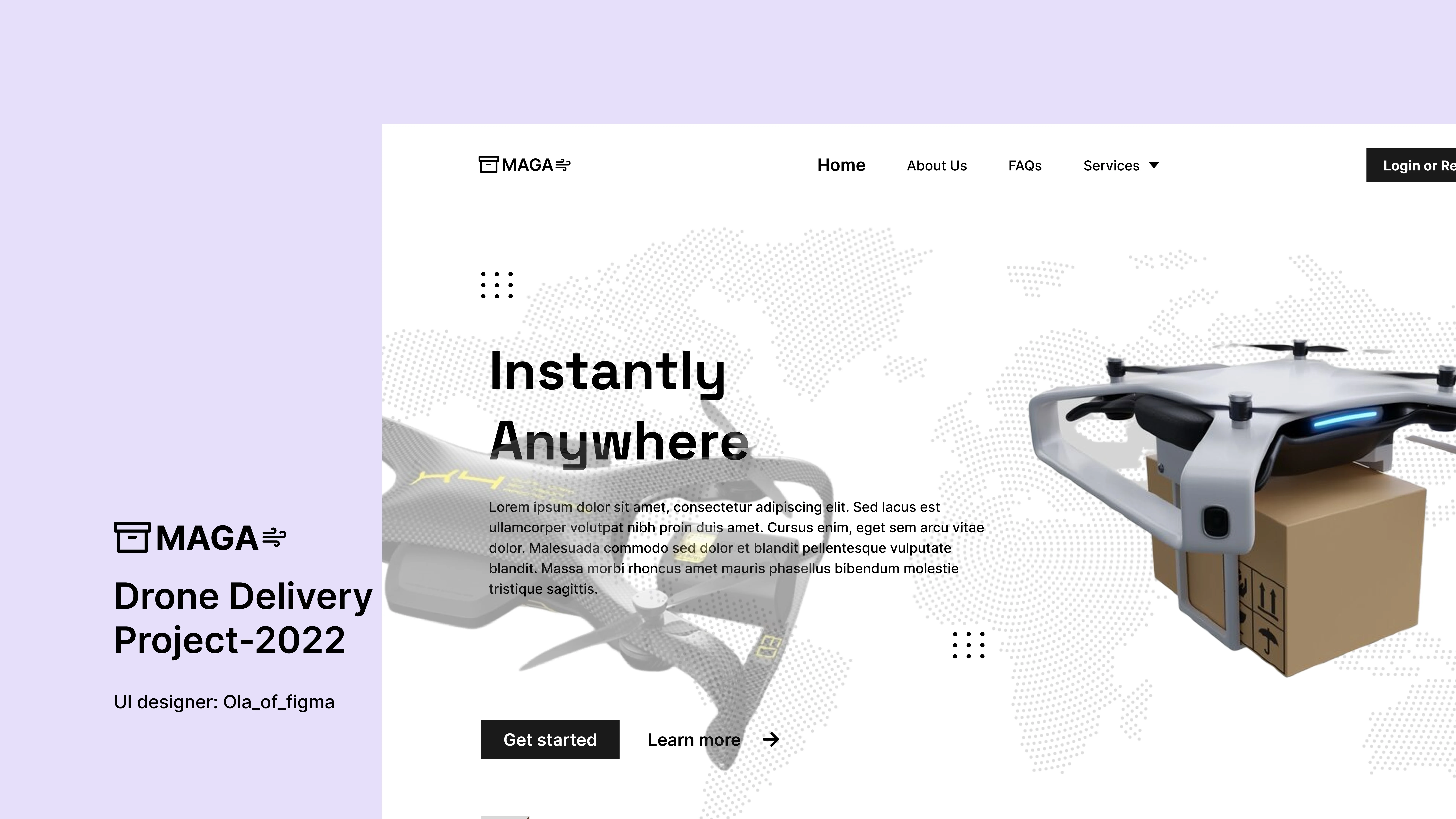 Maga Drone is a drone delivery startup concept I designed during a UI/UX design sprint. The idea was to look into how drones could make last-mile delivery faster and more efficient, especially in areas with traffic or poor road networks.