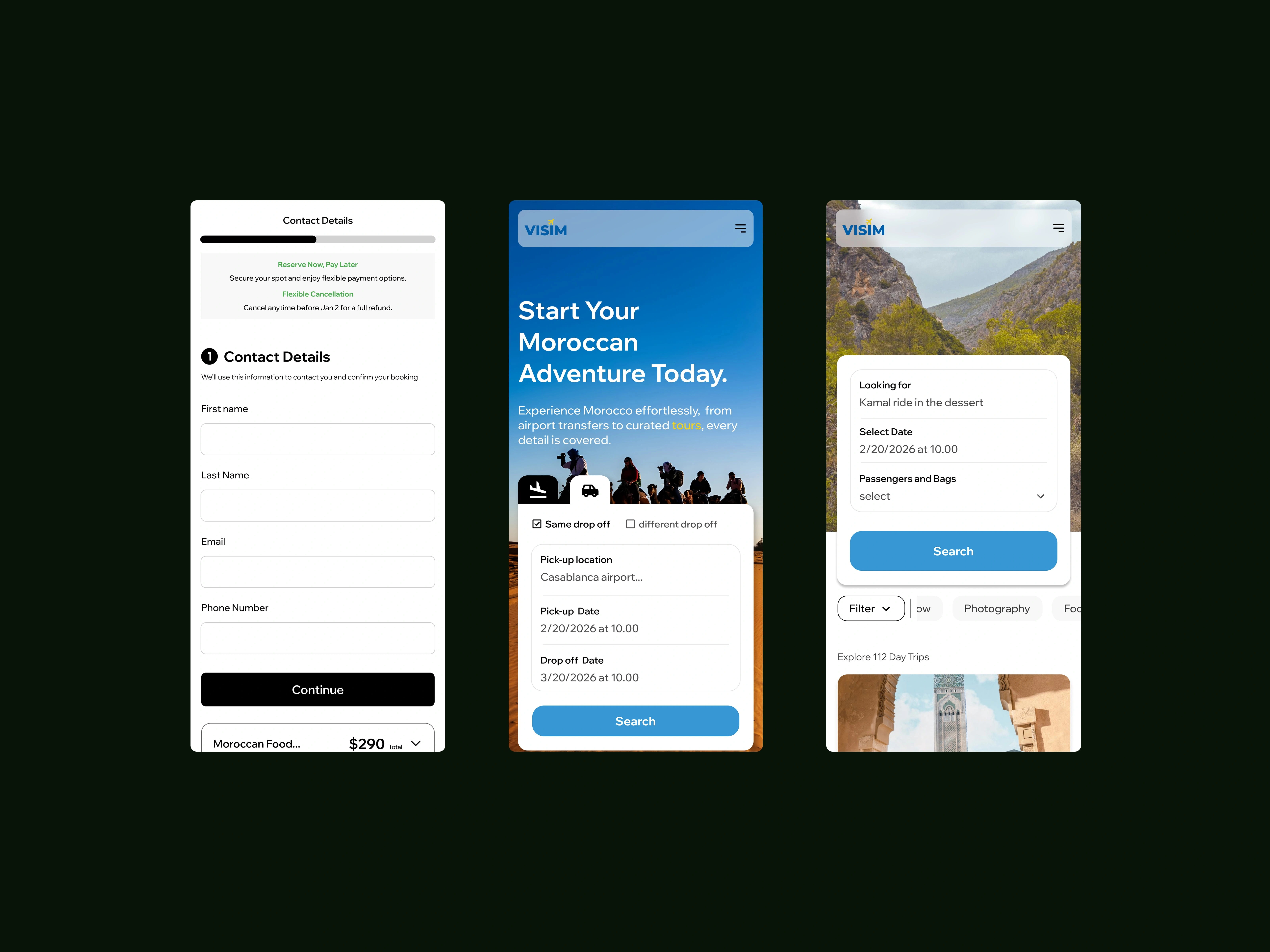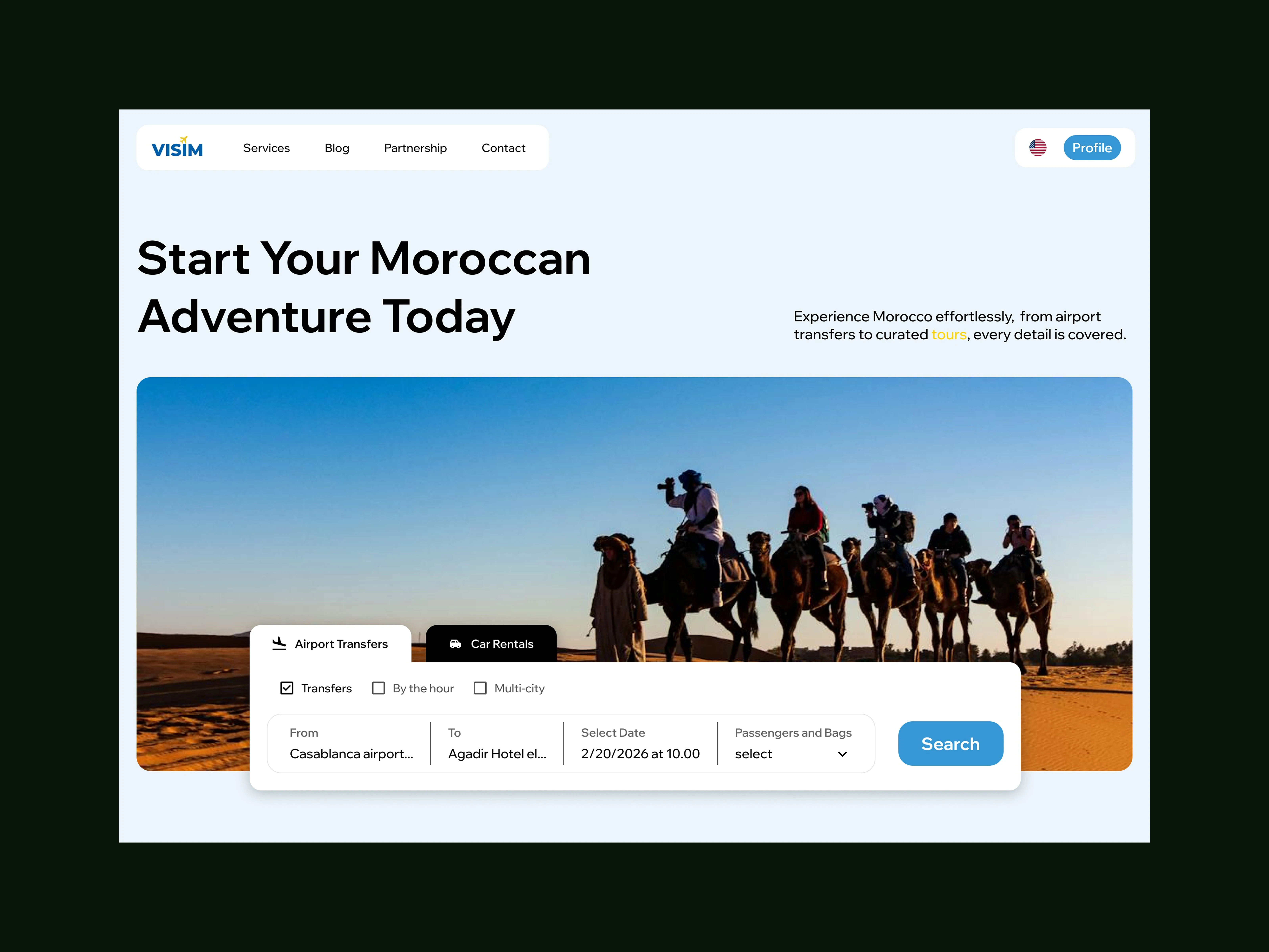 The journey brings together transportation and trip services within a single, focused flow, shaped around a local travel context rather than a global marketplace. Core offerings guide the experience, while secondary options remain accessible without competing for attention. The structure prioritizes clarity and progression over presenting everything at once.