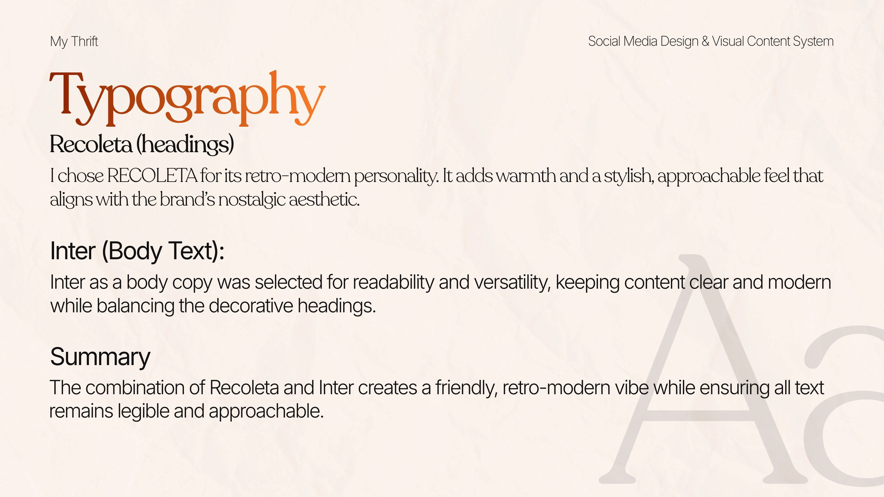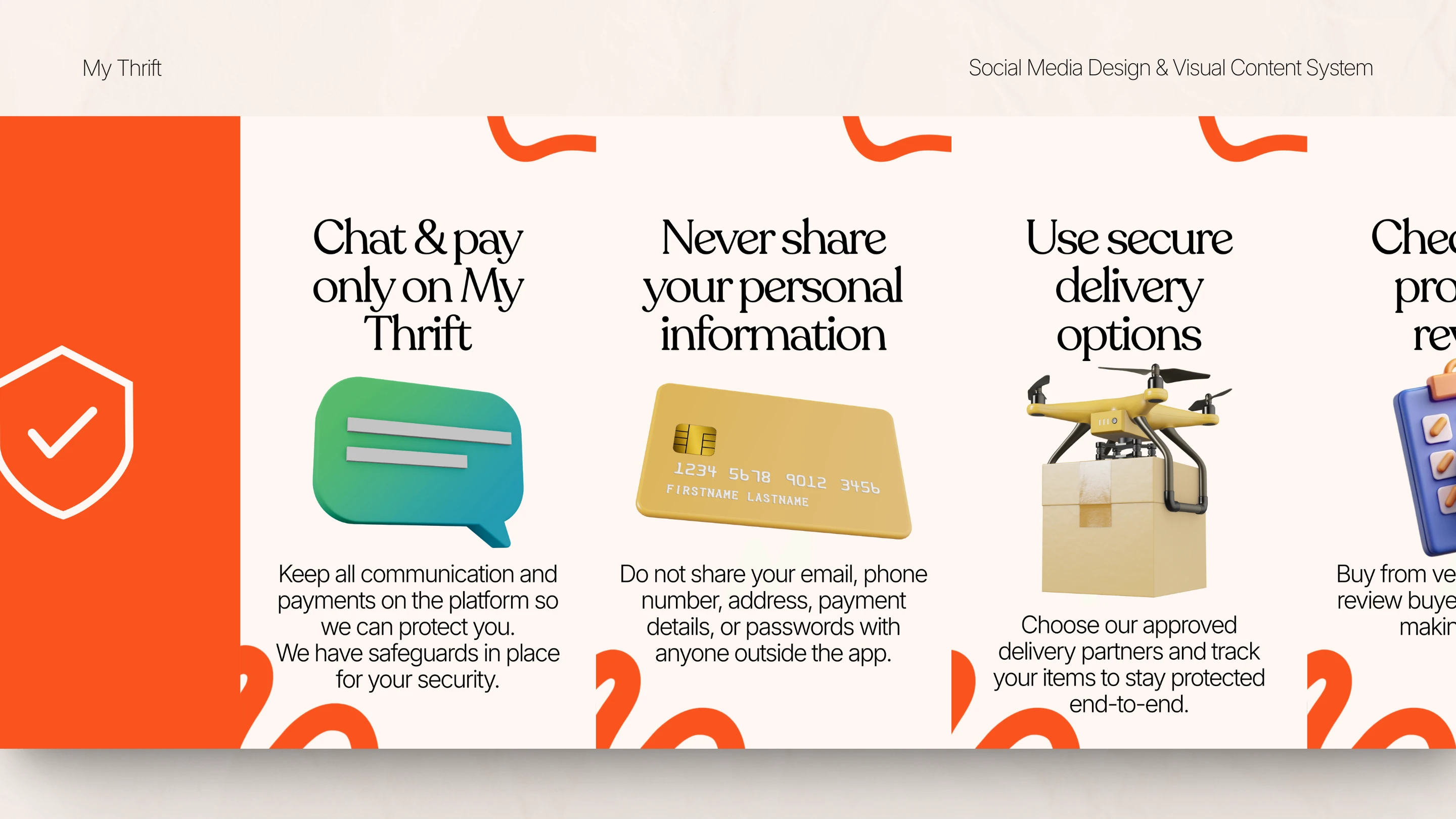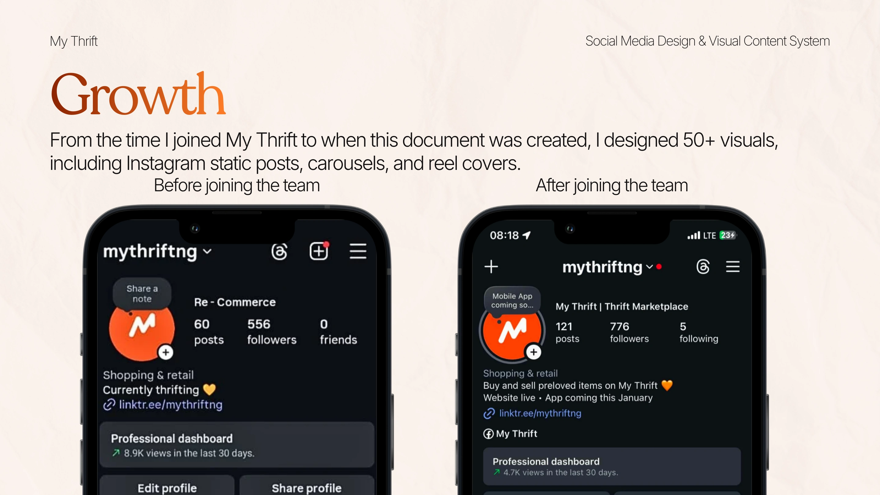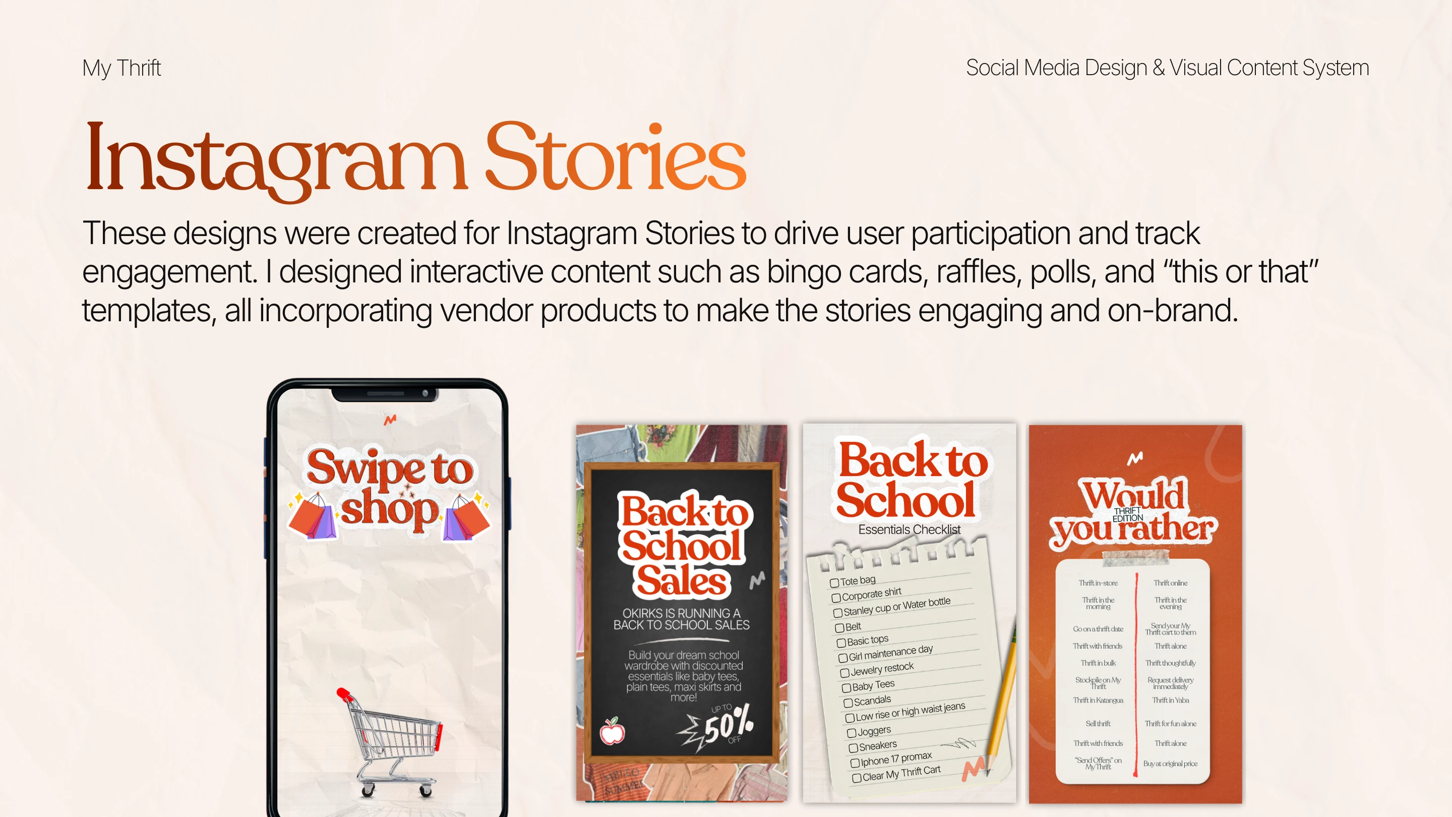 My Thrift had established its brand positioning but needed a consistent visual presence across social platforms. My challenge was to translate the brand's retro-modern aesthetic into scroll-stopping social content that would resonate with Gen Z Nigerian women across Instagram, TikTok, Twitter, and Facebook.