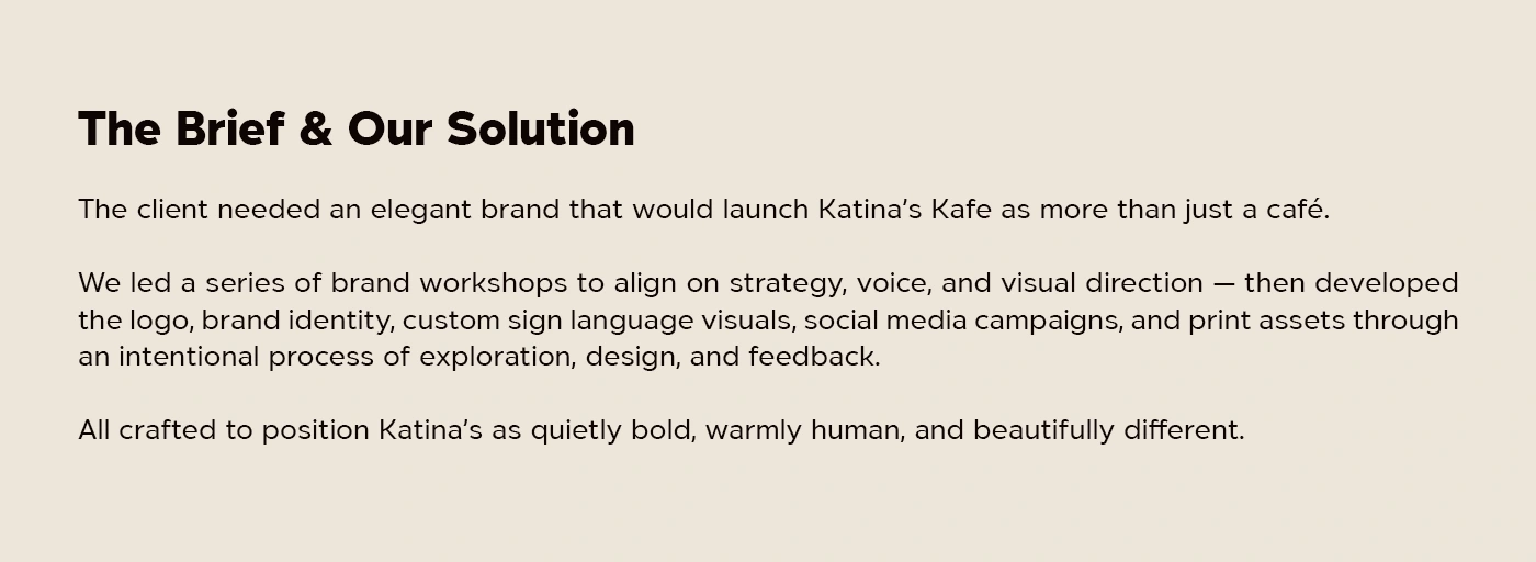 Built Katina’s brand identity with a calm, elegant system: logo, palette, and guidelines that reflect inclusivity and consistency across all platforms.