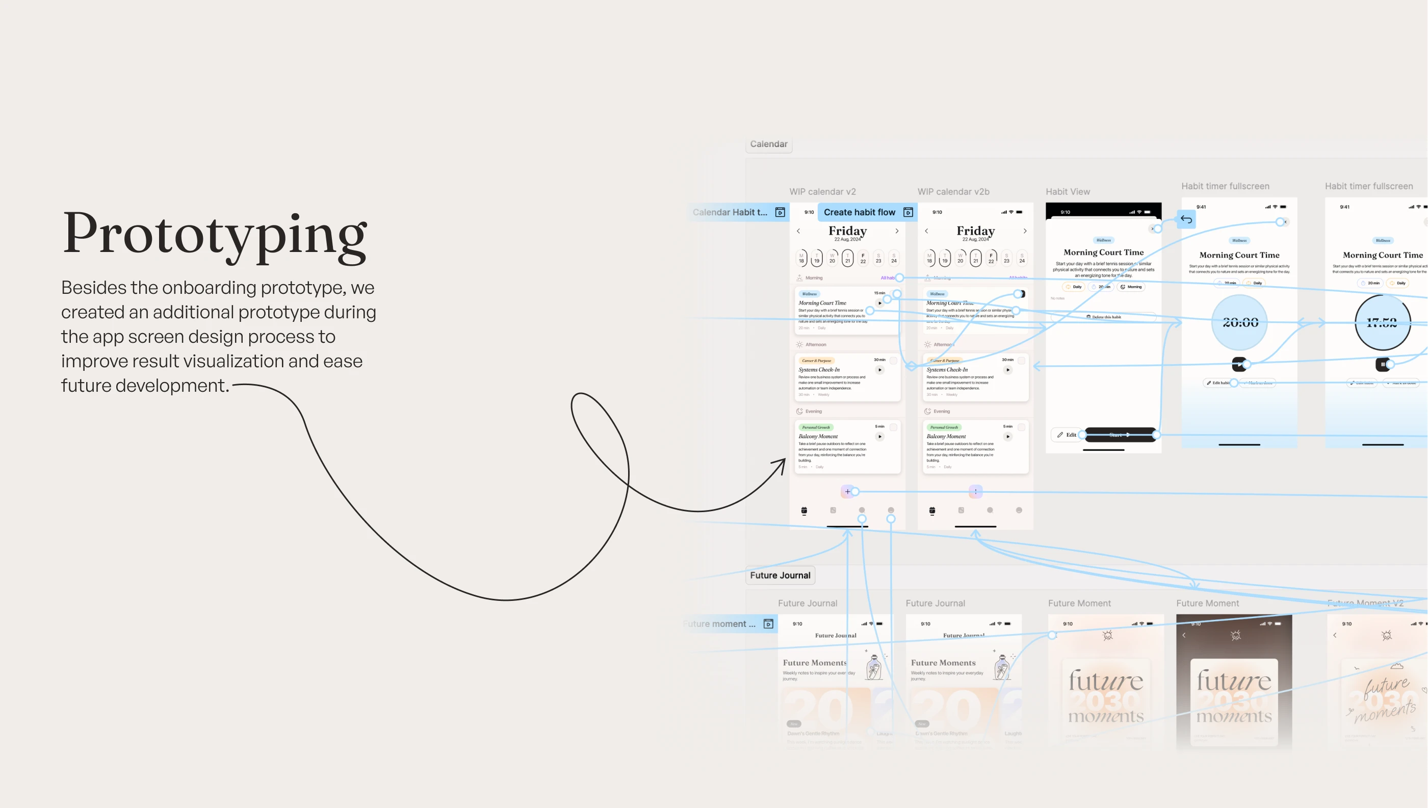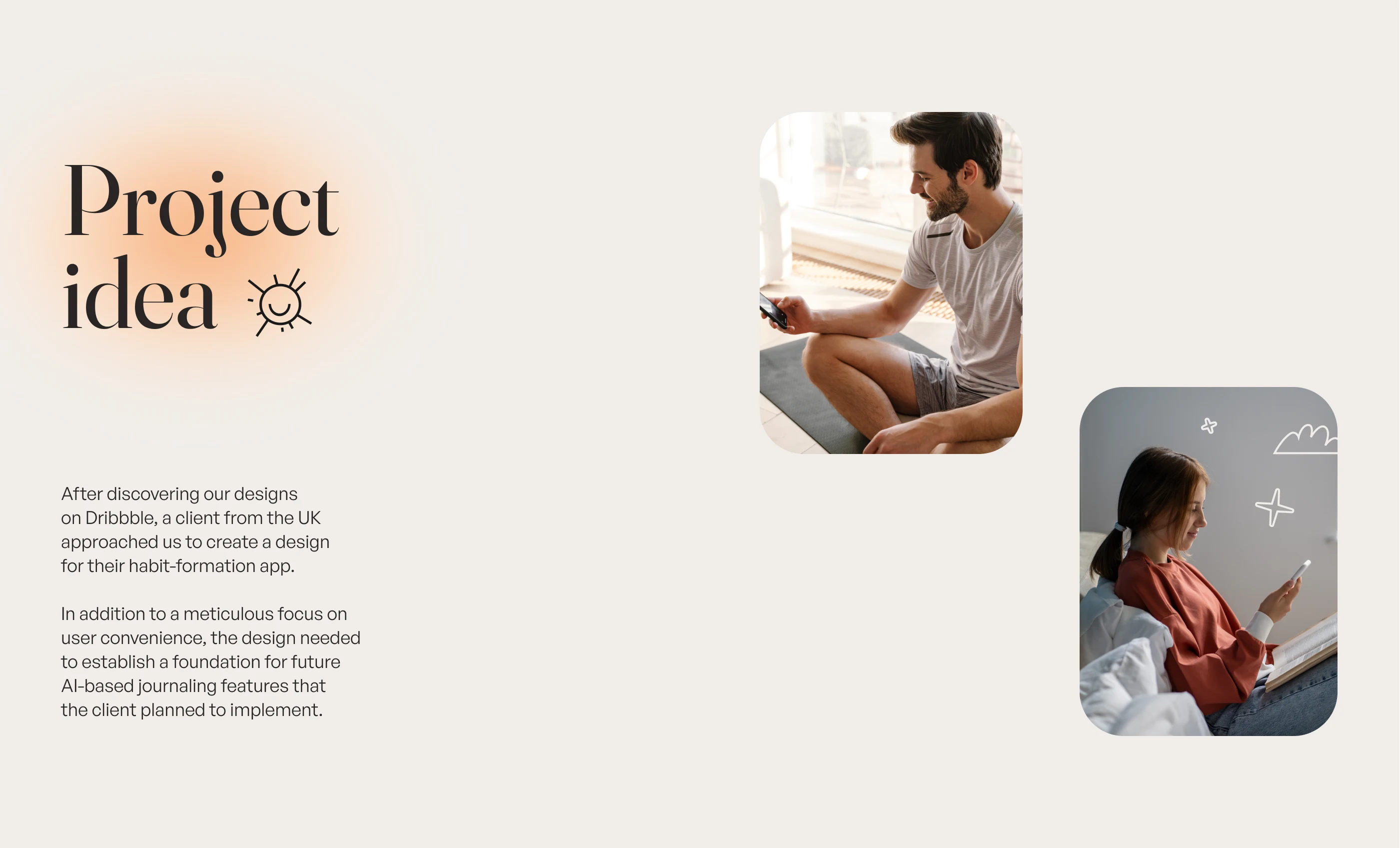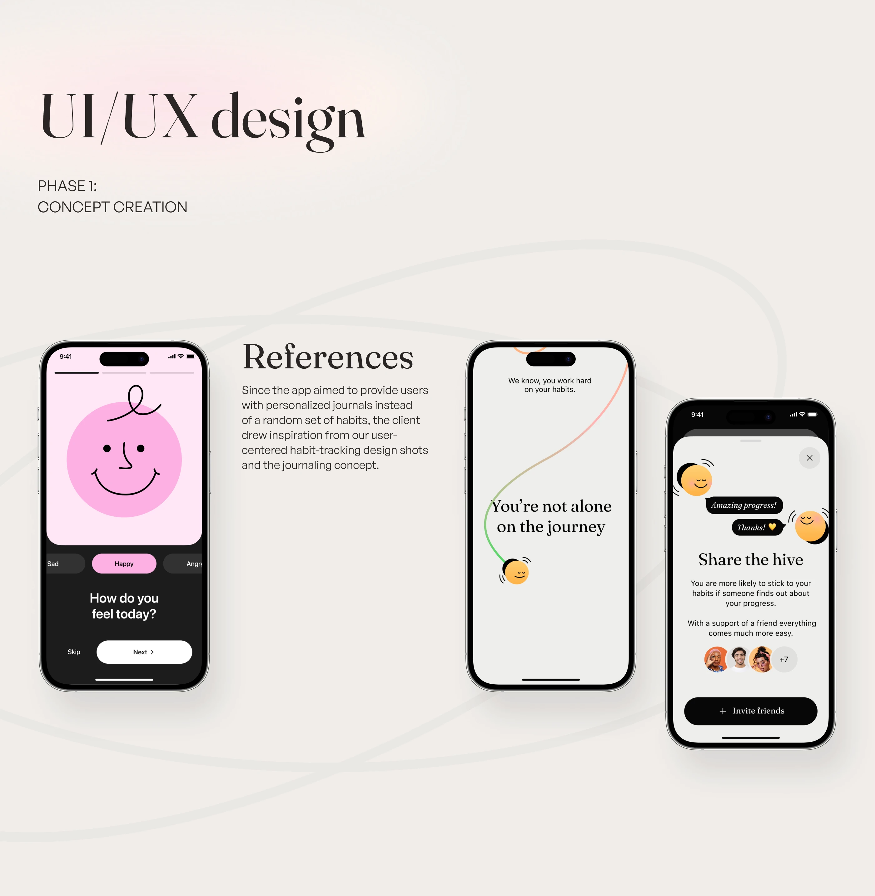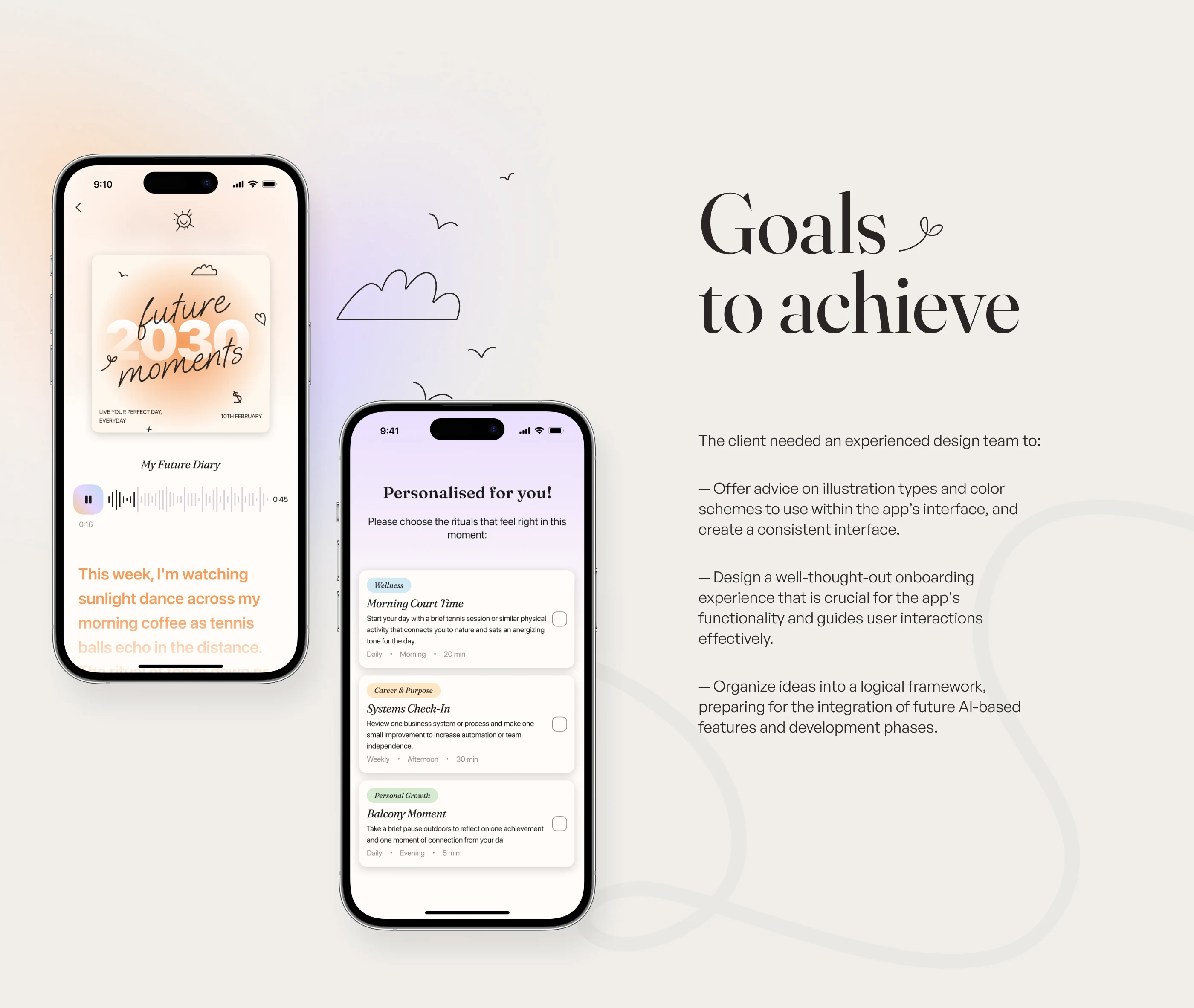 Explore our recent UI/UX design project for a neuroscience and AI-based habit-formation app focused on mental health. Through close collaboration with our client from the UK, we crafted an engaging interface in Figma featuring intuitive onboarding, thoughtful illustrations, and seamless user interactions. Central to the design is the "Future Journal," helping users build meaningful habits and nurture their mental wellness step by step.