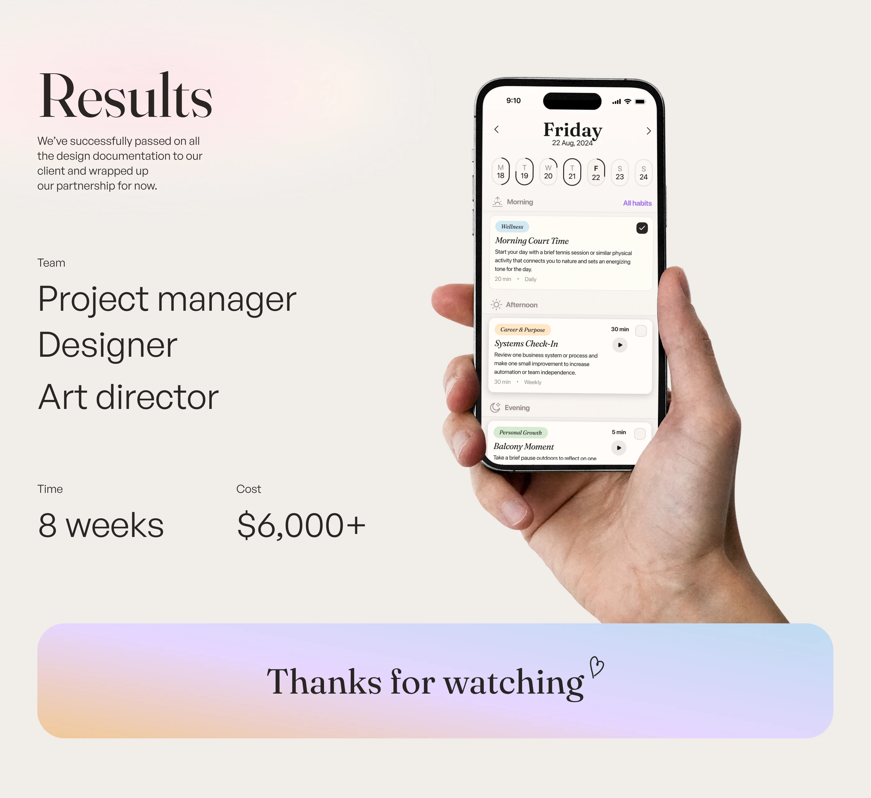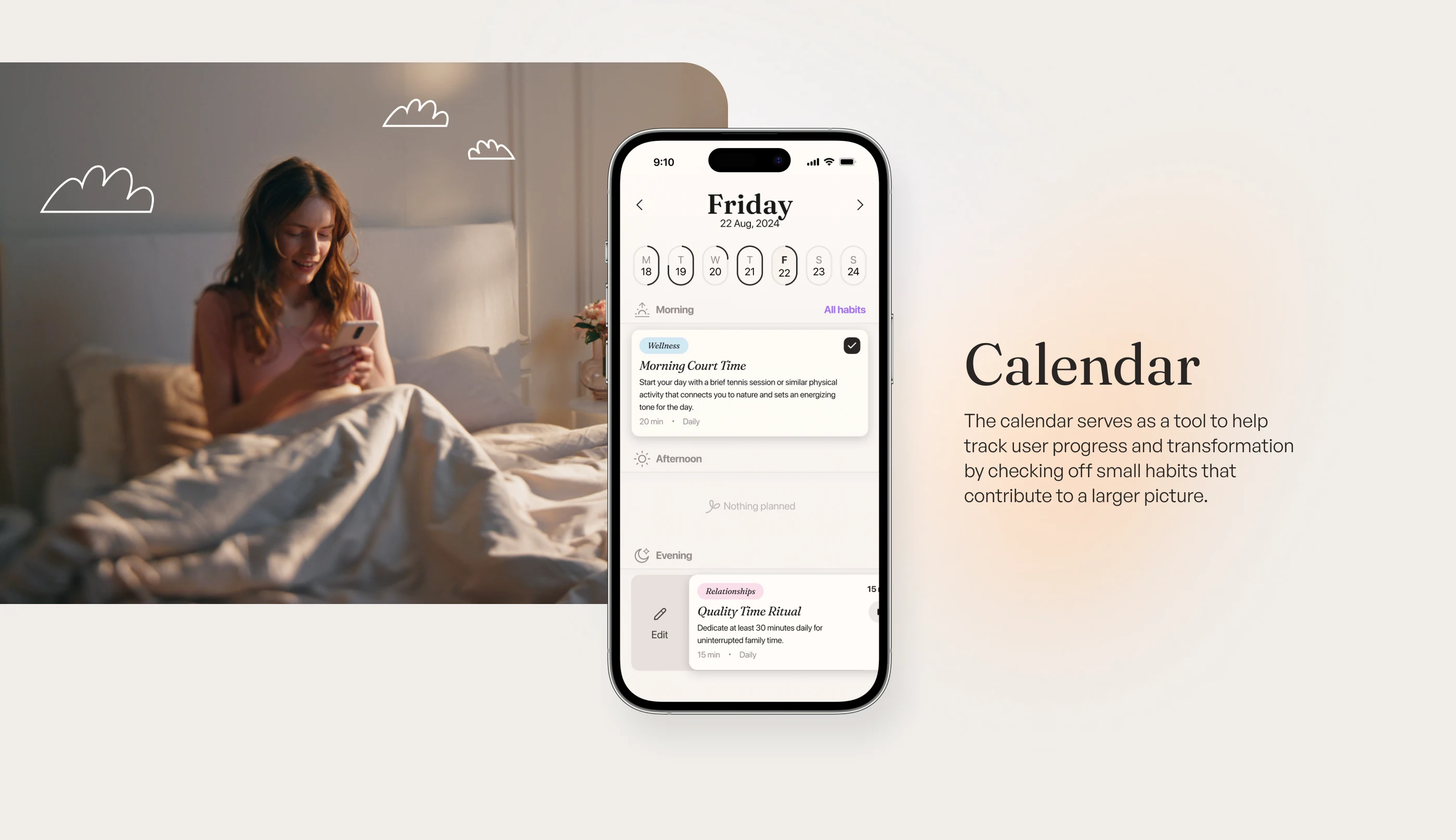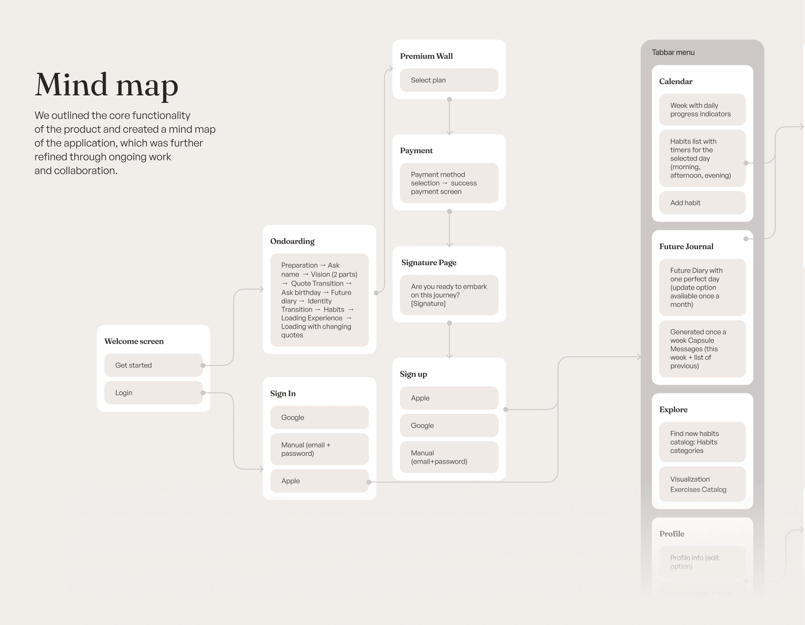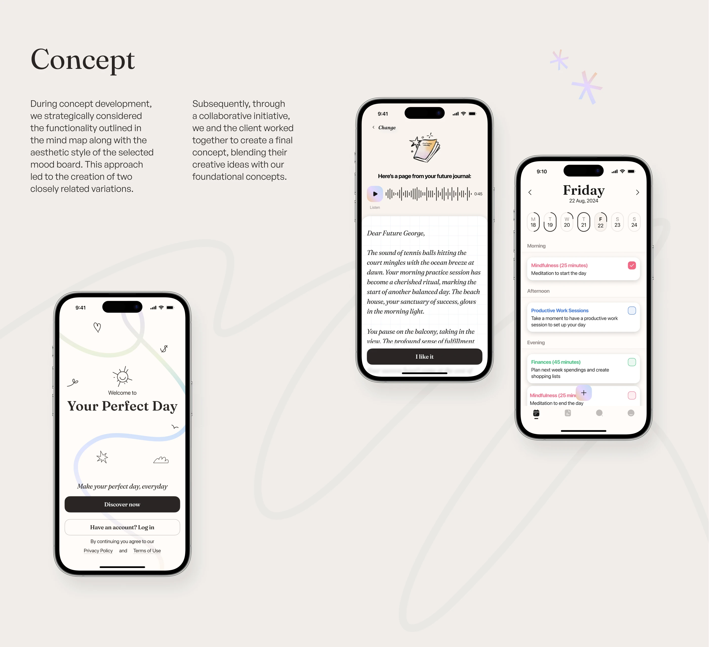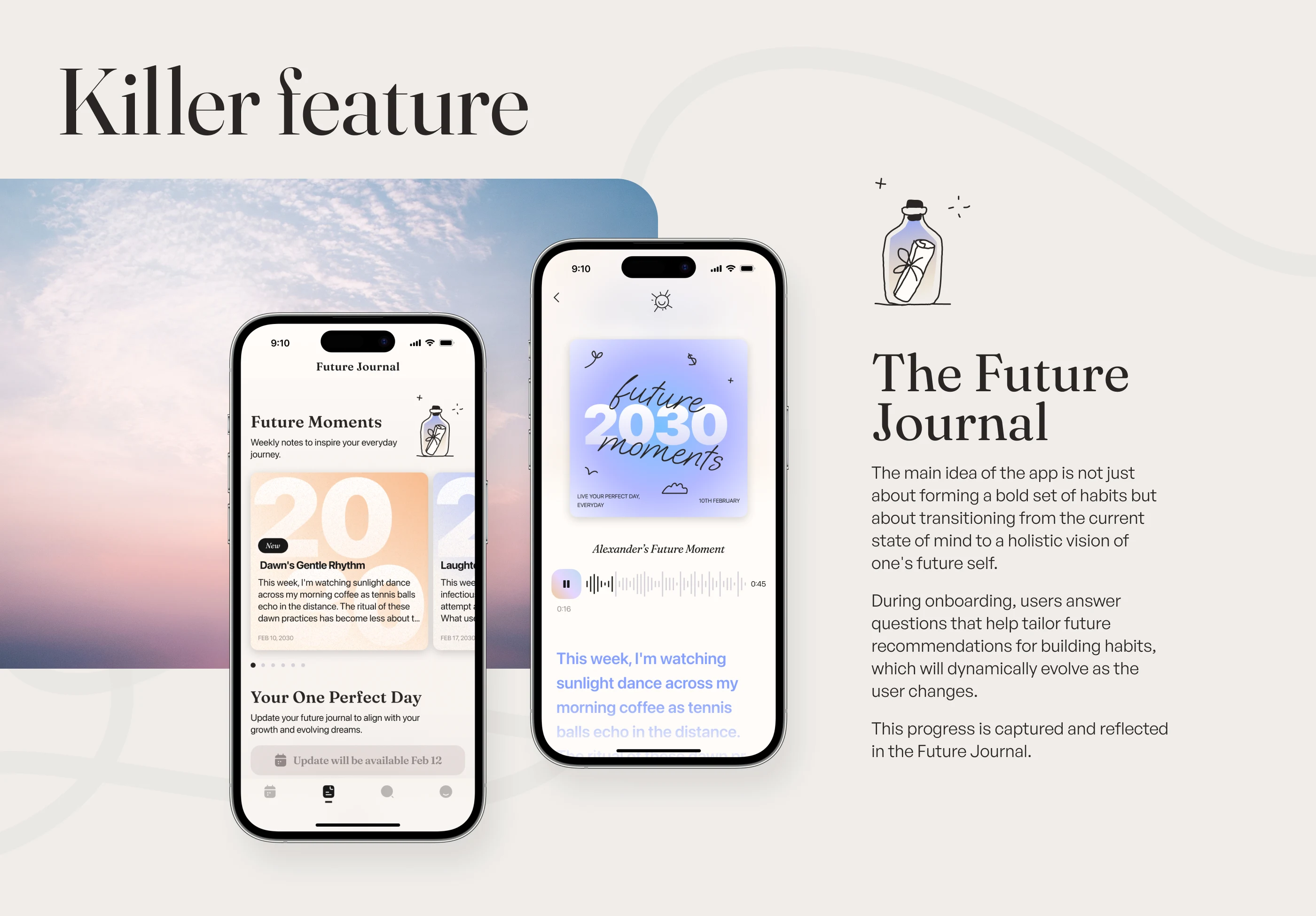 Explore our recent UI/UX design project for a neuroscience and AI-based habit-formation app focused on mental health. Through close collaboration with our client from the UK, we crafted an engaging interface in Figma featuring intuitive onboarding, thoughtful illustrations, and seamless user interactions. Central to the design is the "Future Journal," helping users build meaningful habits and nurture their mental wellness step by step.