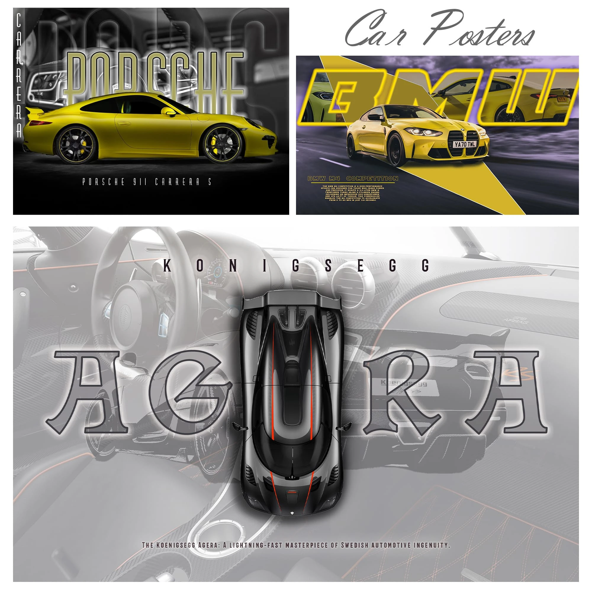 This series of automotive posters is a deep dive into my personal design passion—fusing speed, style, and storytelling into visuals that celebrate the art of automobiles. What began as a creative escape quickly became a full-blown obsession. Each poster here is a reflection of that love: from the electrifying intensity of Formula 1 legends like Lewis Hamilton and Max Verstappen, to the sleek elegance of luxury beasts like Porsche, Ferrari, Audi, BMW, and the monstrous Koenigsegg Agera.