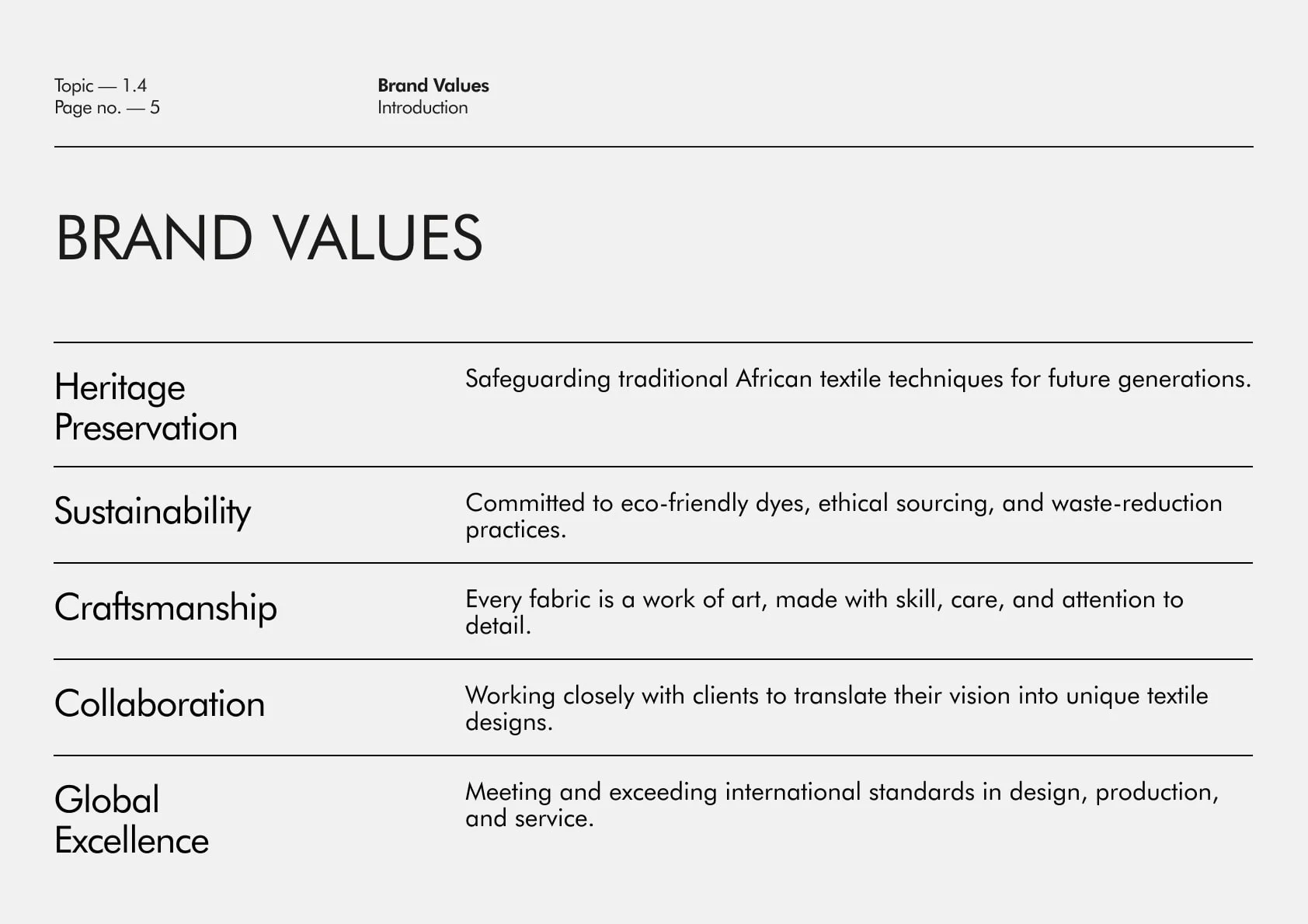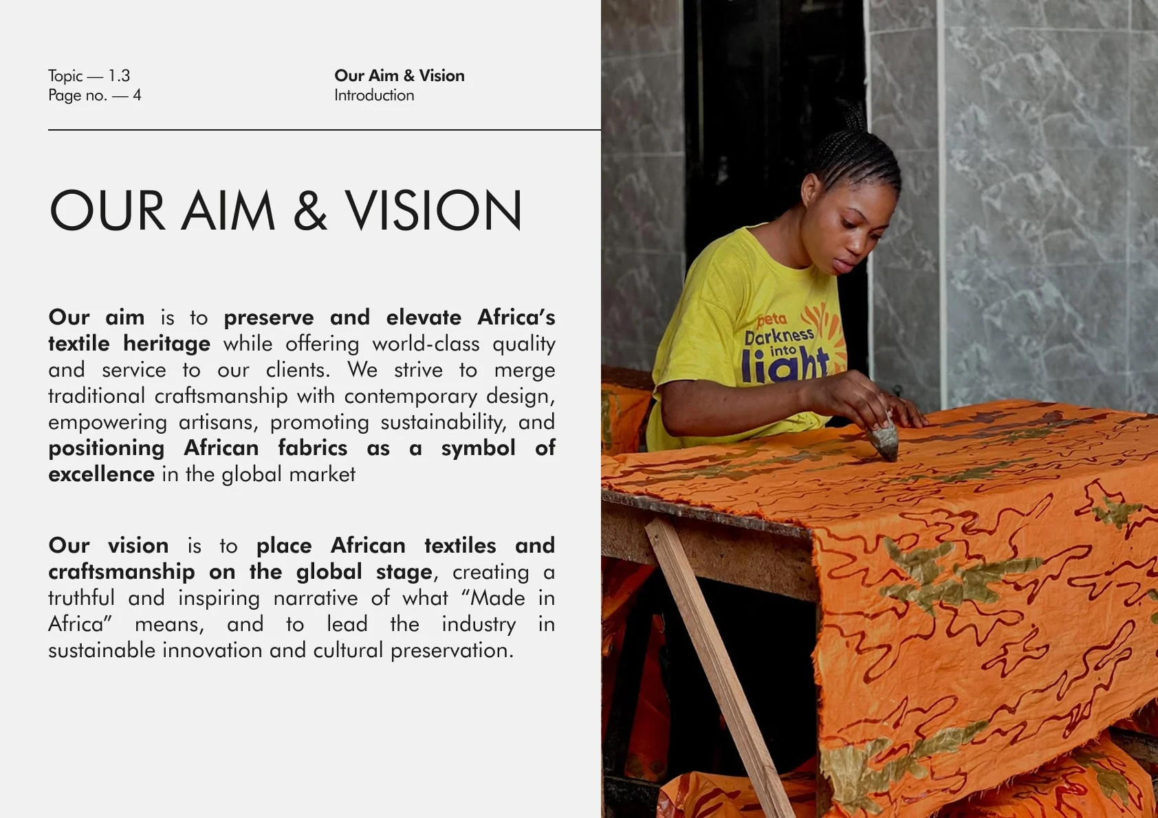 Brand identity system for sustainable textile company, elevating traditional African hand-woven fabrics for international fashion and interior design brands.