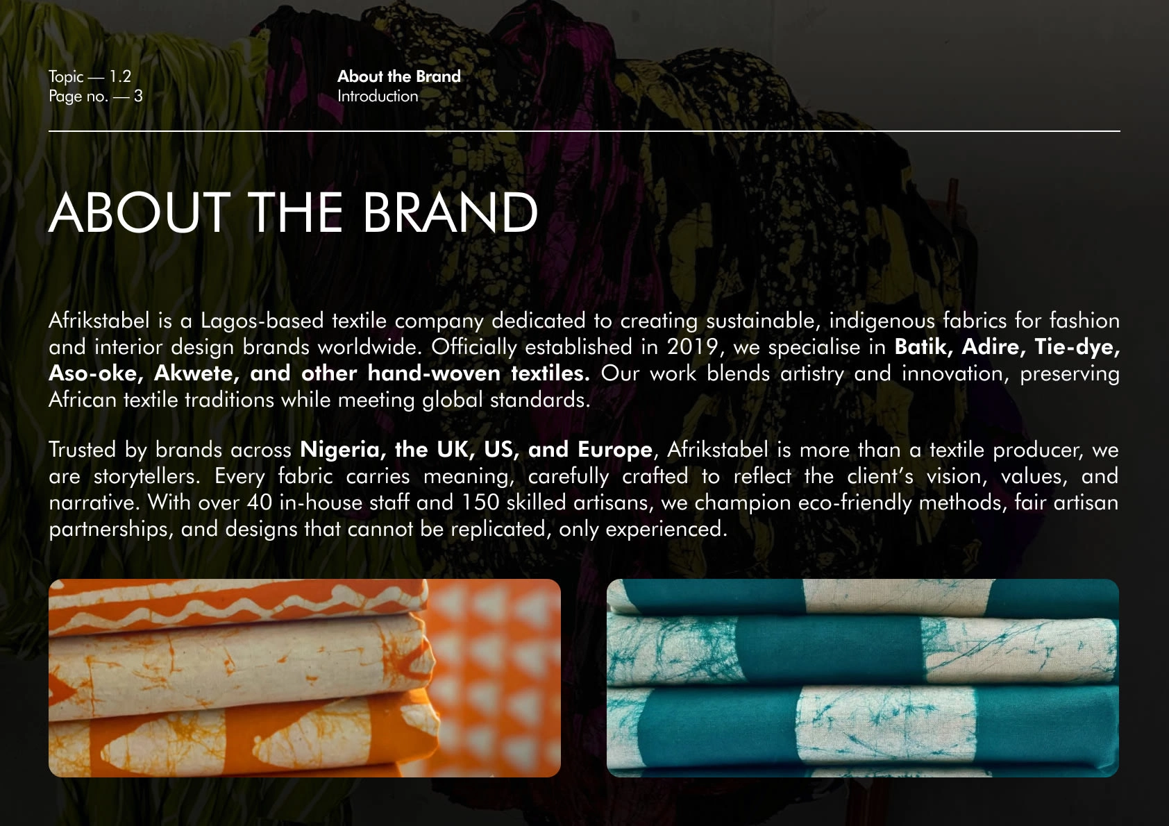 Afrikstabel is a textile brand based in Lagos, Nigeria.