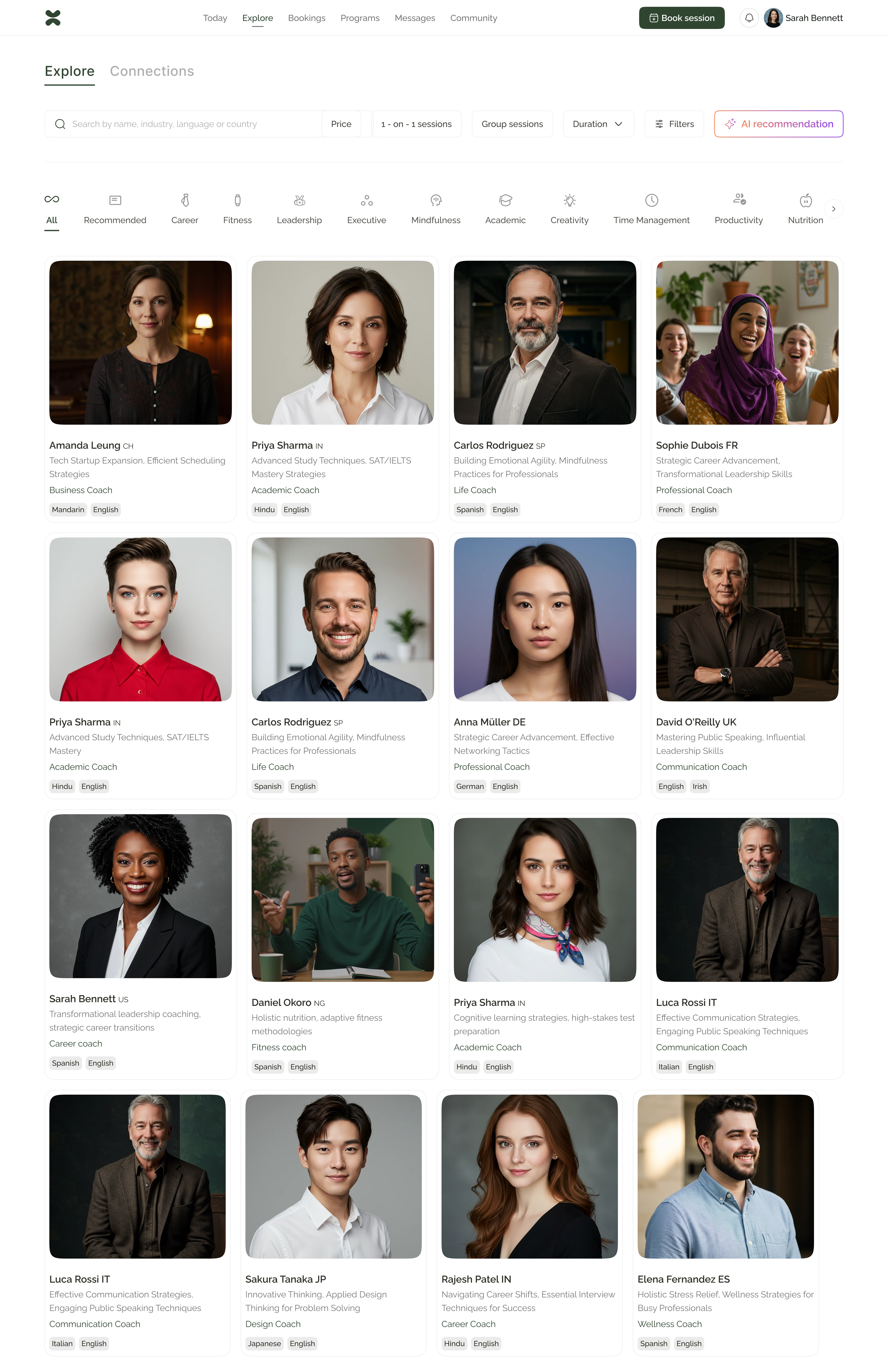 The interface focuses on clarity and ease of use. Dashboards and profiles allow users to navigate opportunities, schedule sessions, and track growth effortlessly. Prototypes in Figma enabled rapid iteration and validation, while collaboration with developers ensured the design was implemented faithfully.