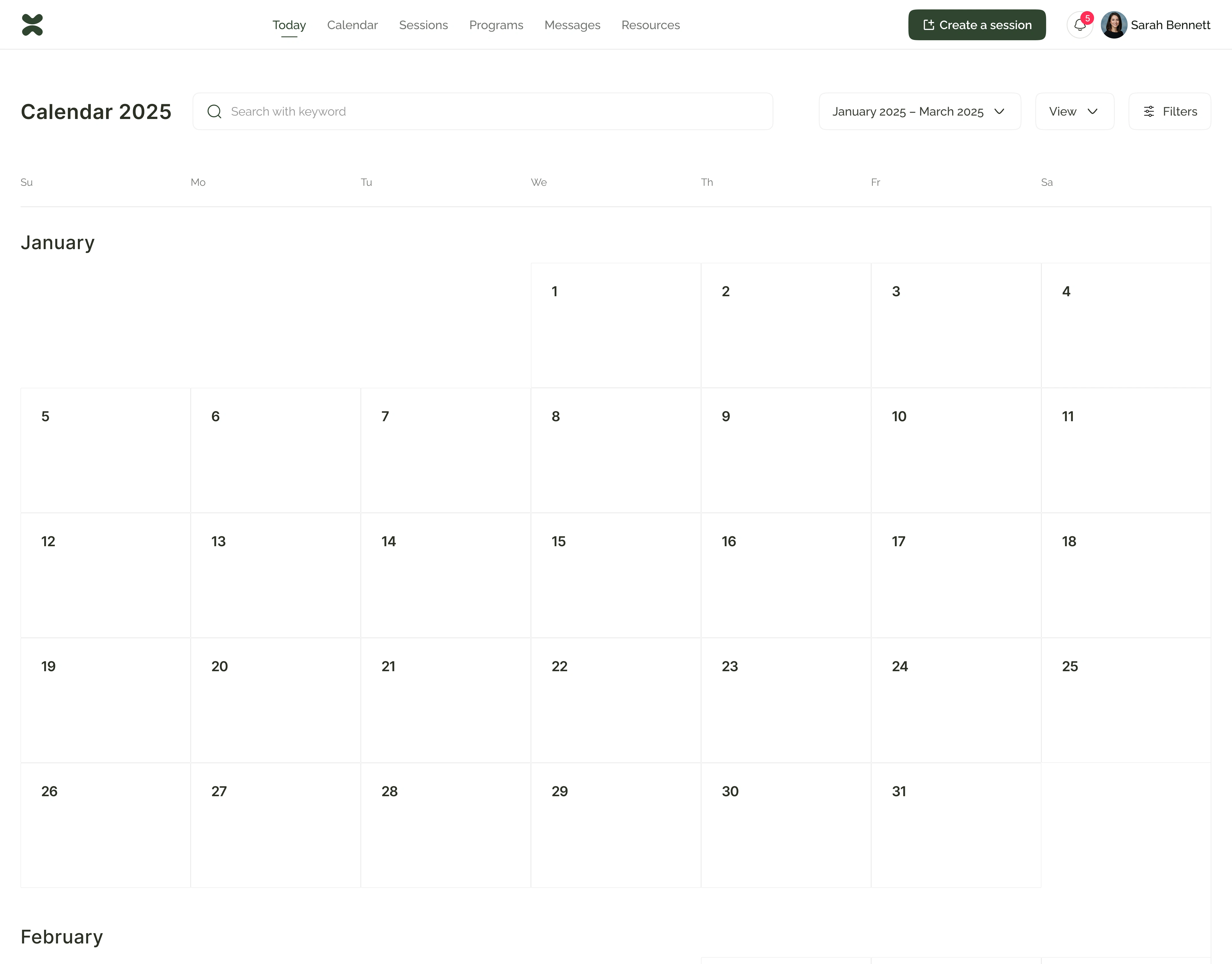 Month calendar view