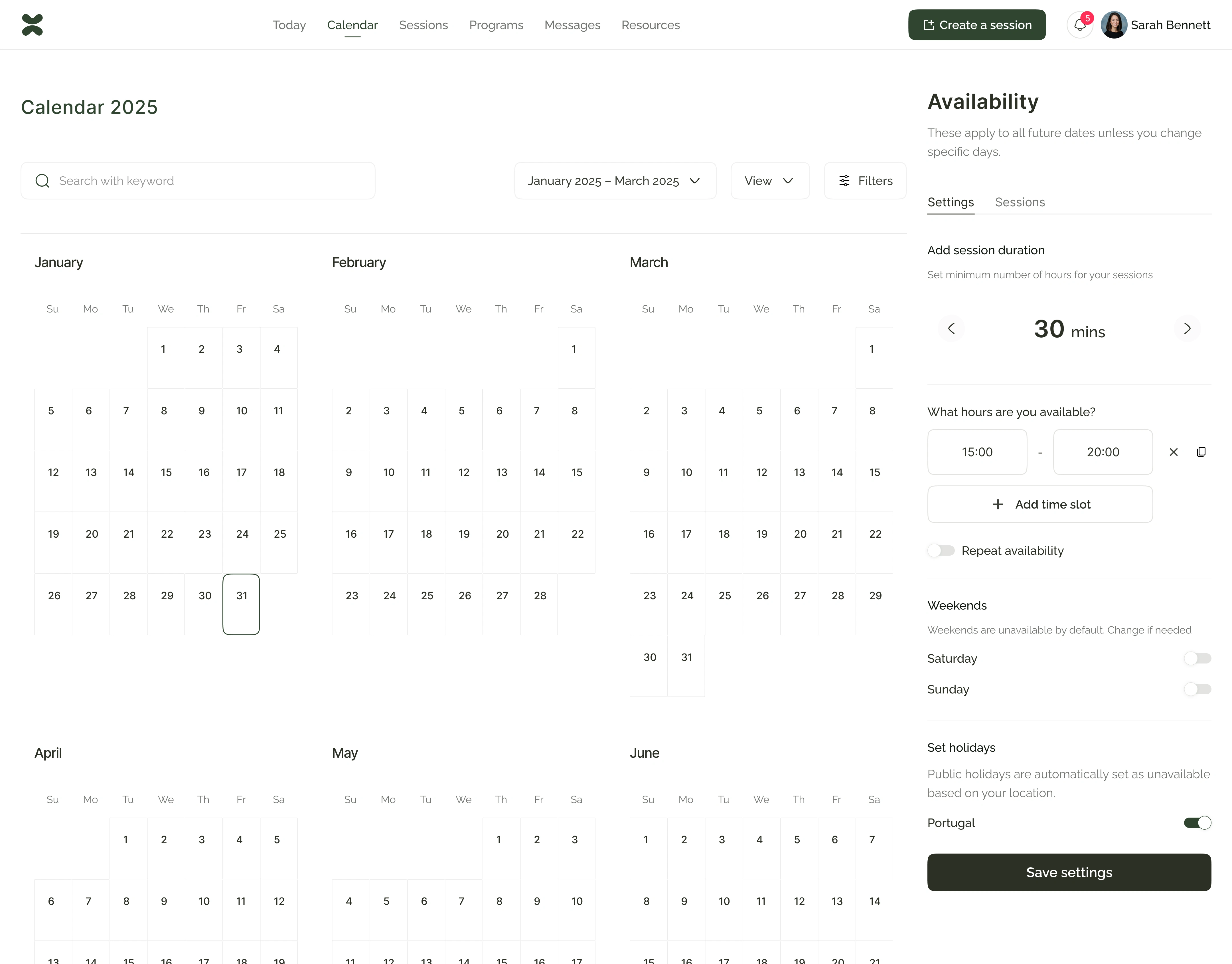 Year calendar view